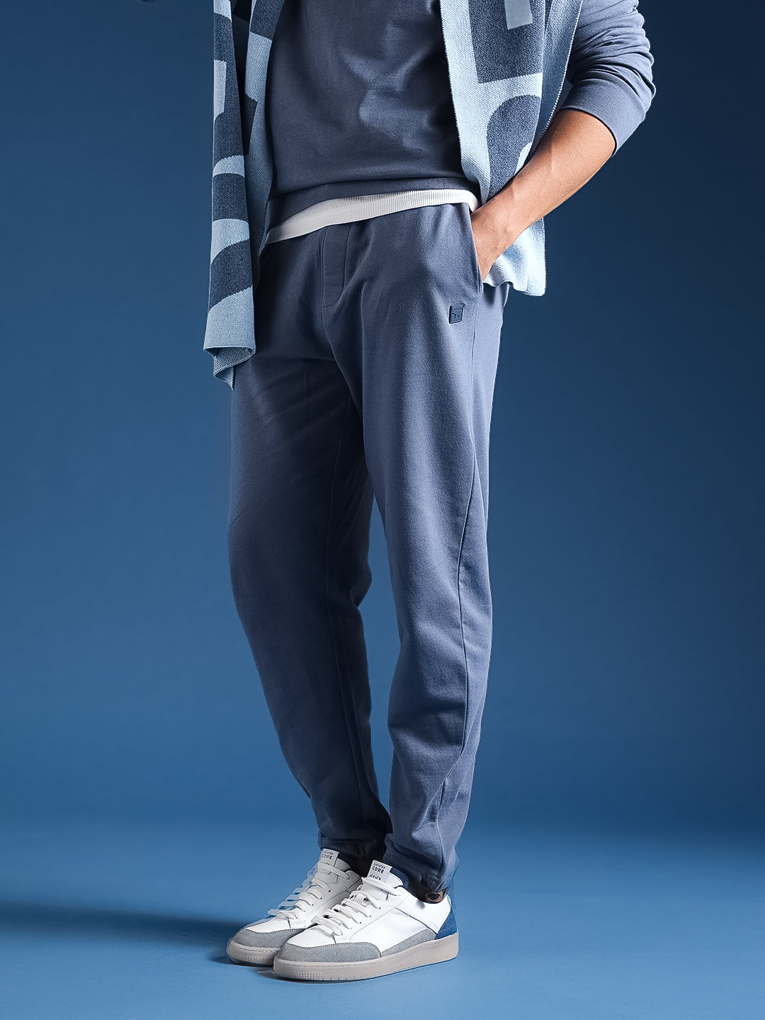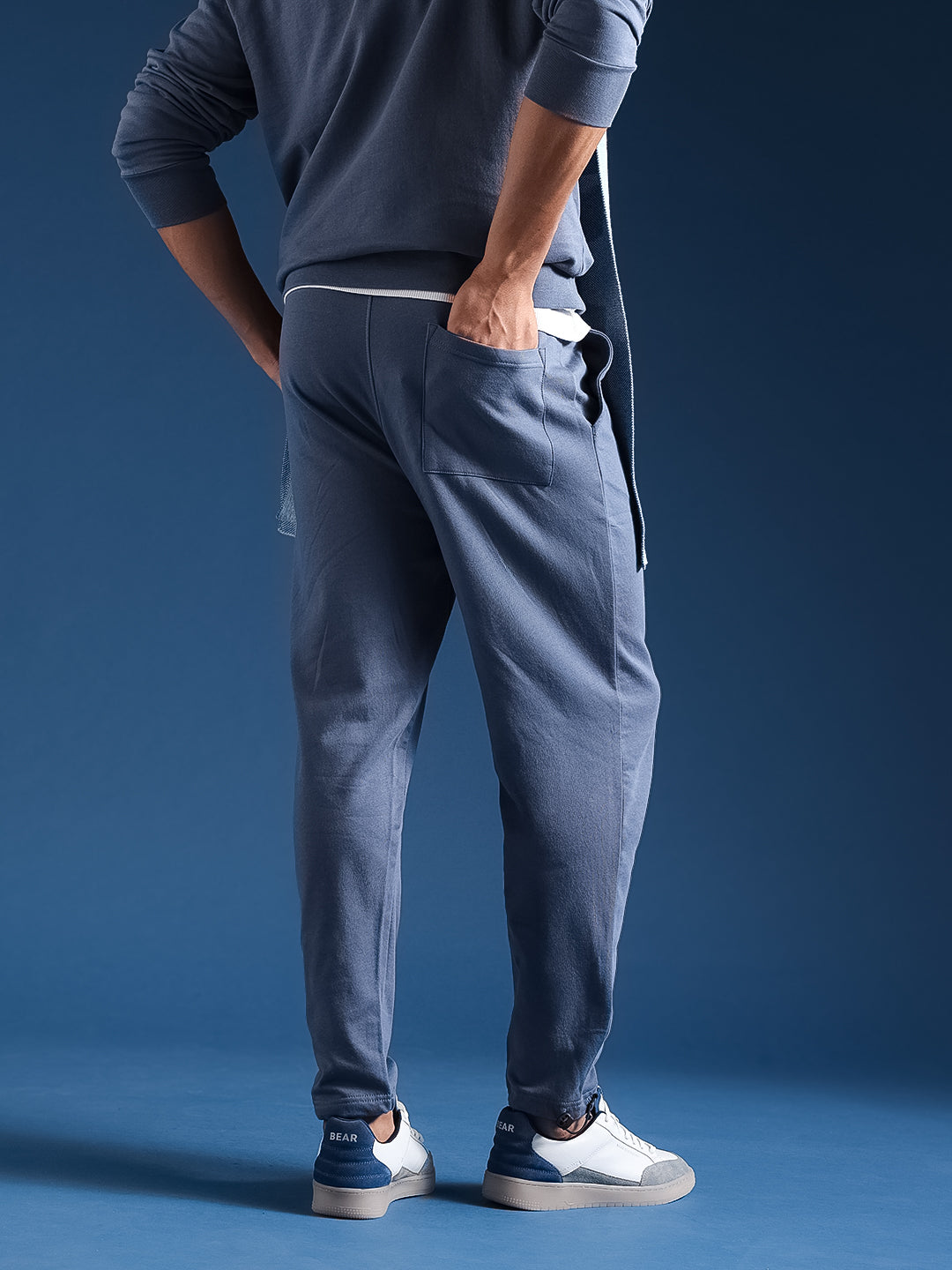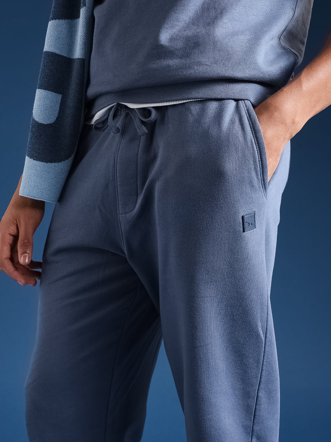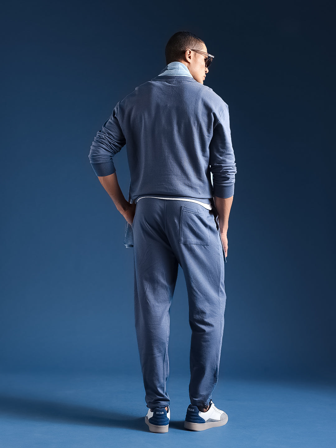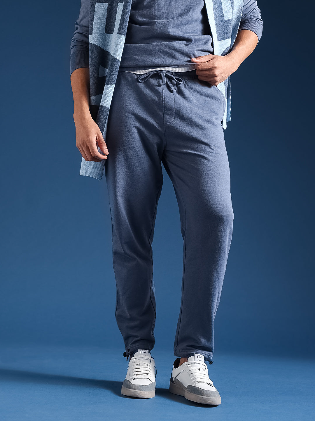 Blue Relaxed Fit Solid Track Pants with Toggle Adjustable Hem