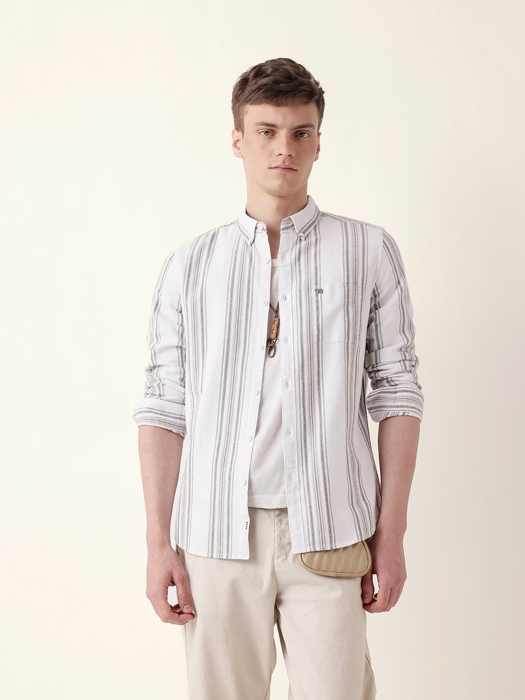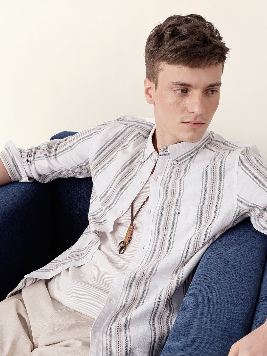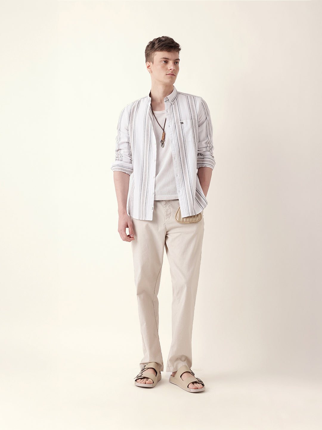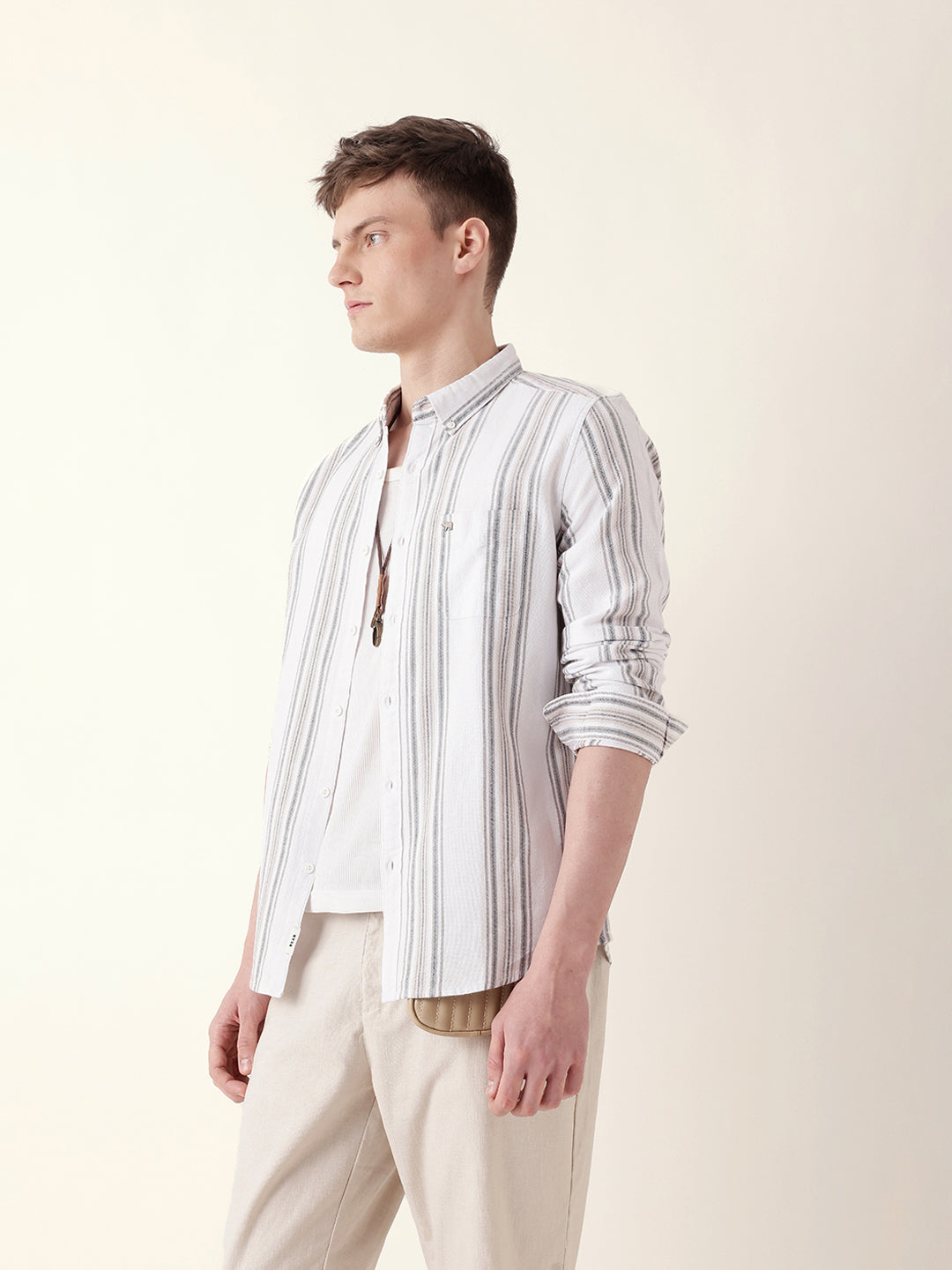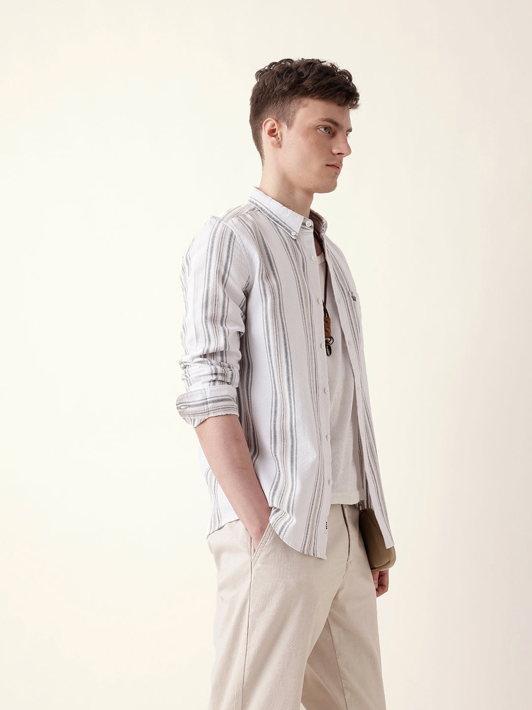 Shop White Vertical Woven Stripe Slim Fit Casual Shirt Online.