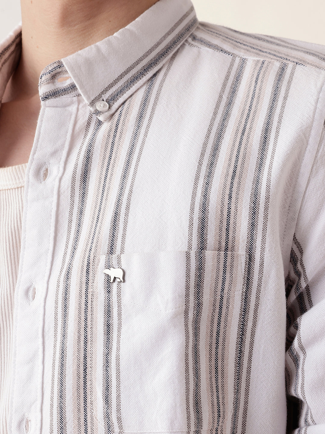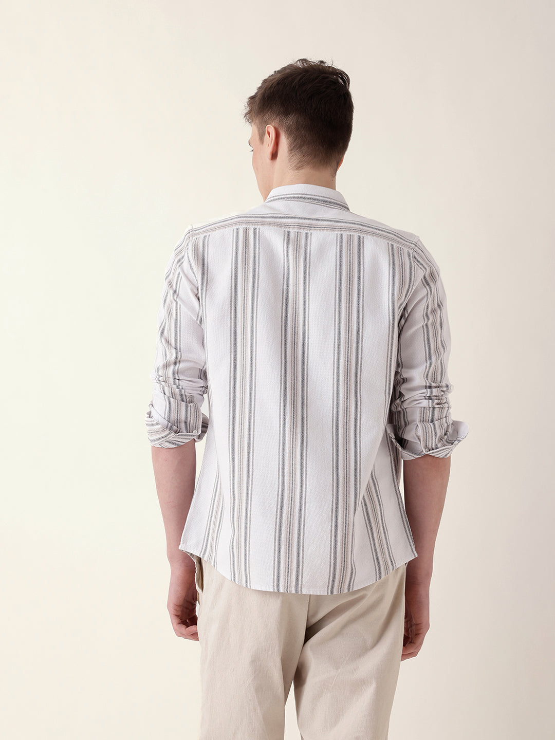 White Vertical Woven Stripe Slim Fit Casual Shirt