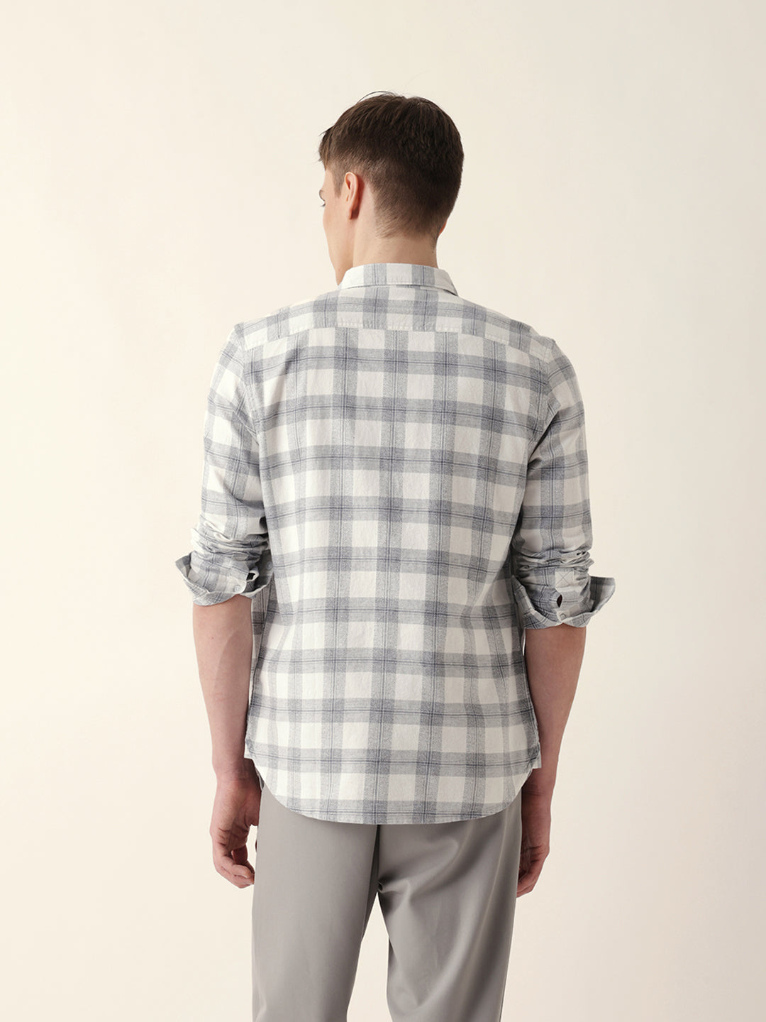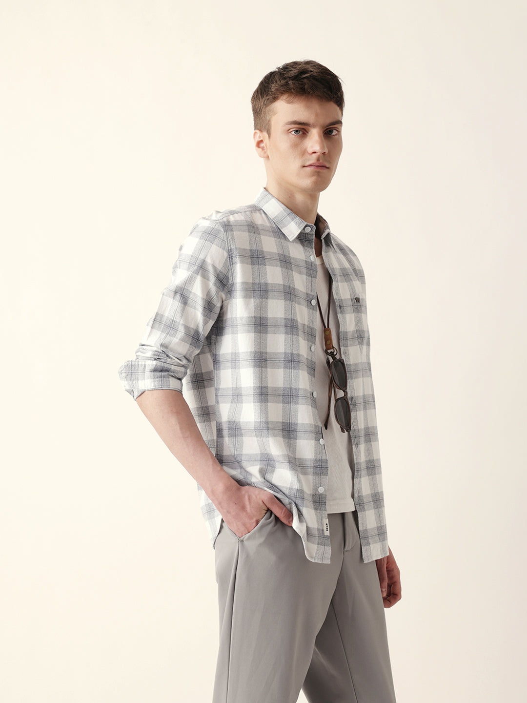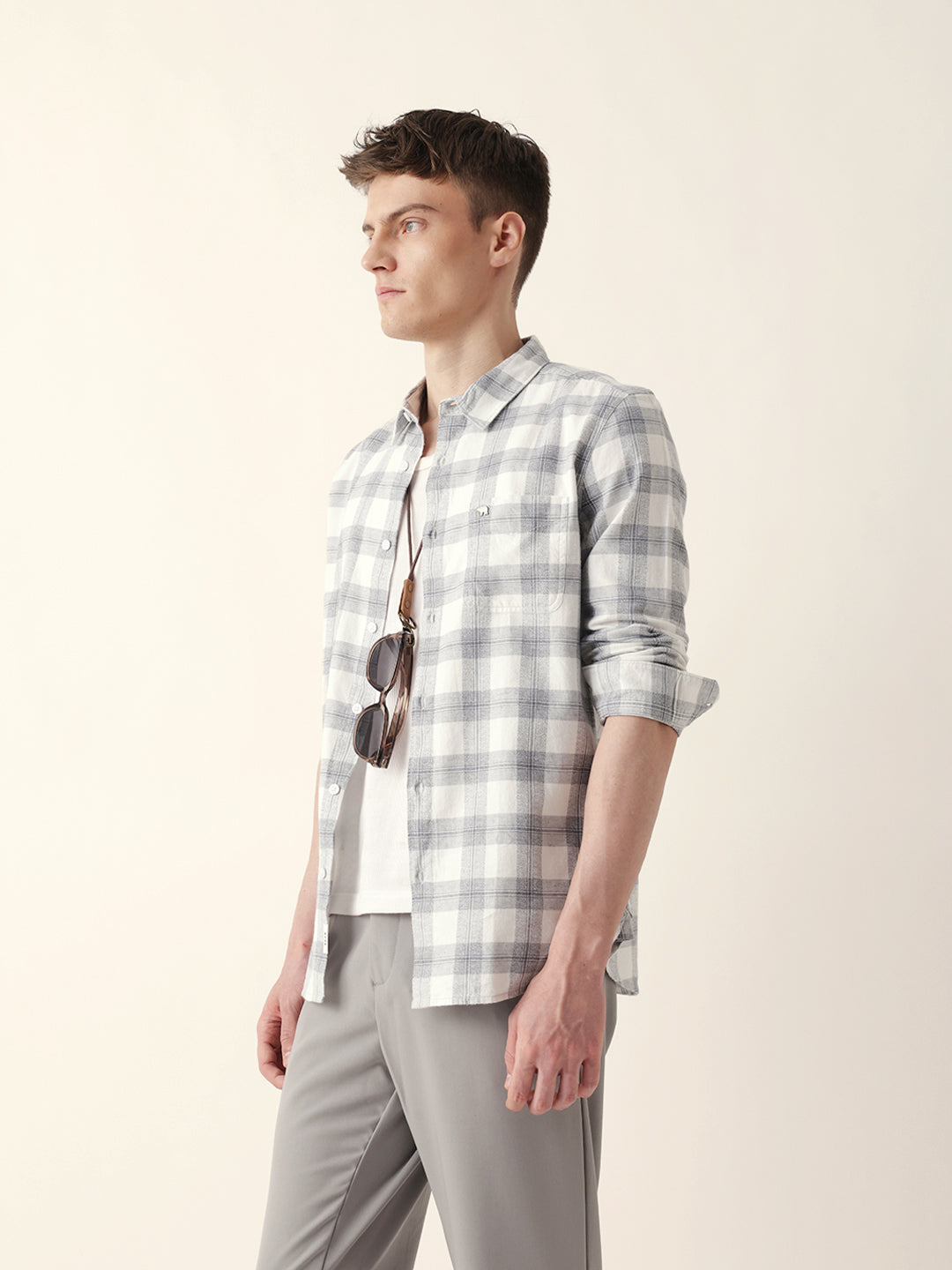 White & Grey Flannel Woven Checked Slim Fit Casual Shirt