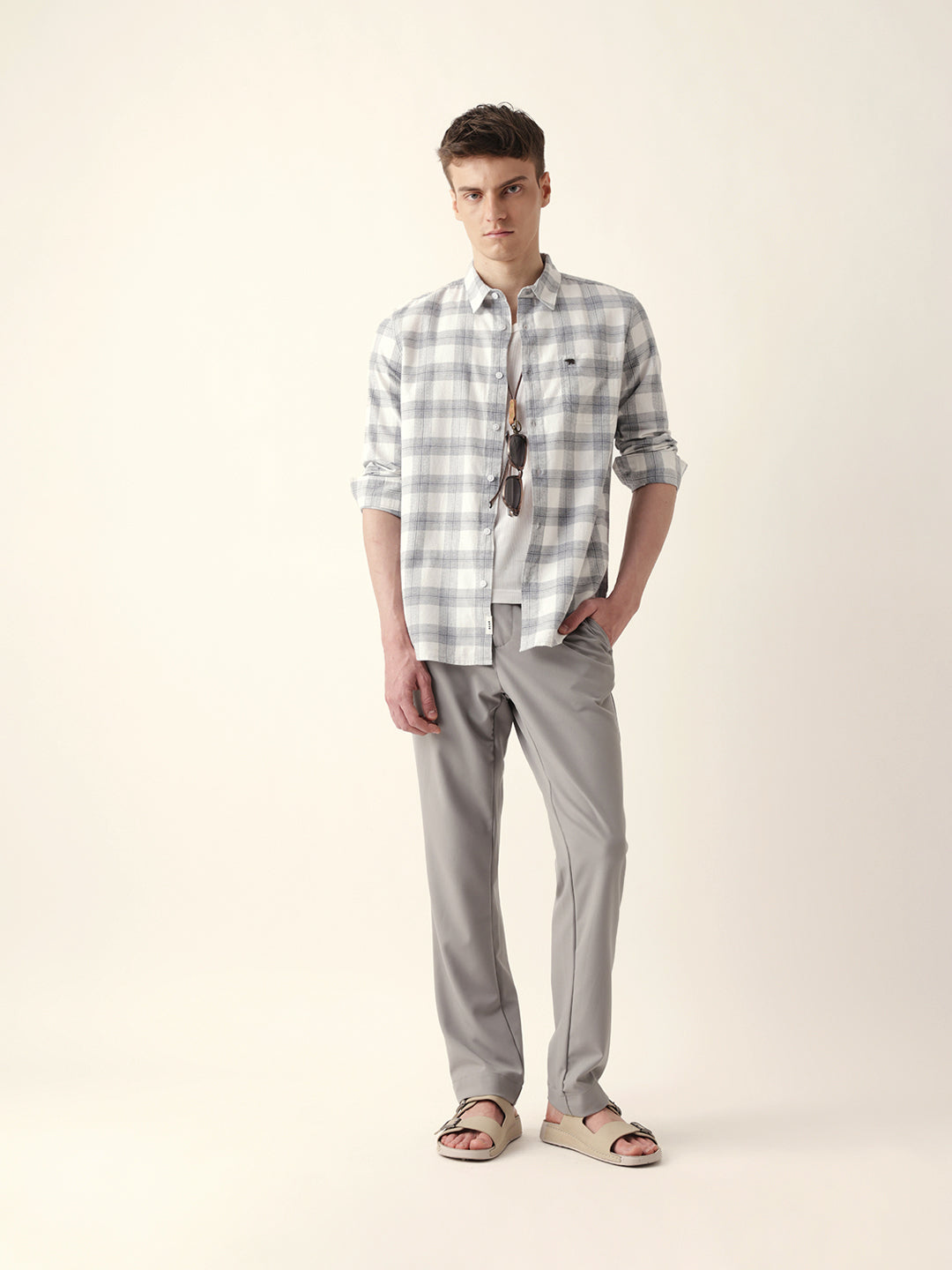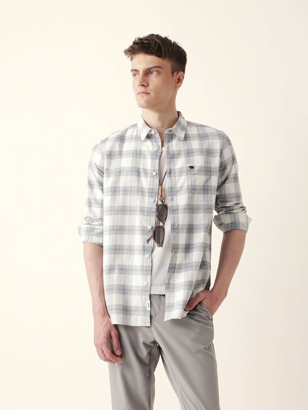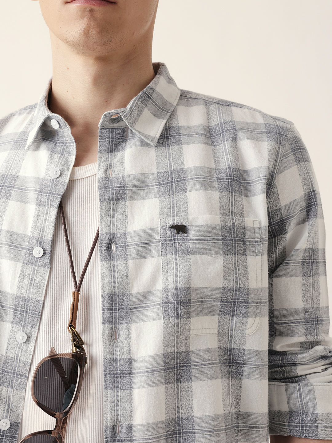 White & Grey Flannel Woven Checked Slim Fit Casual Shirt