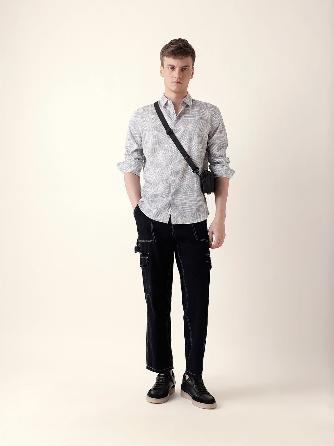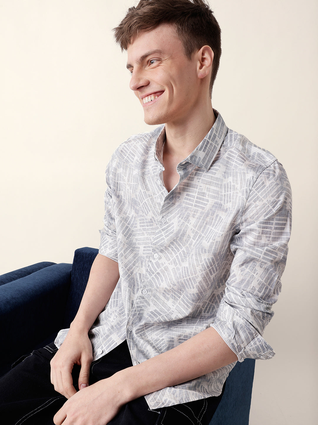 Shop Grey Abstract Geometric Printed Slim Fit Casual Shirt Online.