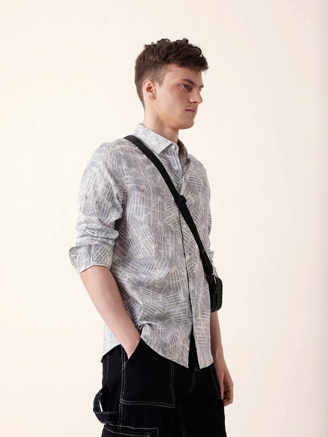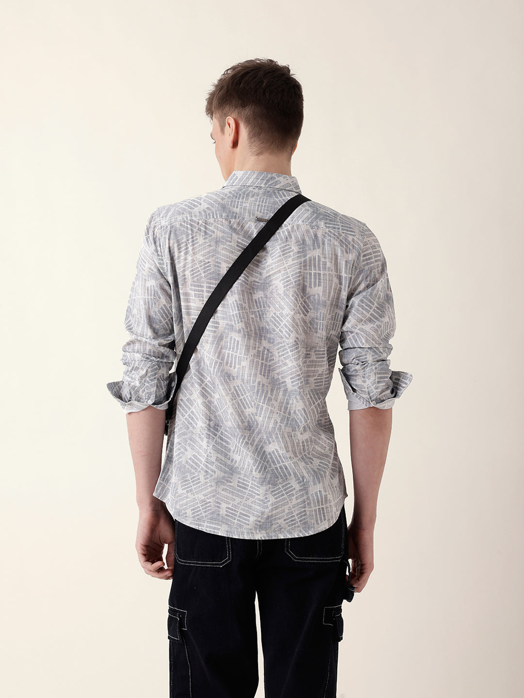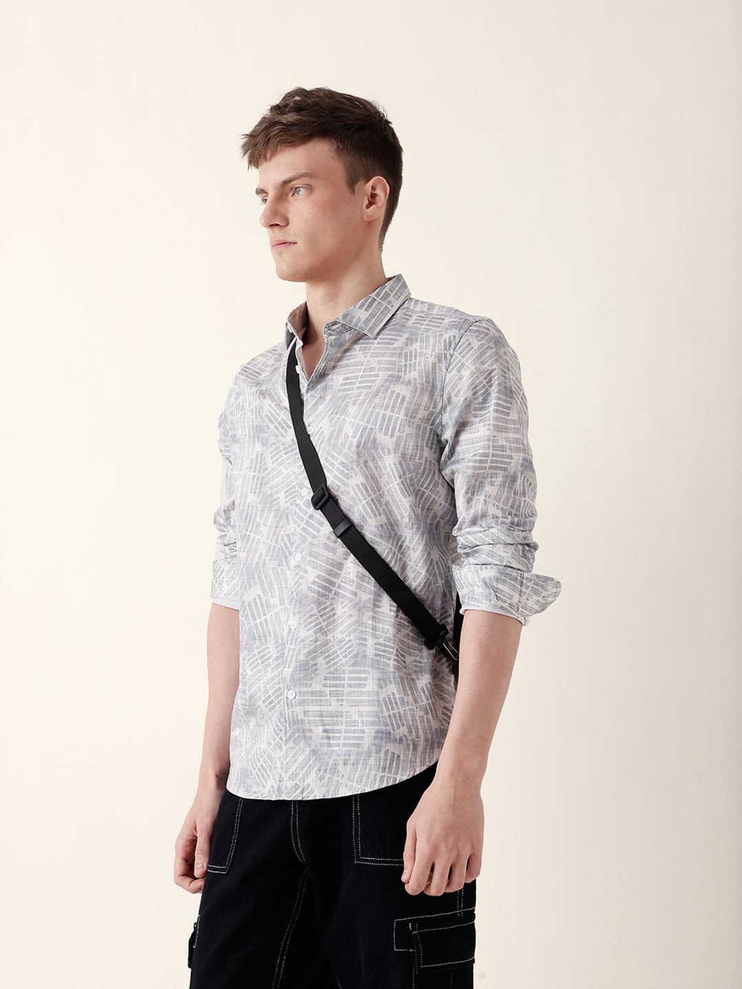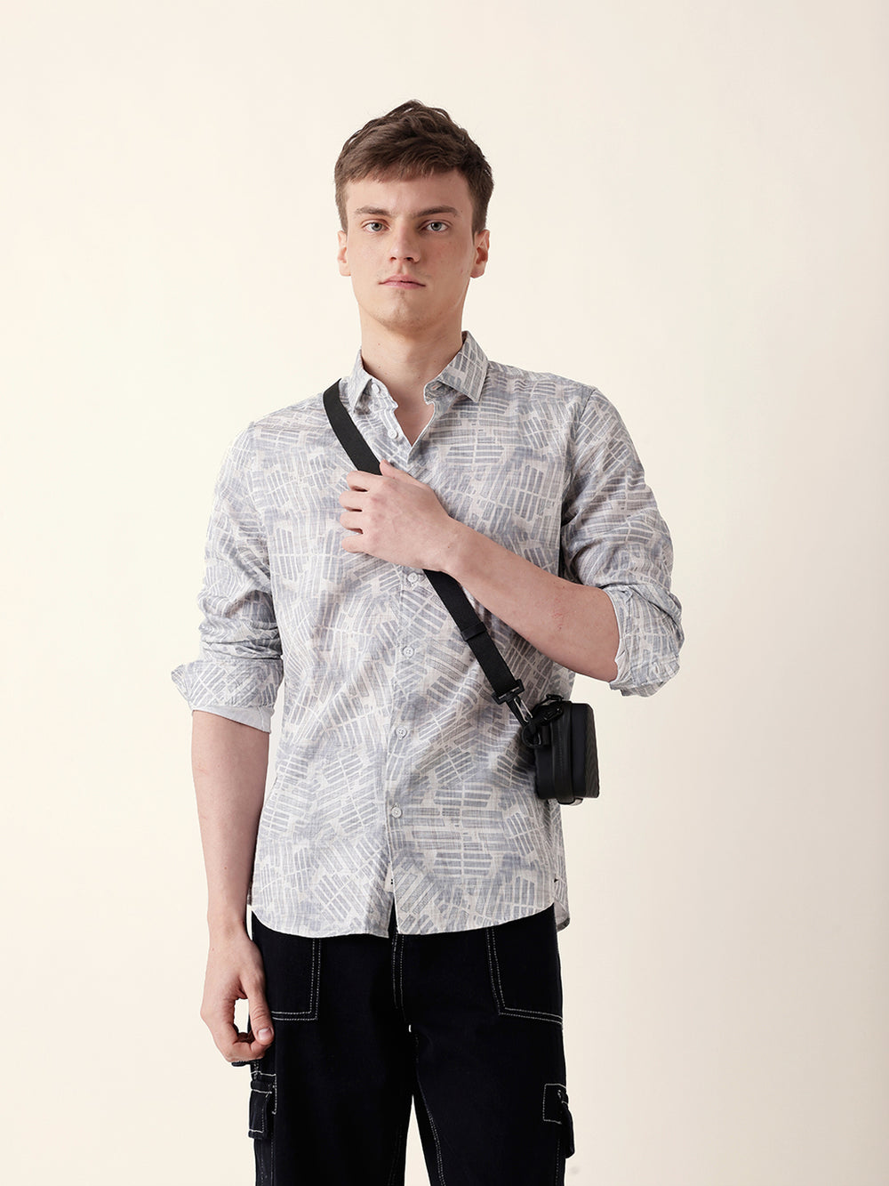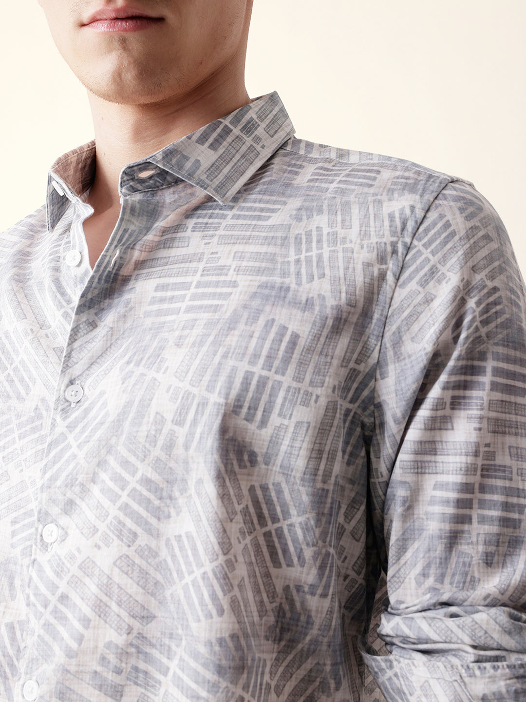 Grey Abstract Geometric Printed Slim Fit Casual Shirt
