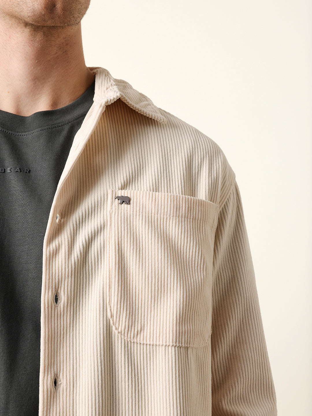 - Pocket: Single chest pocket with subtle metal bear logo badge
