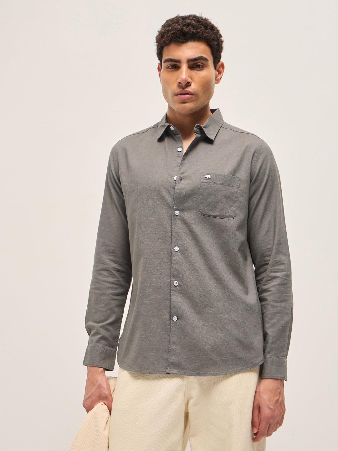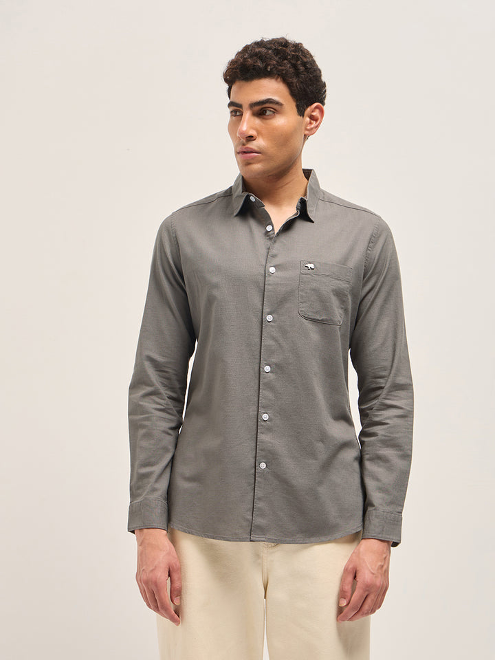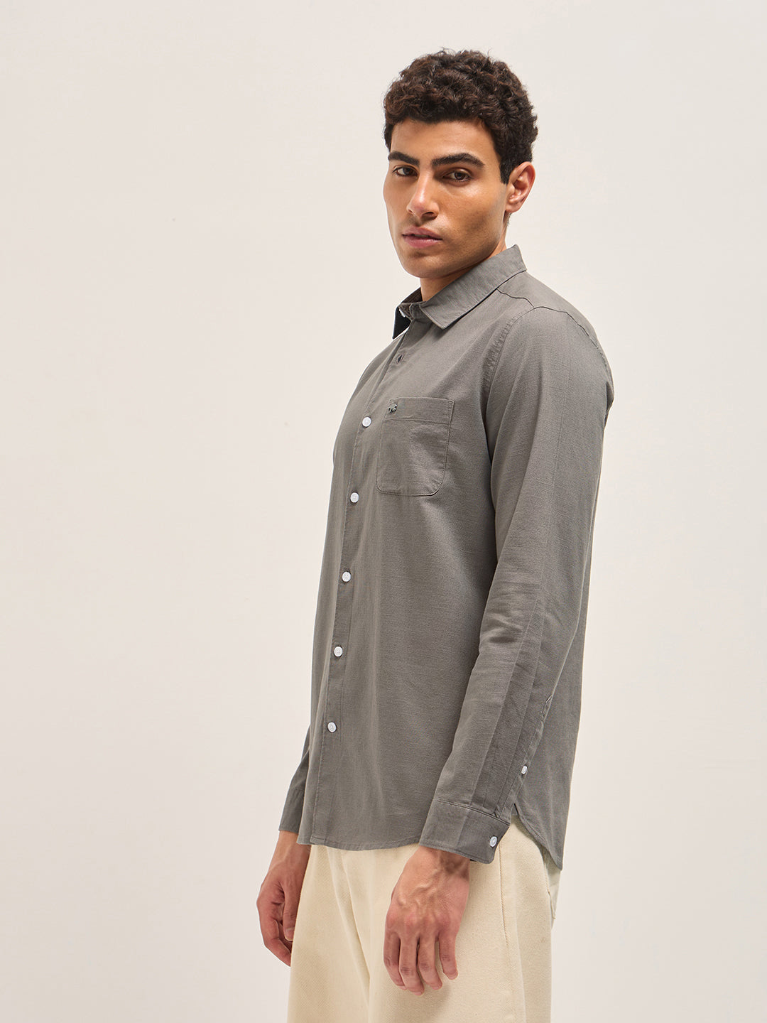 Grey Cotton Linen Slim Fit Solid Casual Shirt