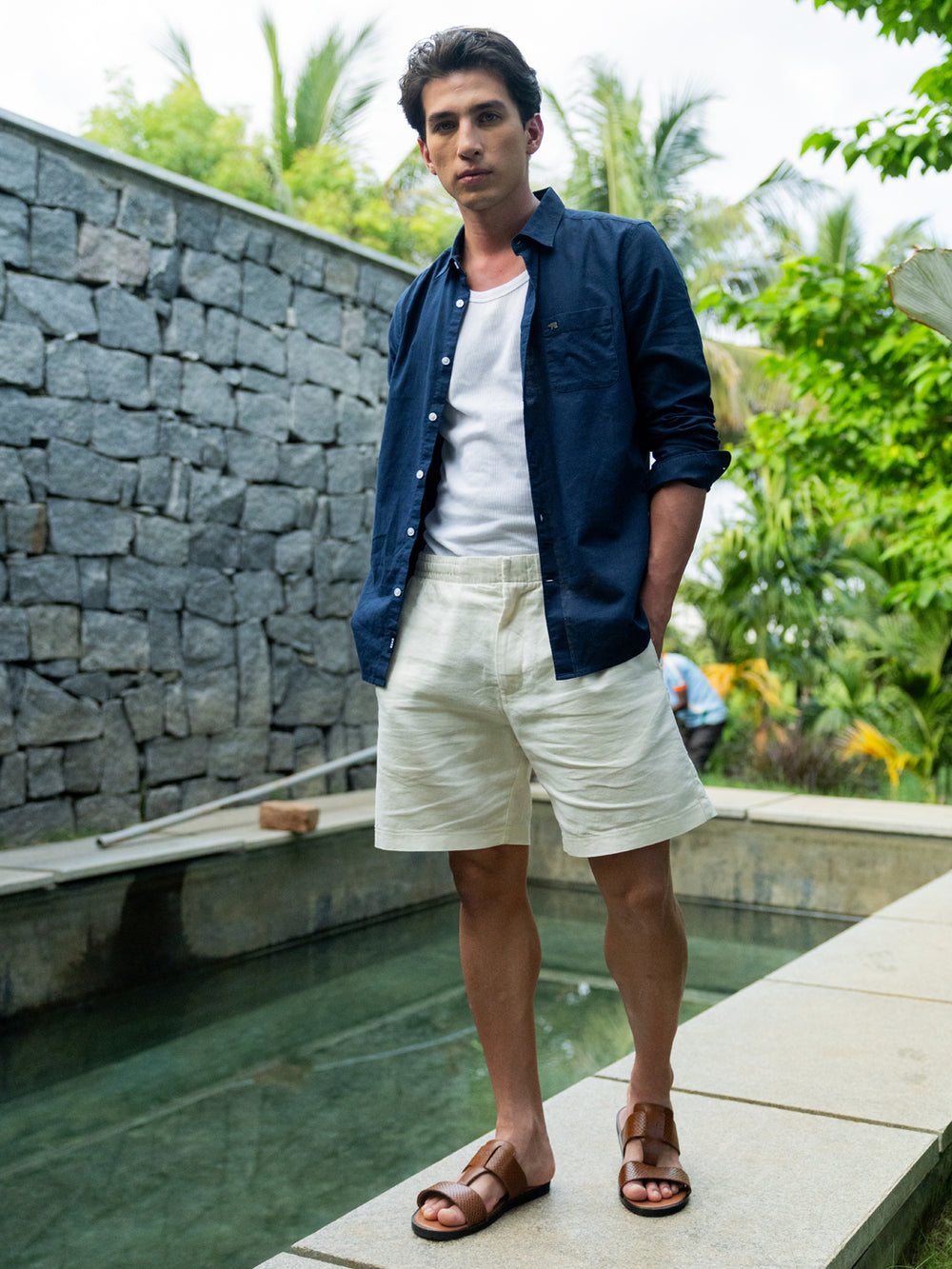 Shop Blue Cotton Linen Slim Fit Solid Casual Shirt Online.
