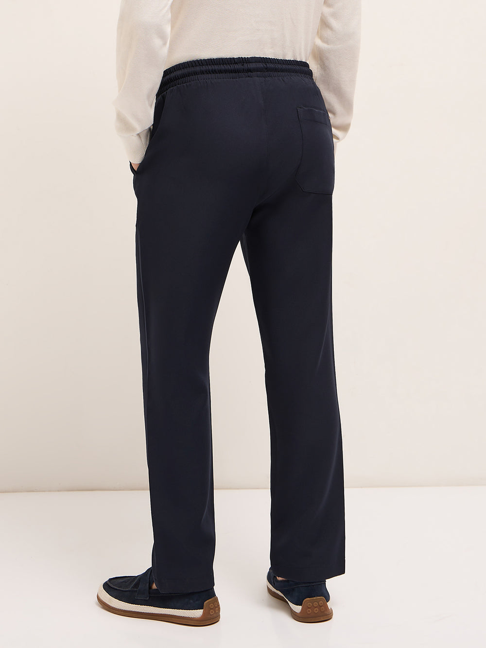 Navy Classic Korean-Inspired Elastic Waist Casual Trouser