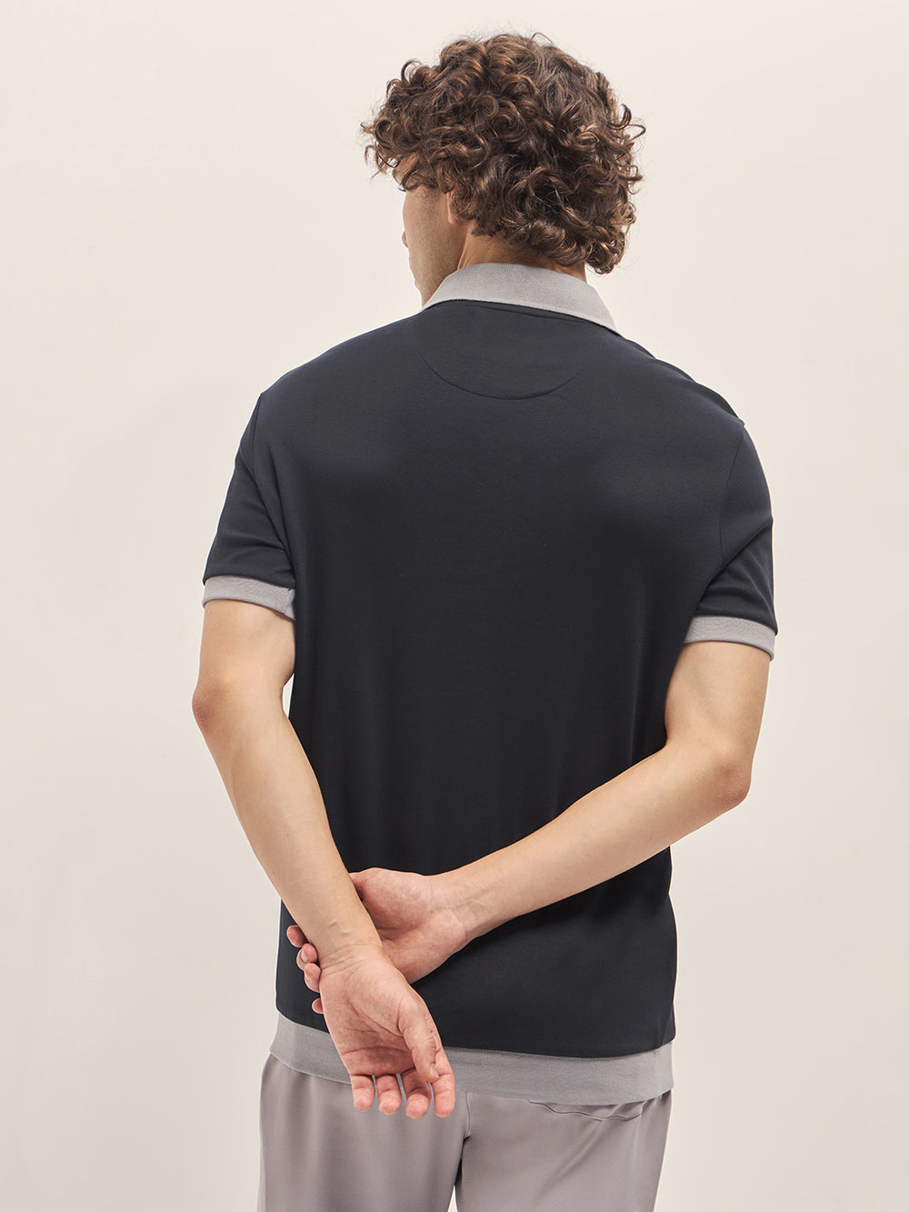 Black Relax Fit Polo T-shirt with Contrast Collar