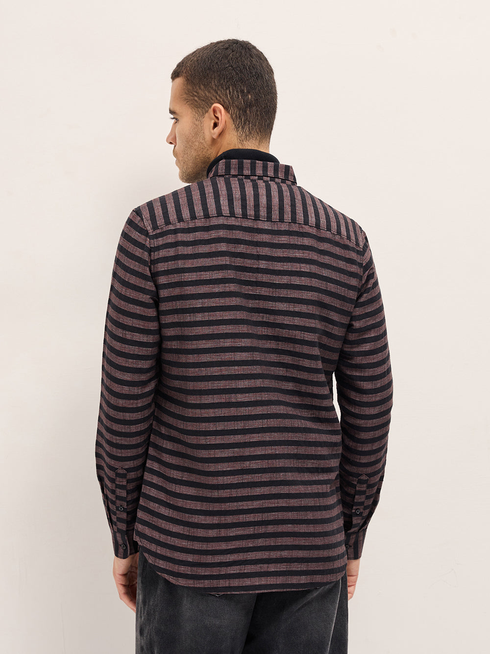 Pink with Black Horizontal Stripe Slim Fit Casual Shirt