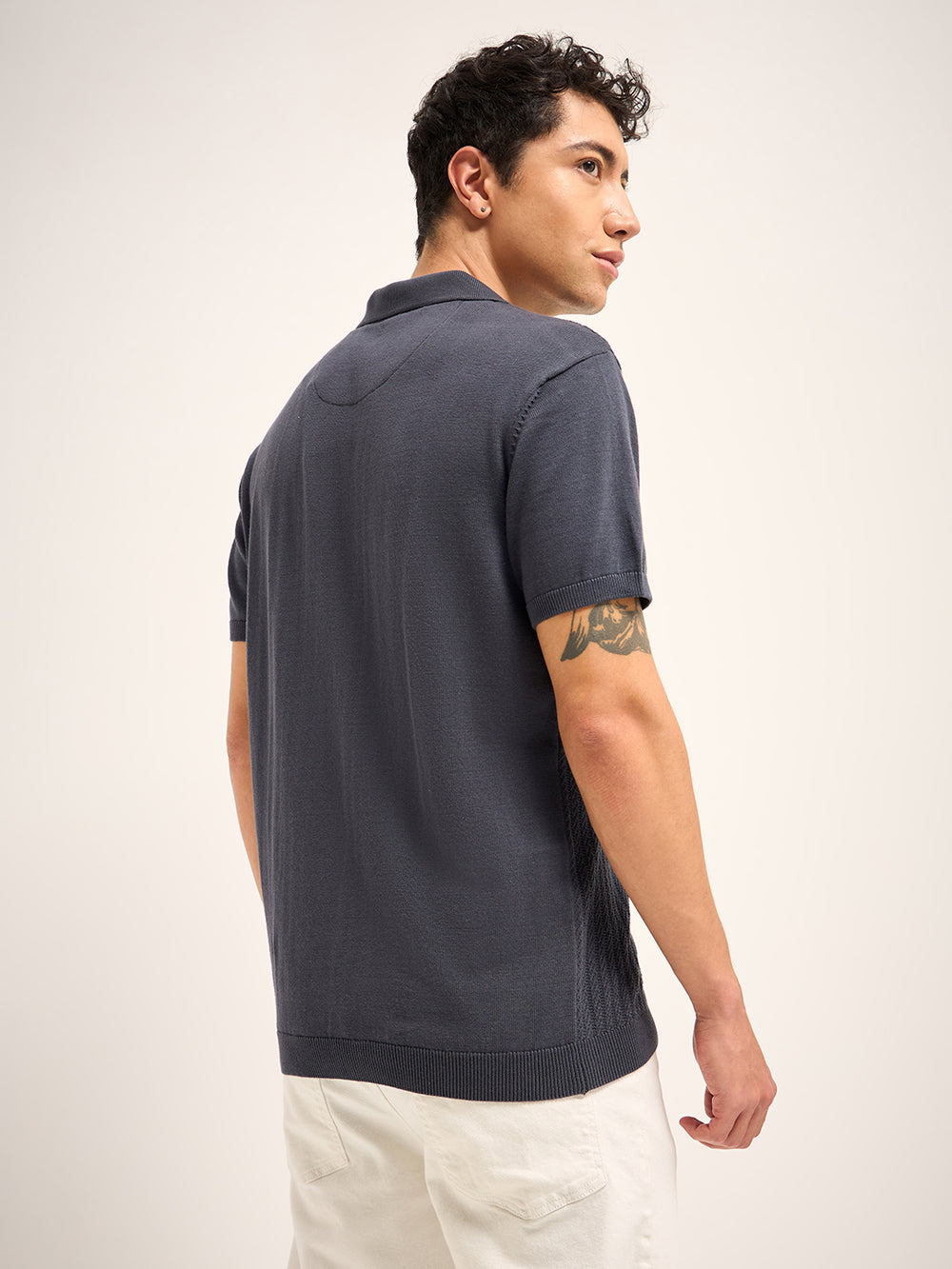 Charcoal Self Design Regular Fit Polo T-Shirt