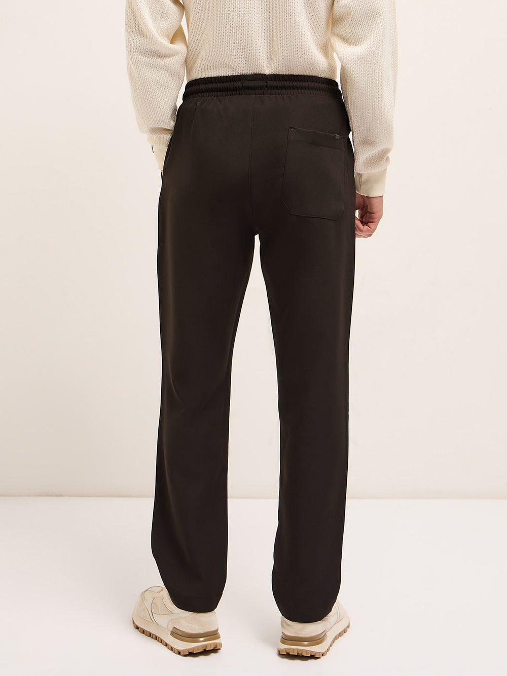 Brown Classic Korean-Inspired Elastic Waist Casual Trouser