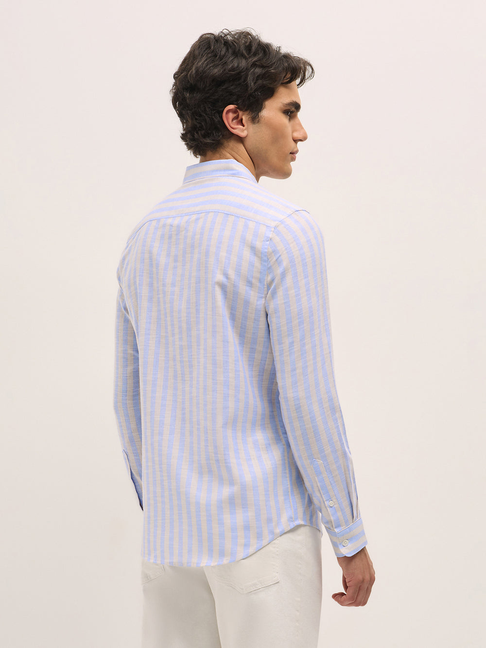 Blue with White Vertical Stripes Slim Fit Casual Shirt