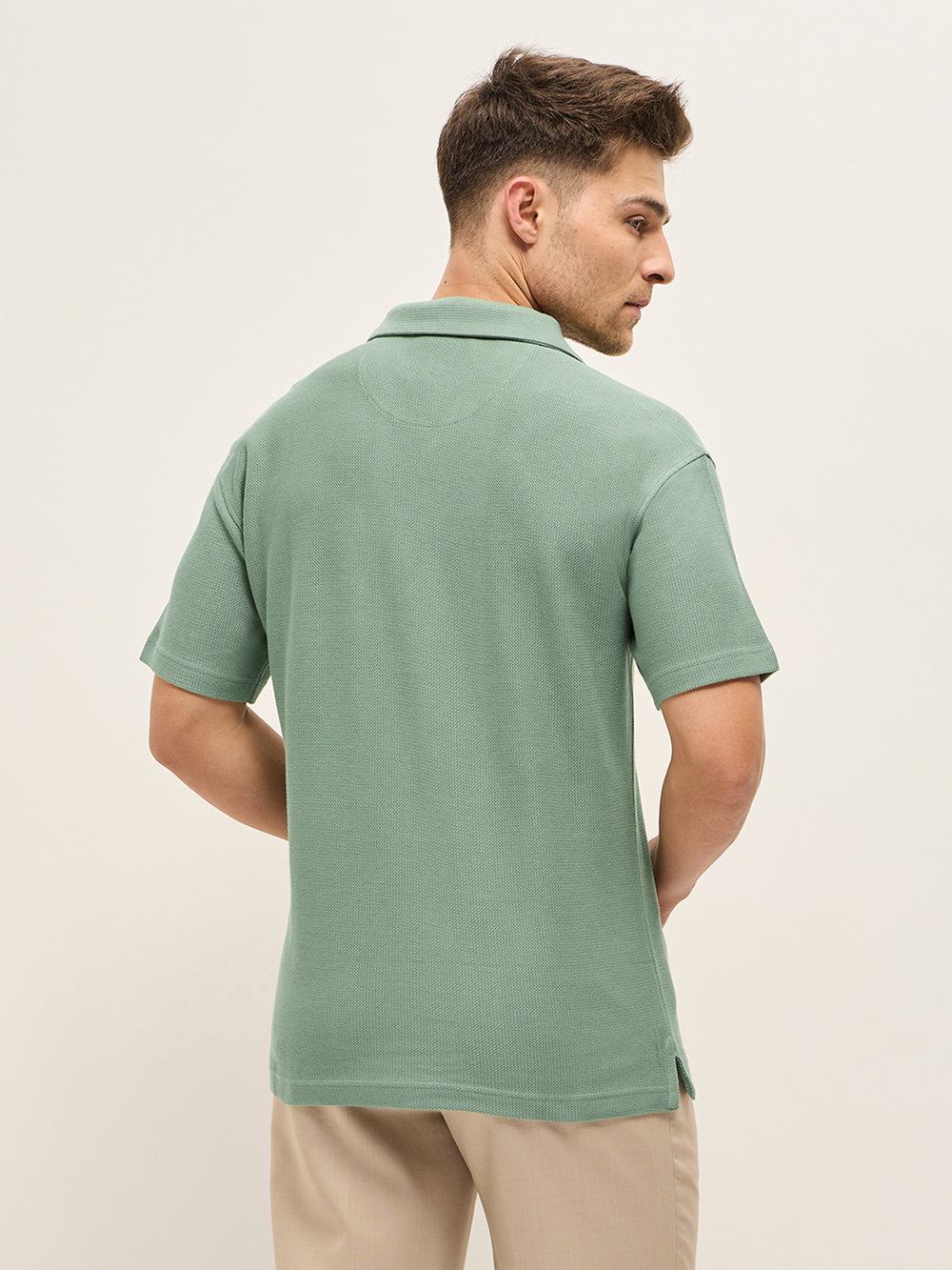 Light Green Solid Collar with Sleek V-notch Relaxed Fit Polo