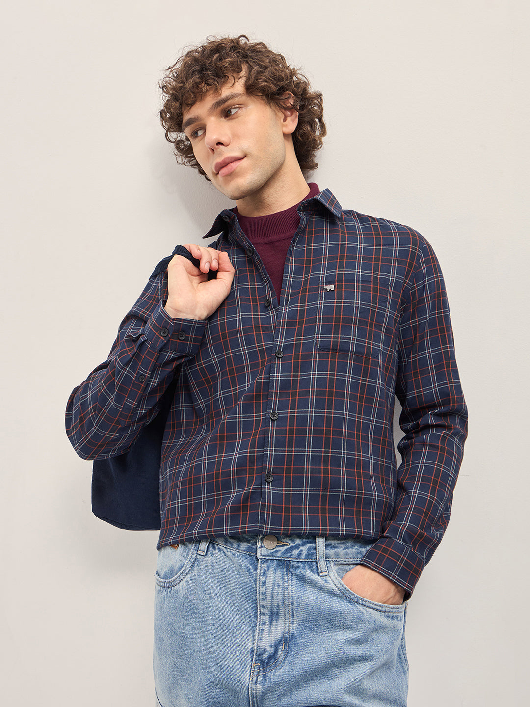 Shop Multi-Color Checked Slim Fit Casual Shirt Online.