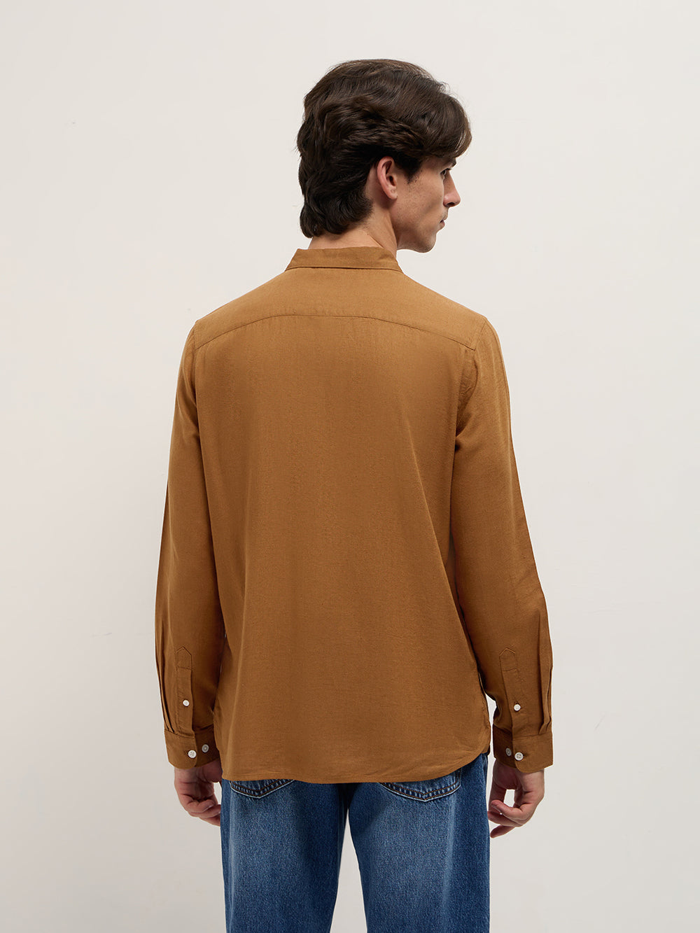 Brown Solid Lyocell Slim Fit Casual Shirt