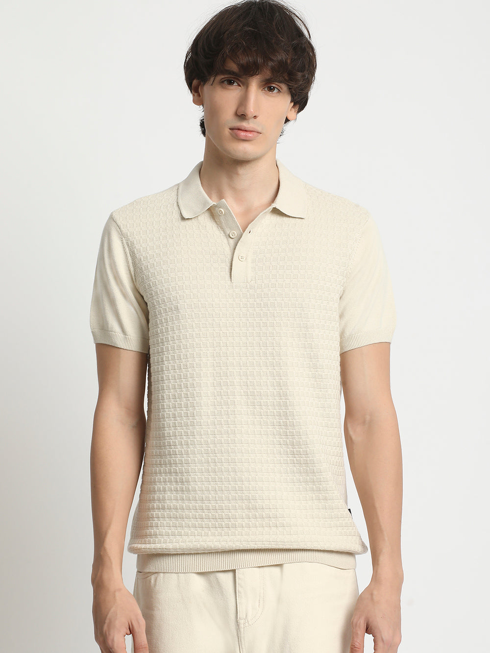Men's Classic Beige Short Sleeve Polo T-Shirt