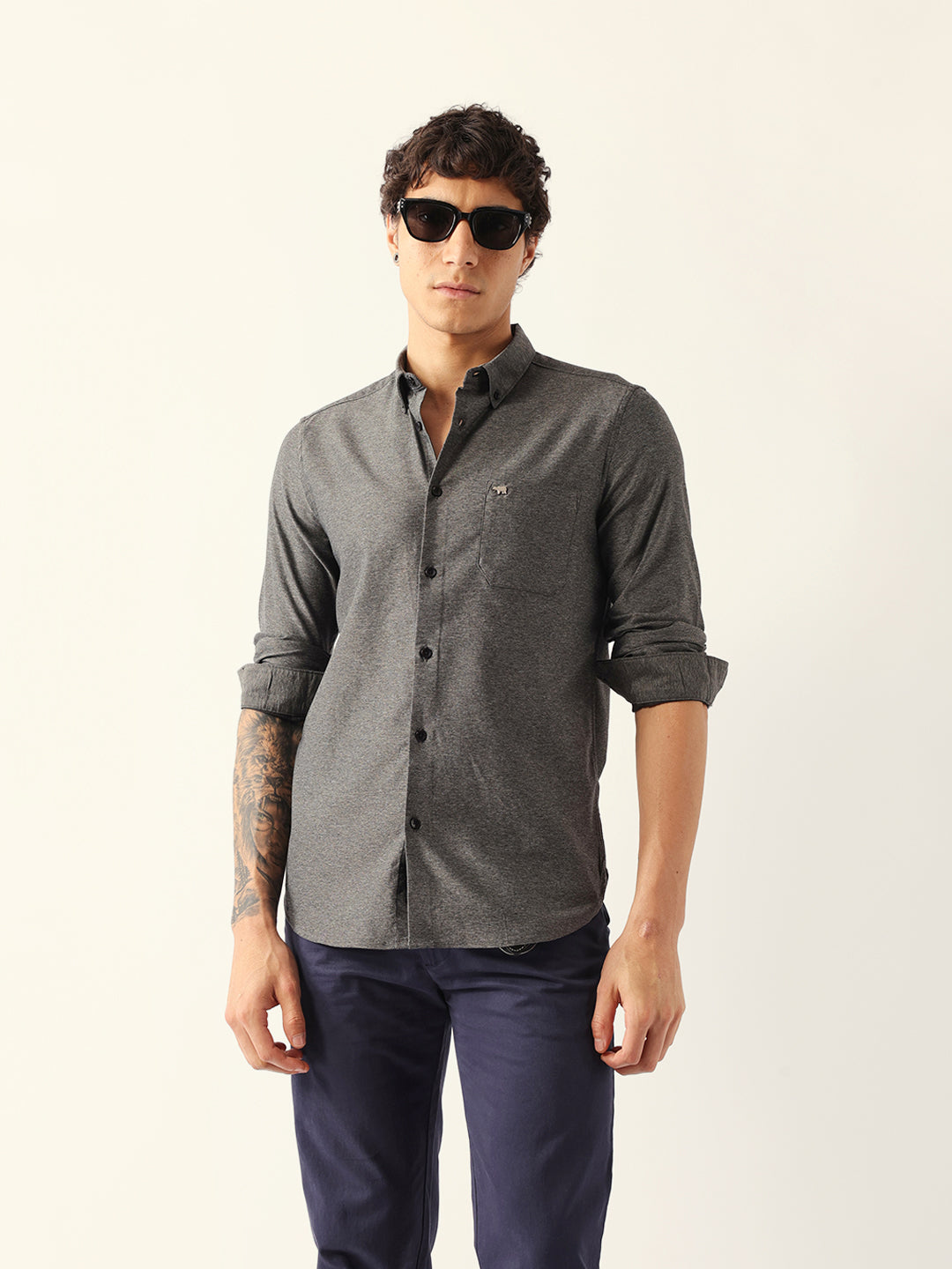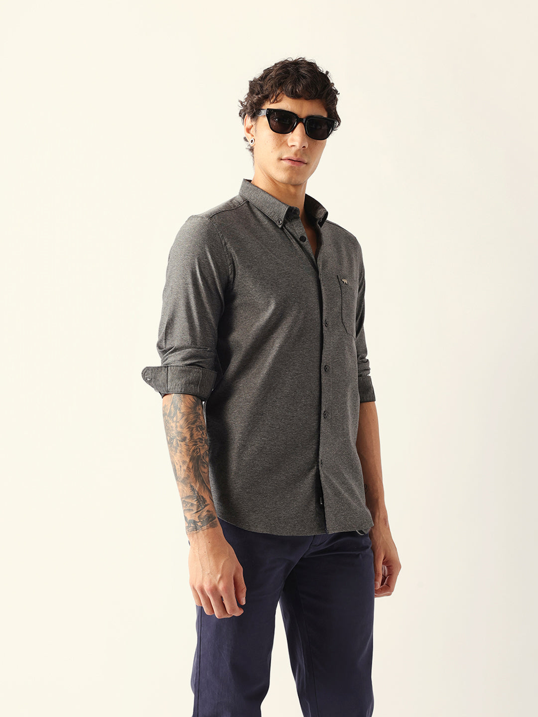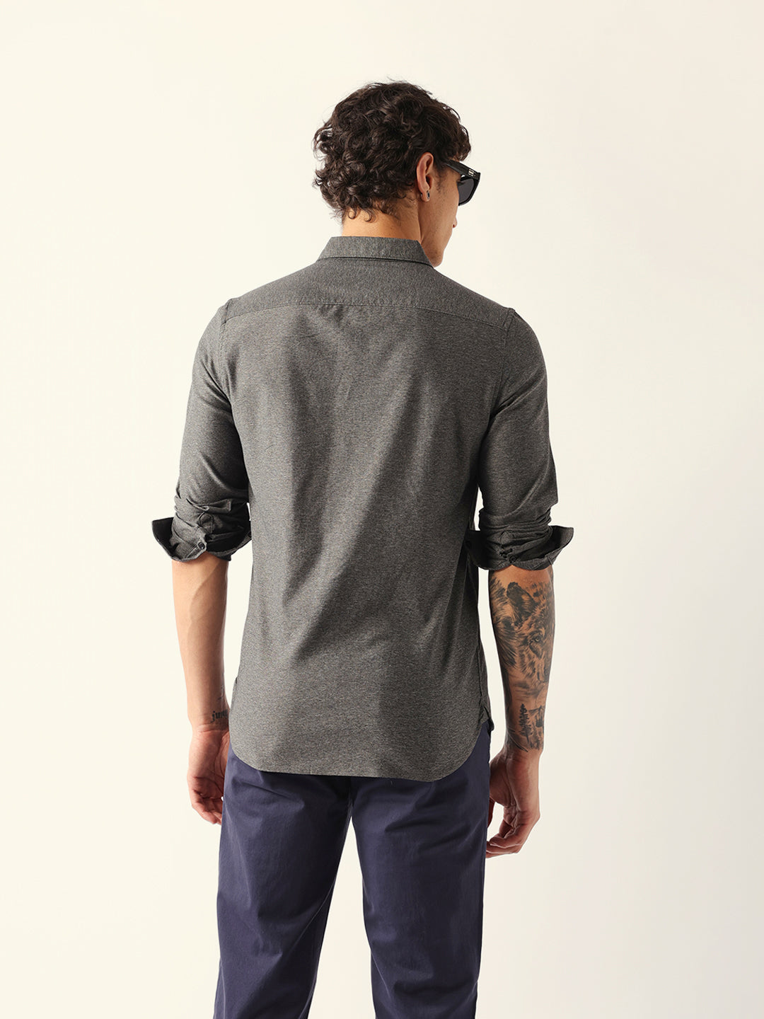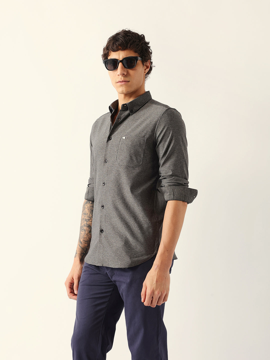 Grey Slim Fit Solid Cotton Blend Casual Shirt
