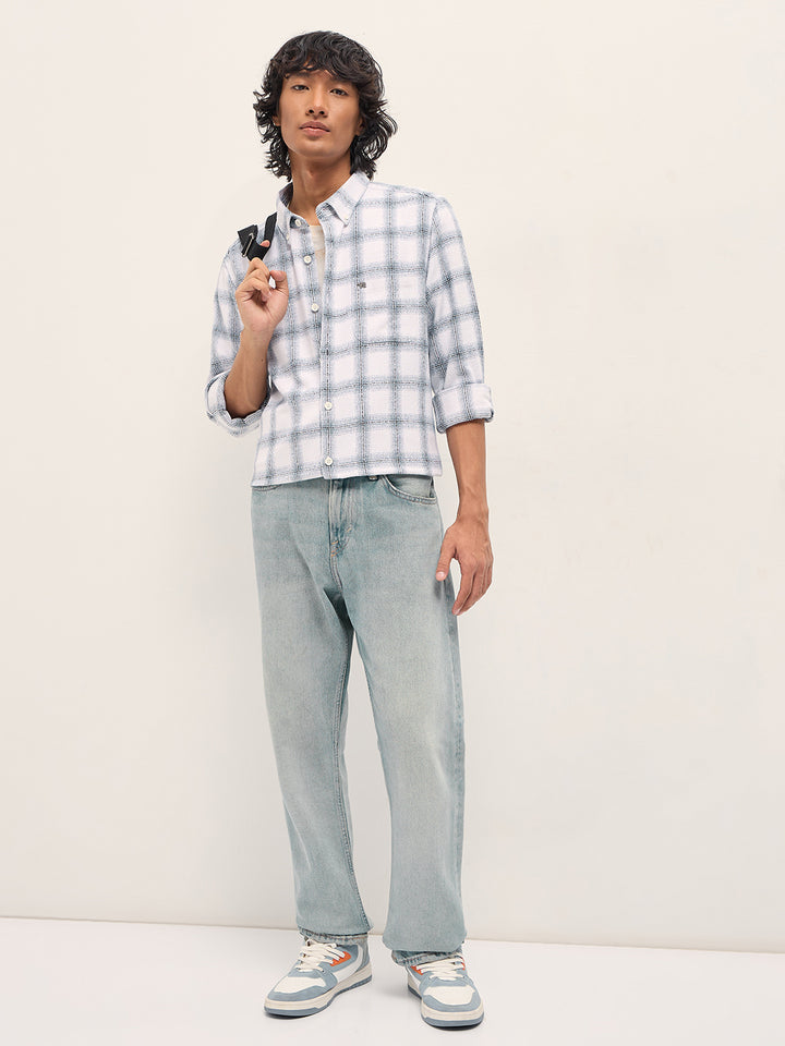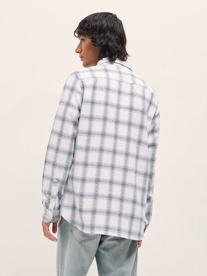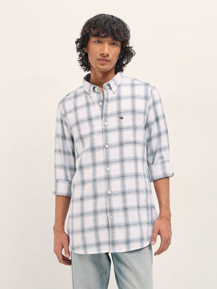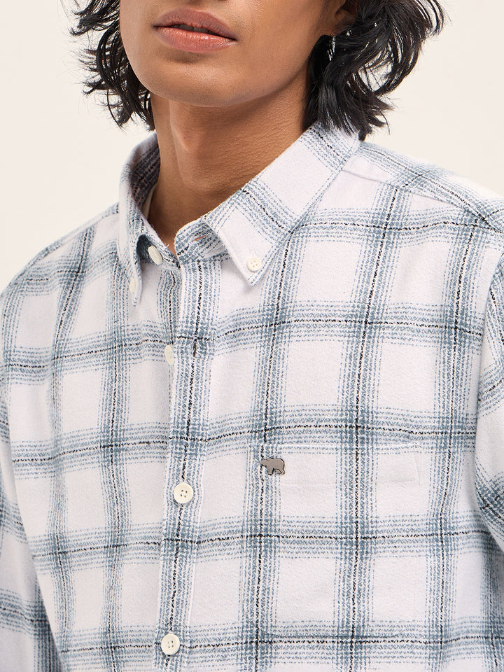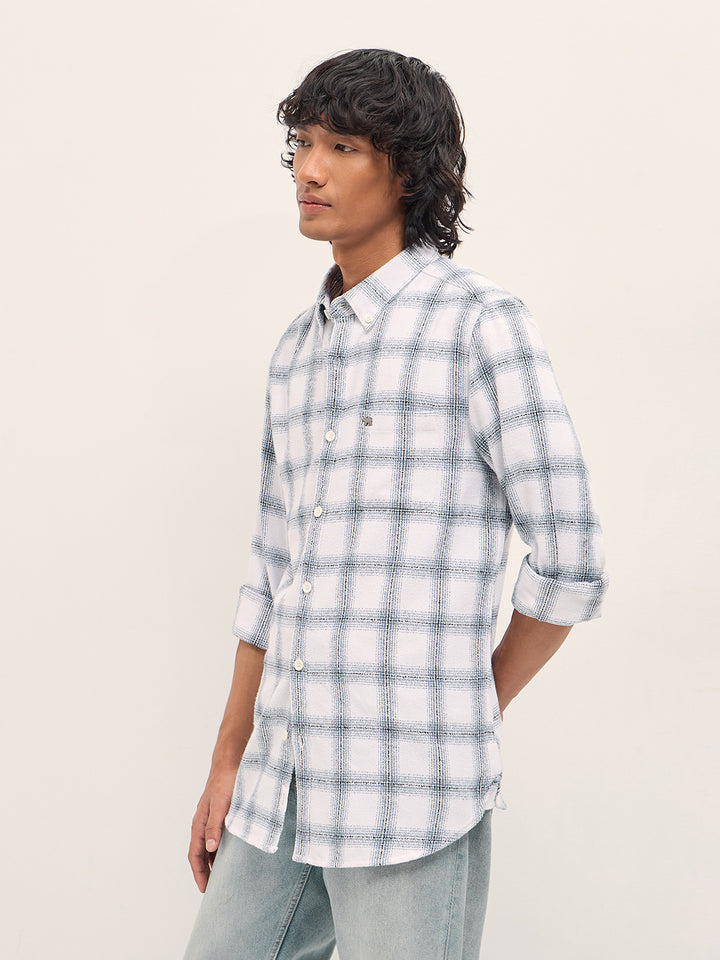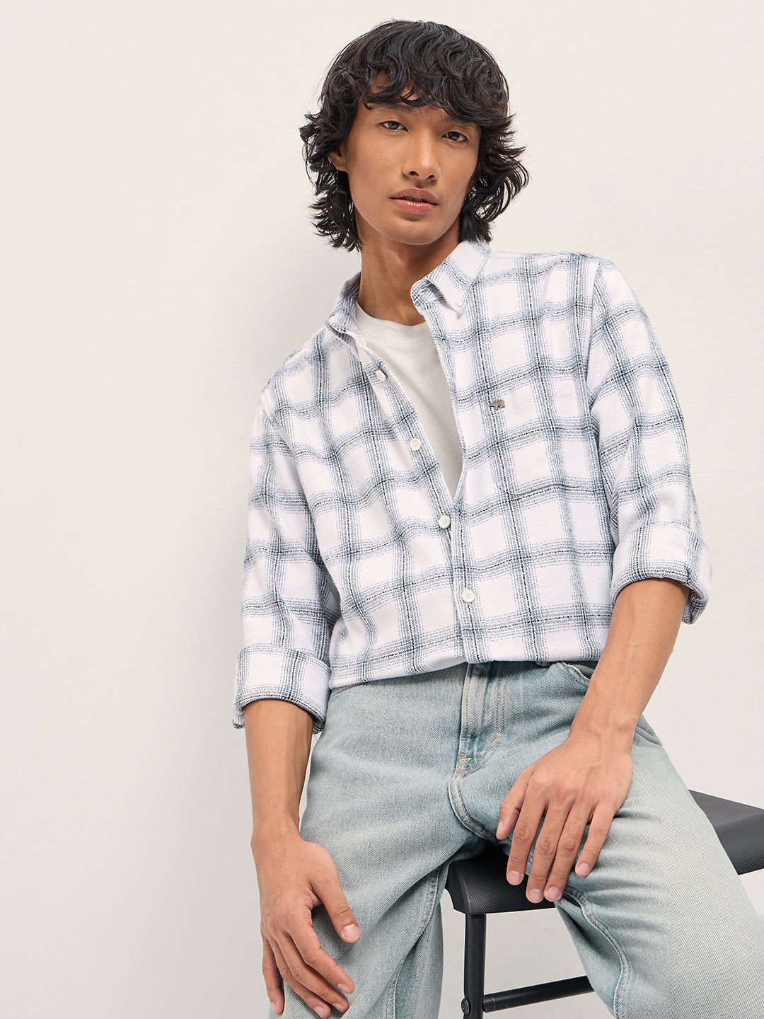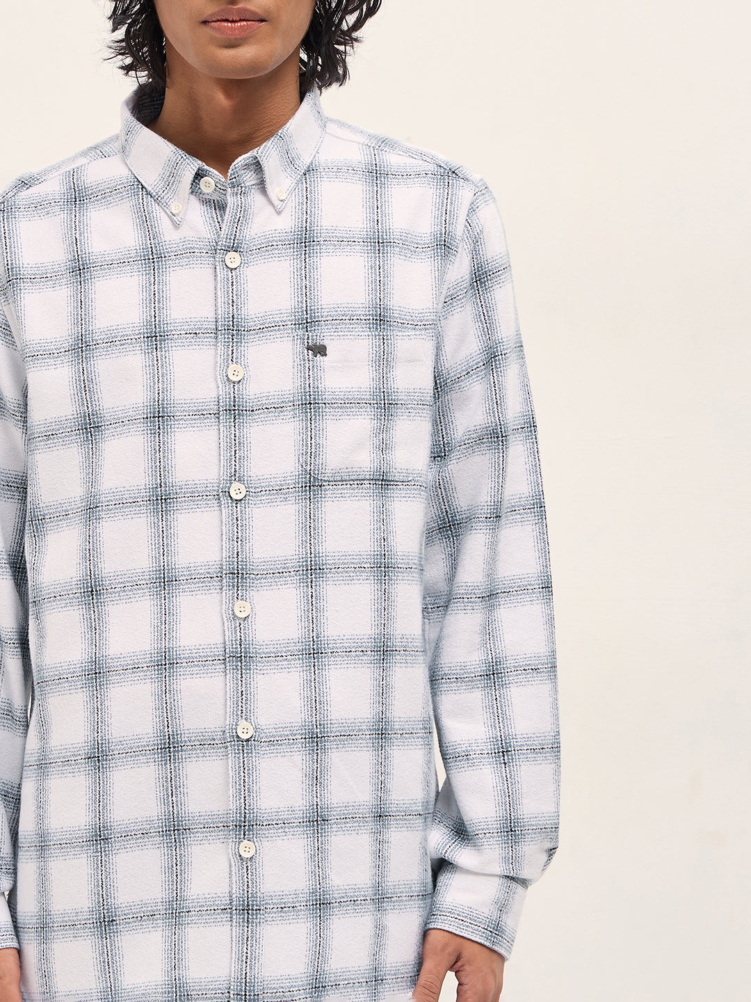 White Tartan Checked Flannel Slim Fit Casual Shirt
