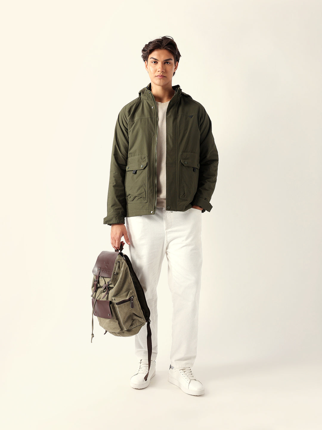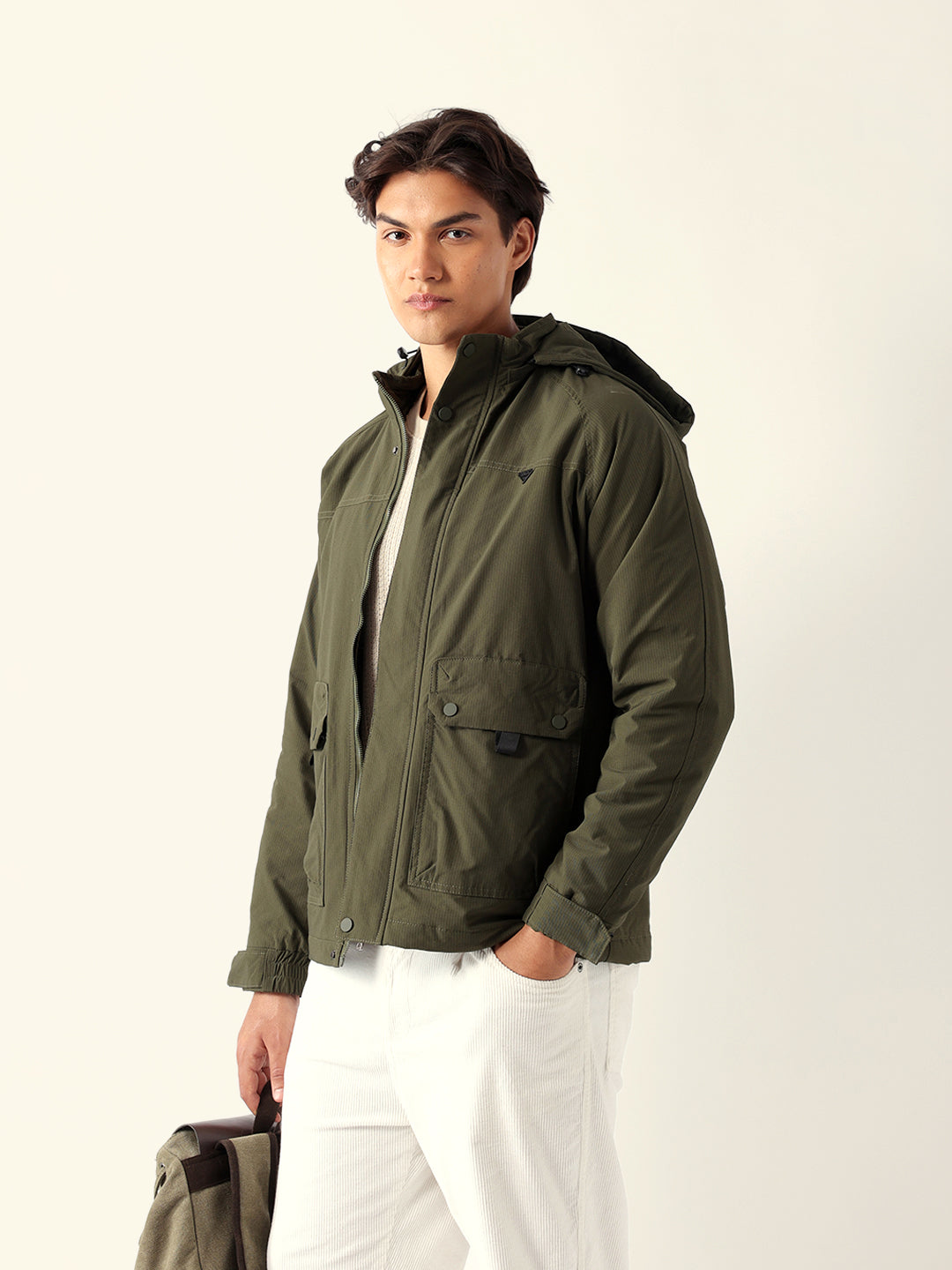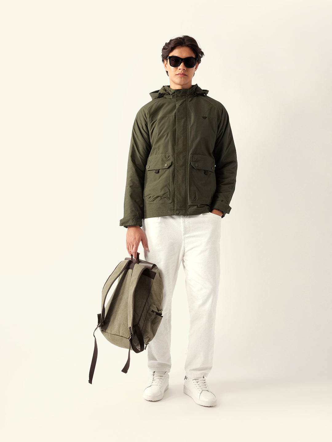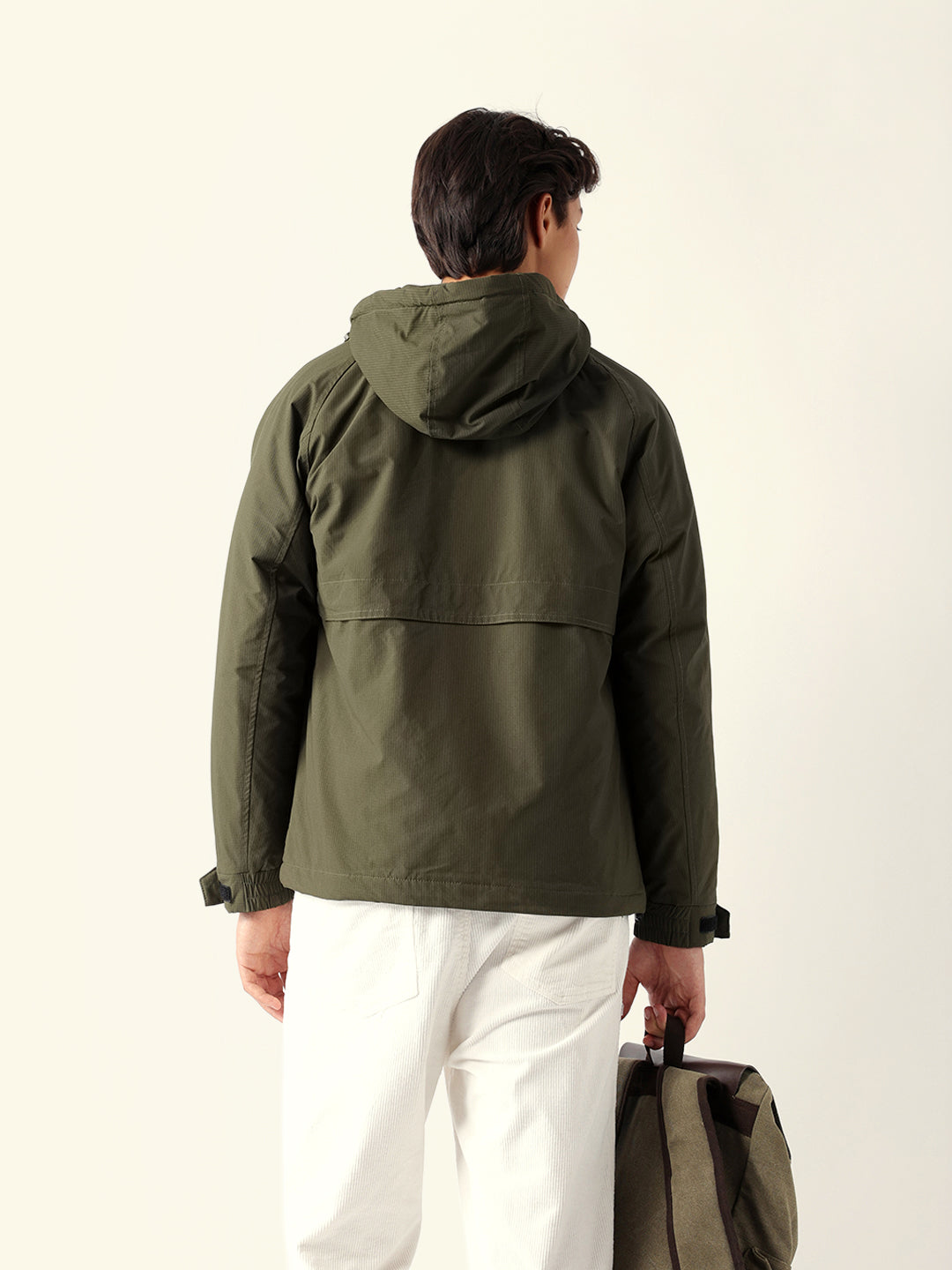 Olive Regular Fit Utility Jacket with Detachable Hood, Raglan Sleeves & Multi-Pockets