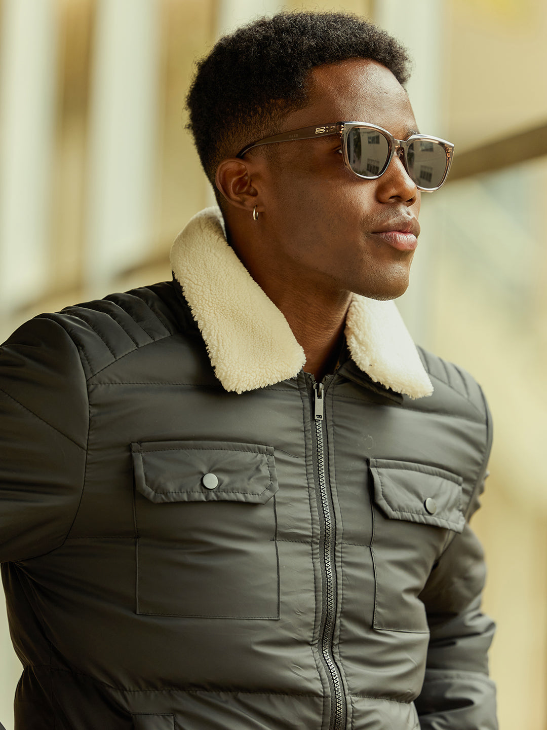 Neck Style: Mock-neck design with removable sherpa for adjustable warmth