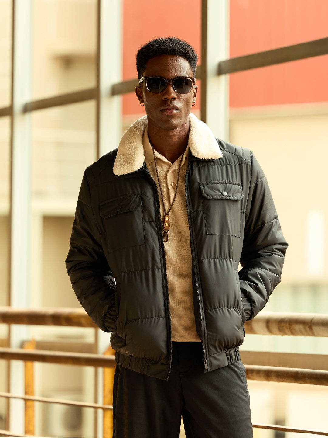 Design: Quilted puffer jacket with a structured silhouette