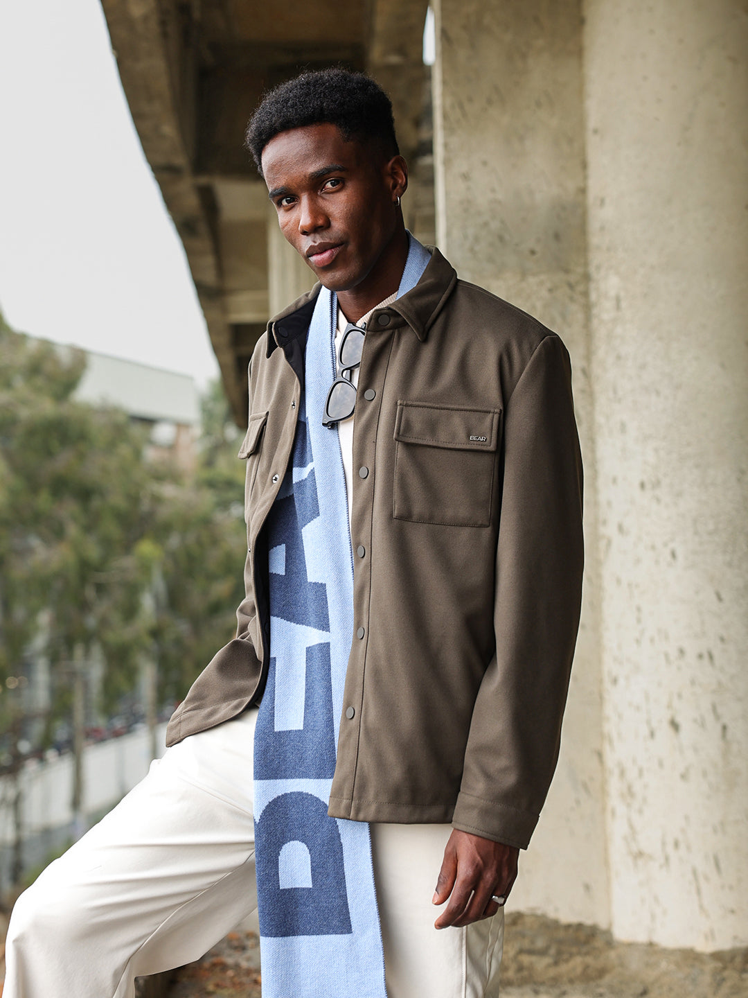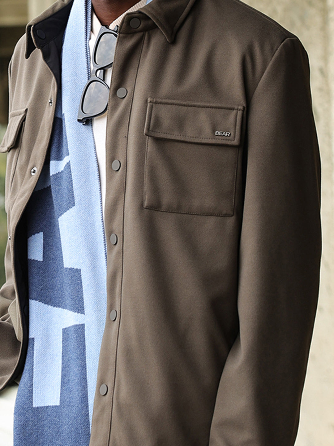 Olive Reversible Jacket with Regular Collar, Snap-Button Closure & Chest Flap Pockets