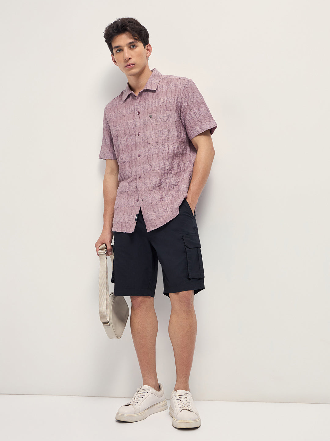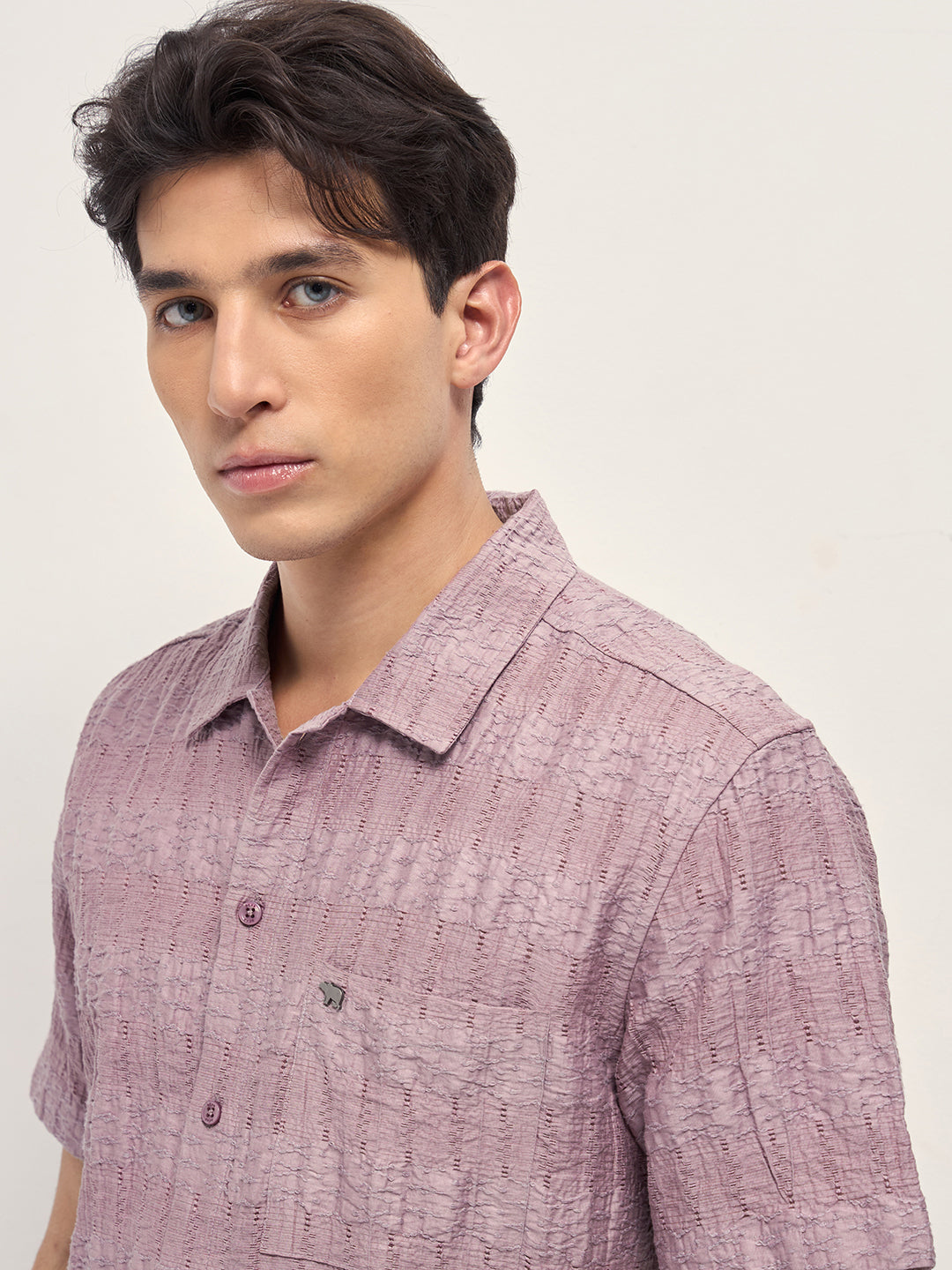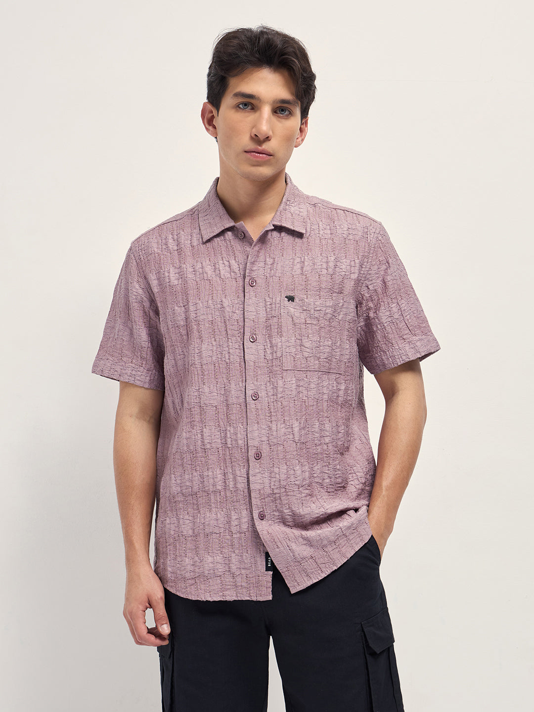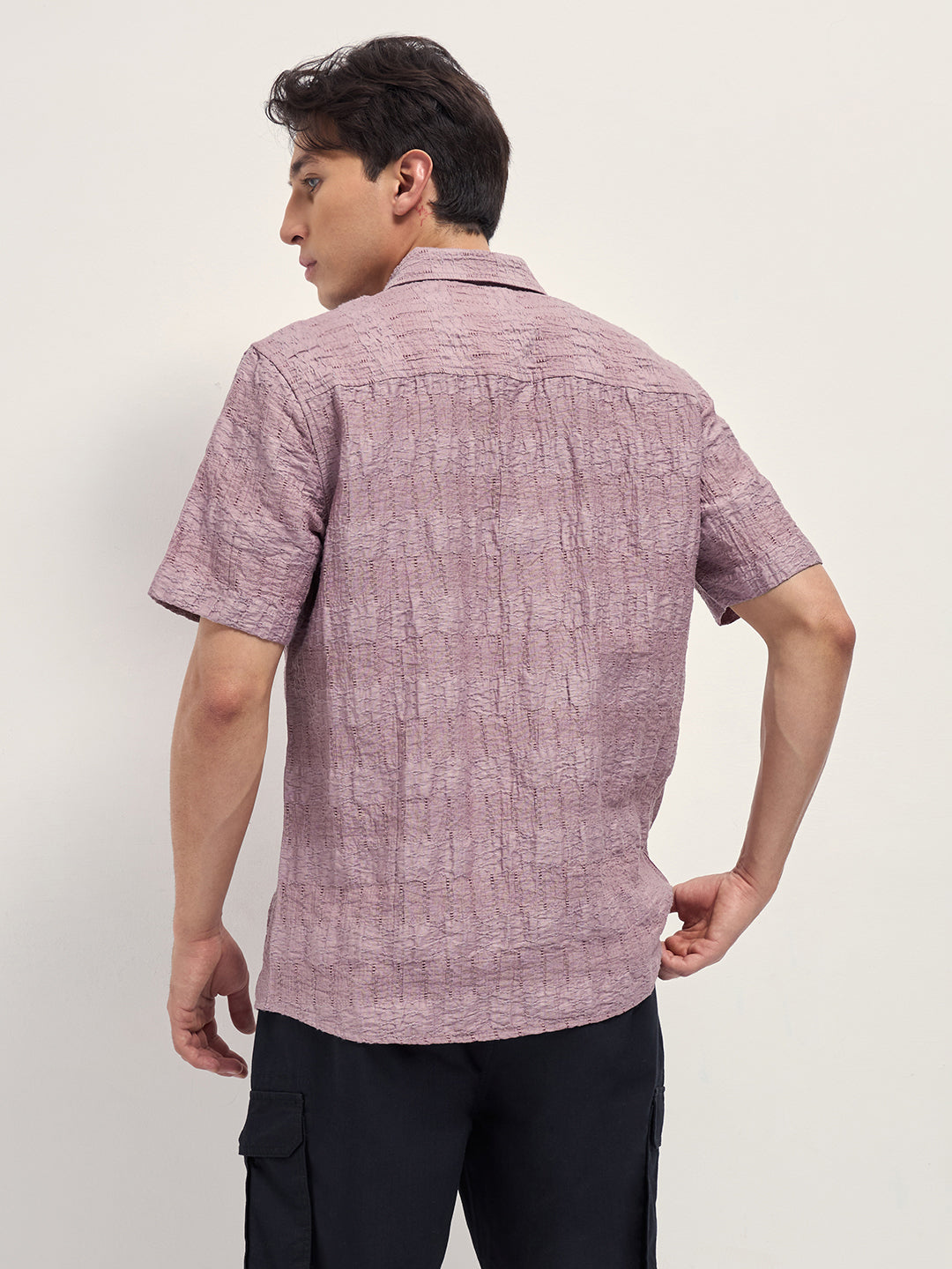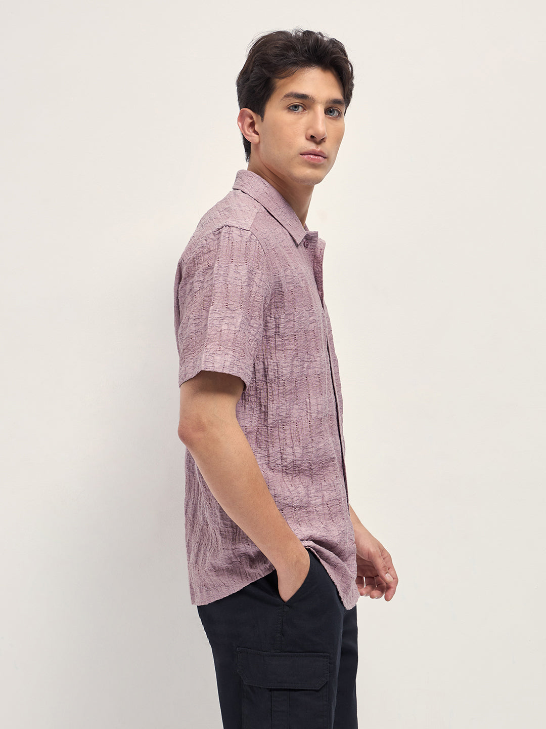 Pink Crinkle Textured Regular Fit Half-Sleeve Casual Shirt
