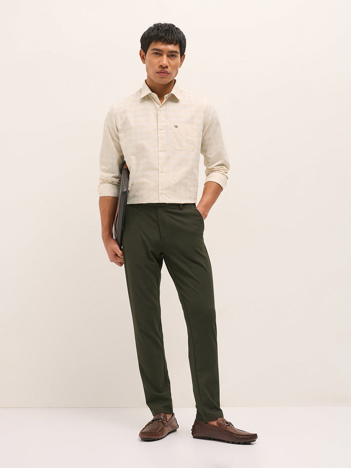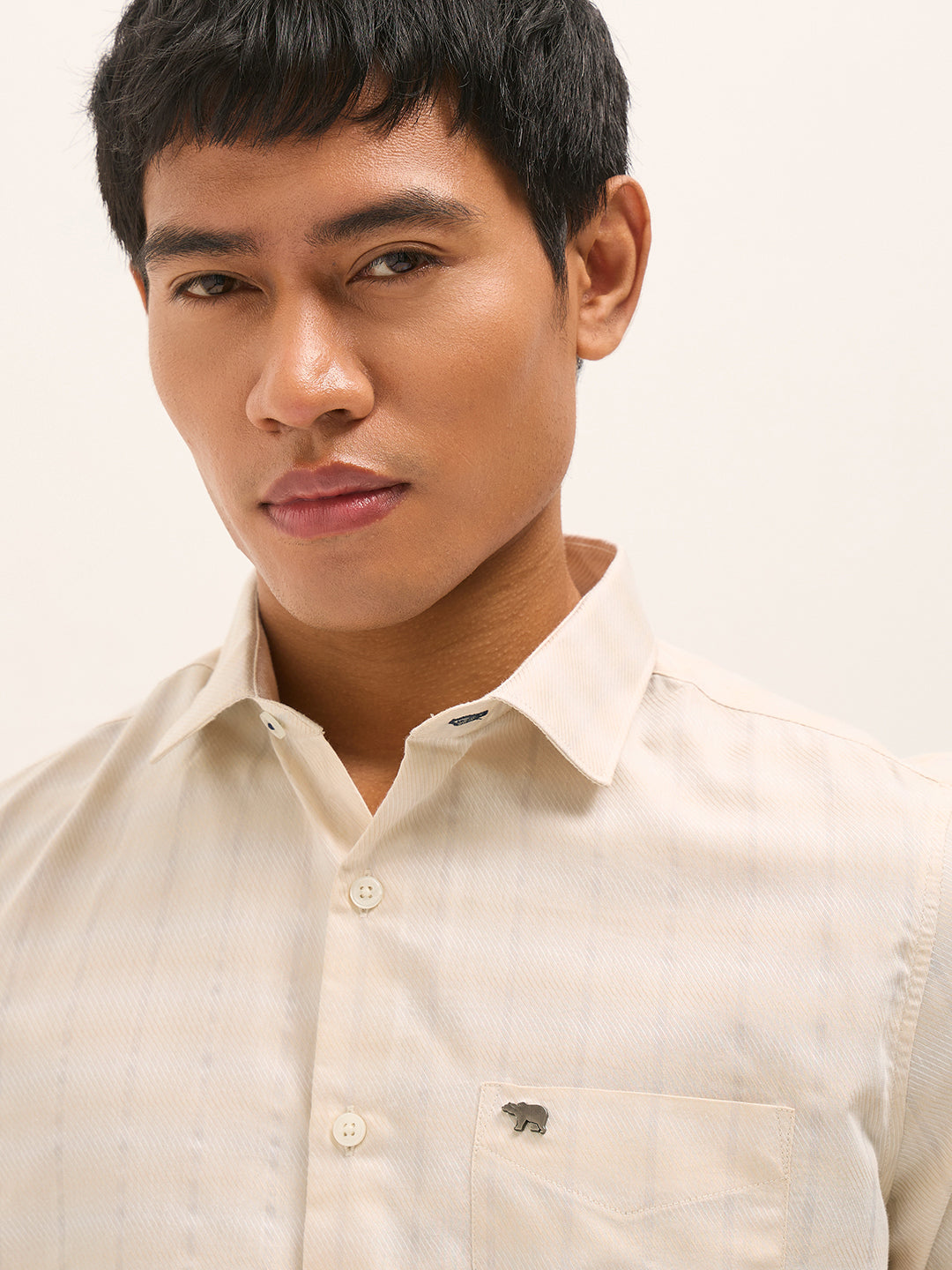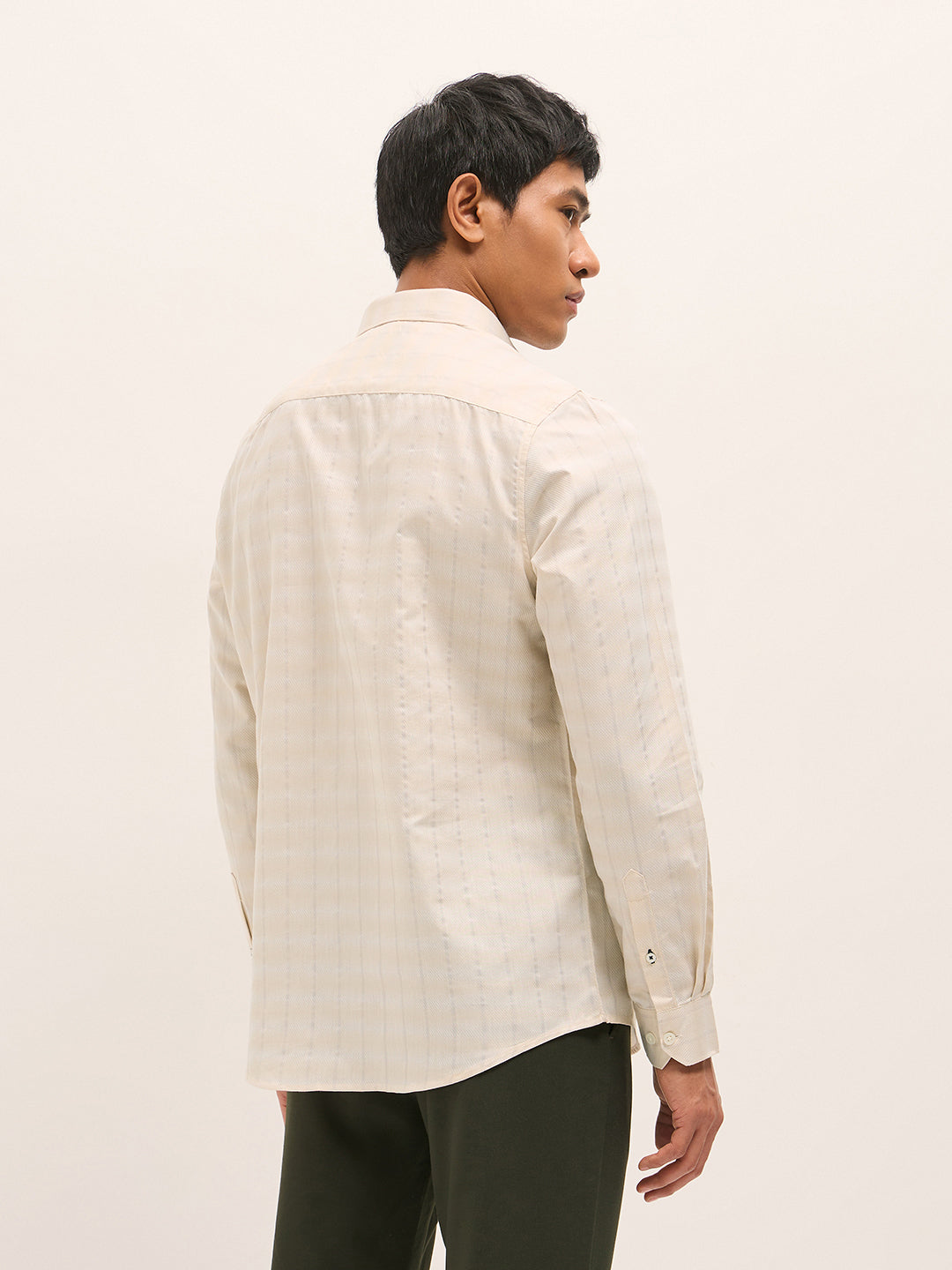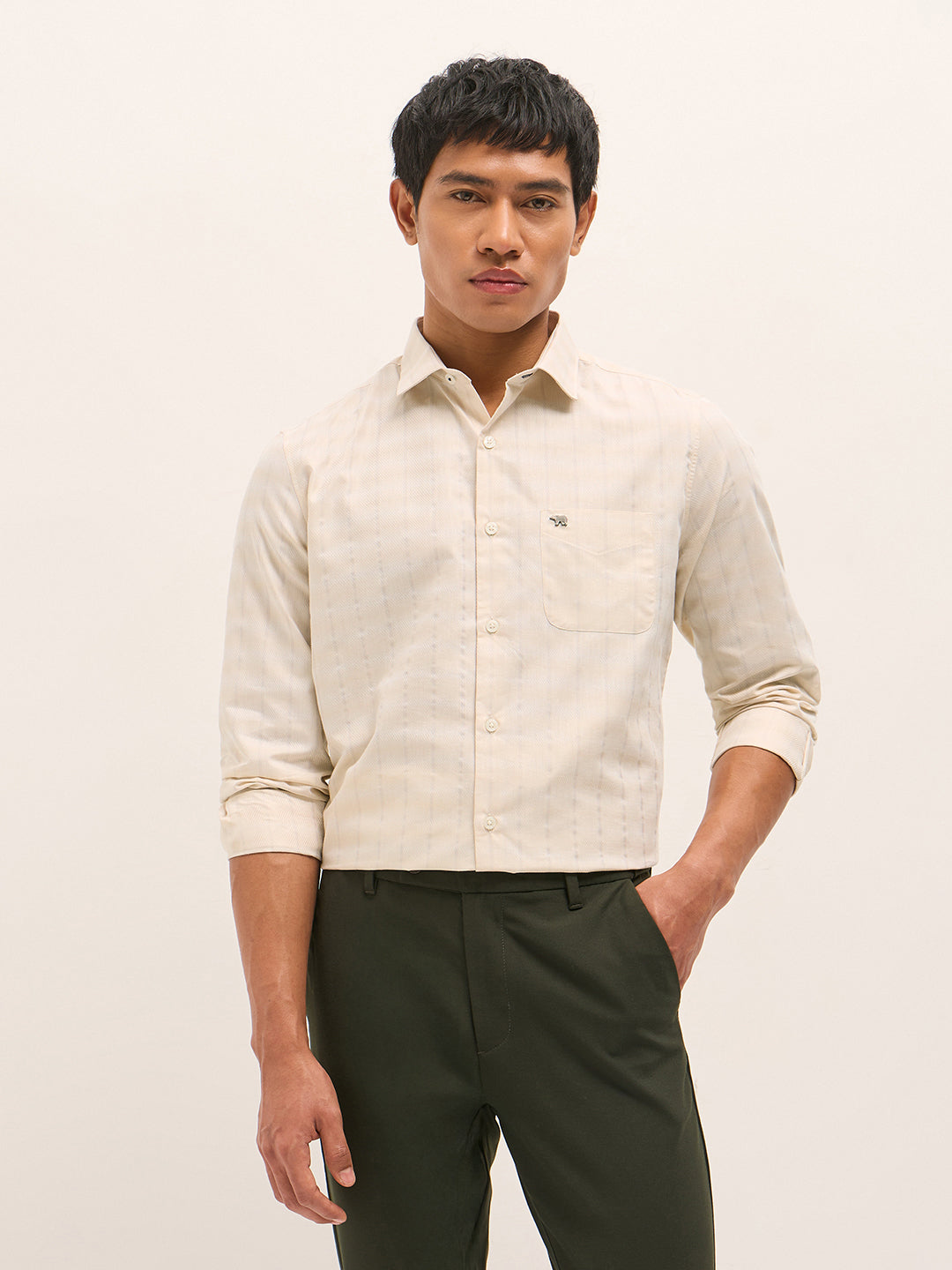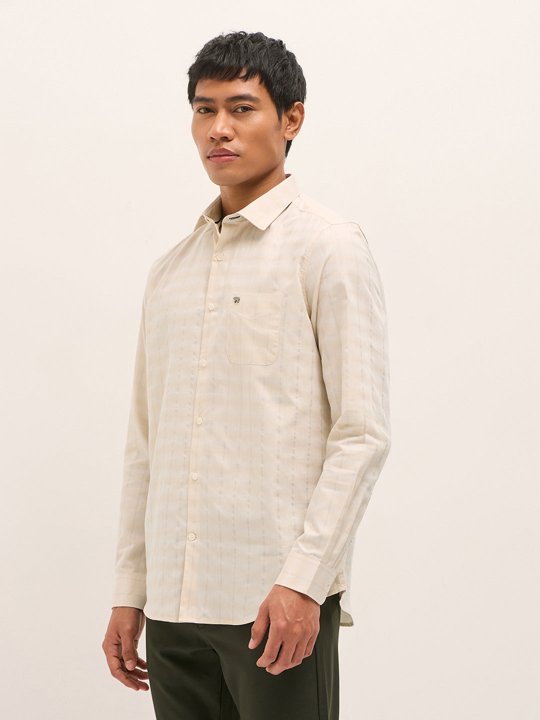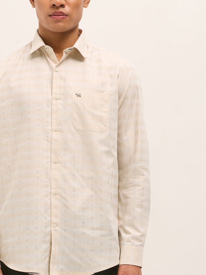Beige Woven Stripe Tailored Fit Formal Shirt