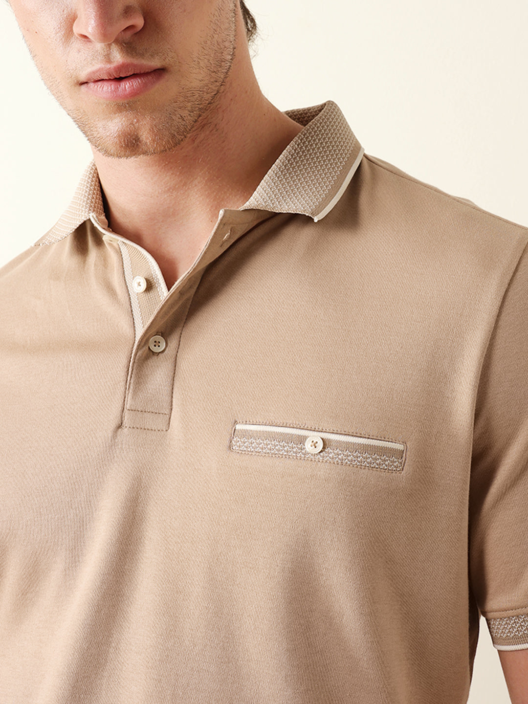 - Pattern: Solid Body with Textured Patterned Collar and Chest Pocket Detail