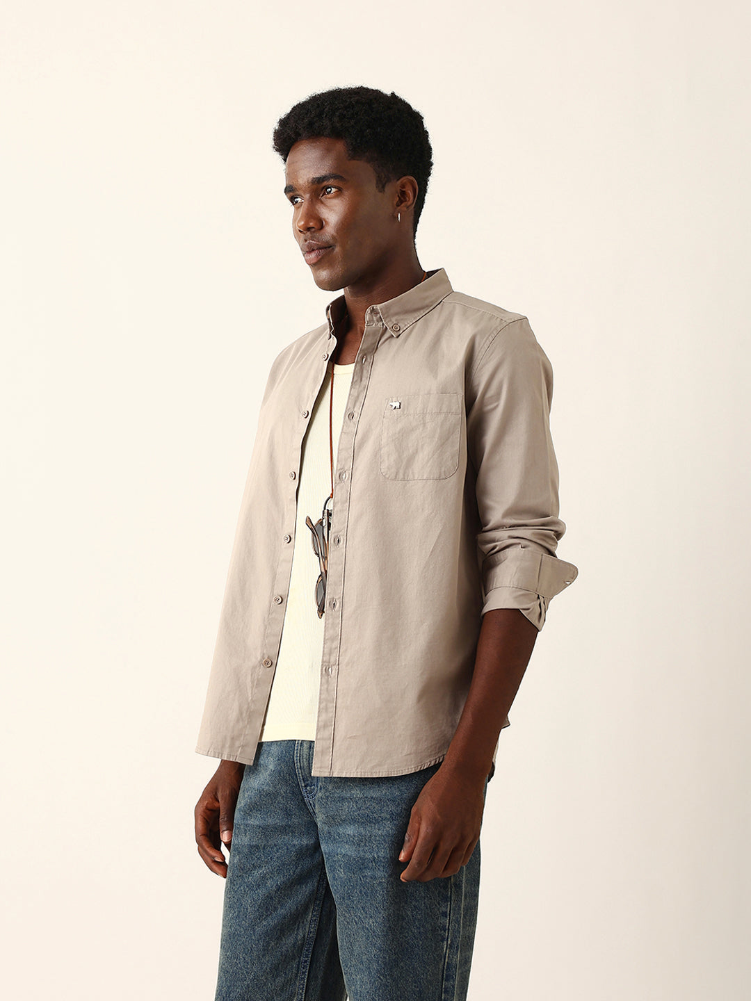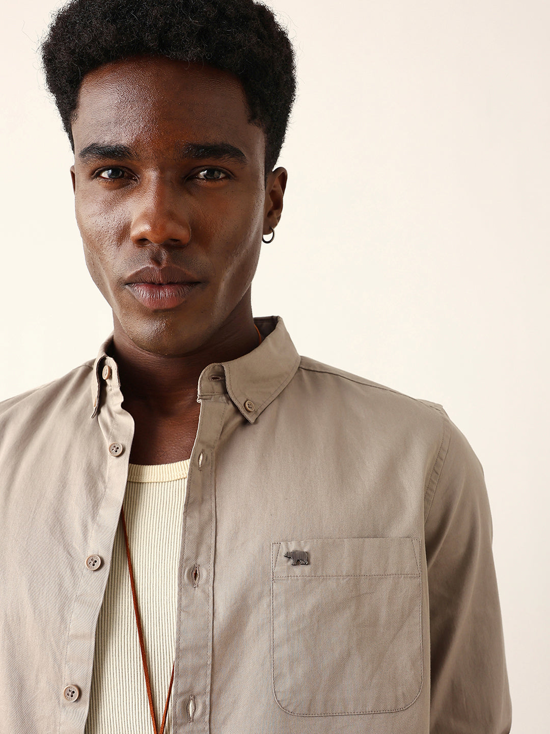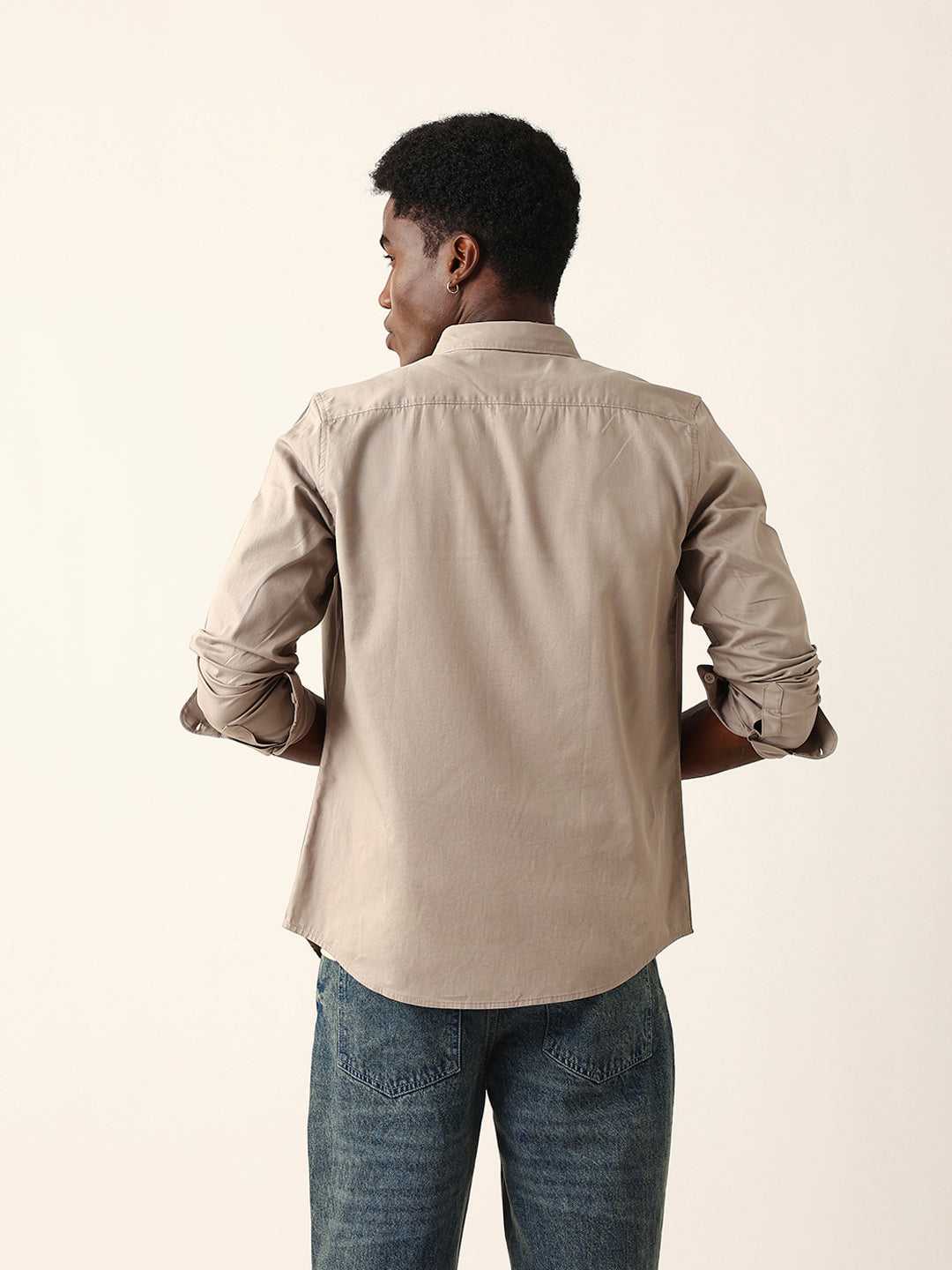Light Brown Cotton Solid Slim Fit Casual Shirt