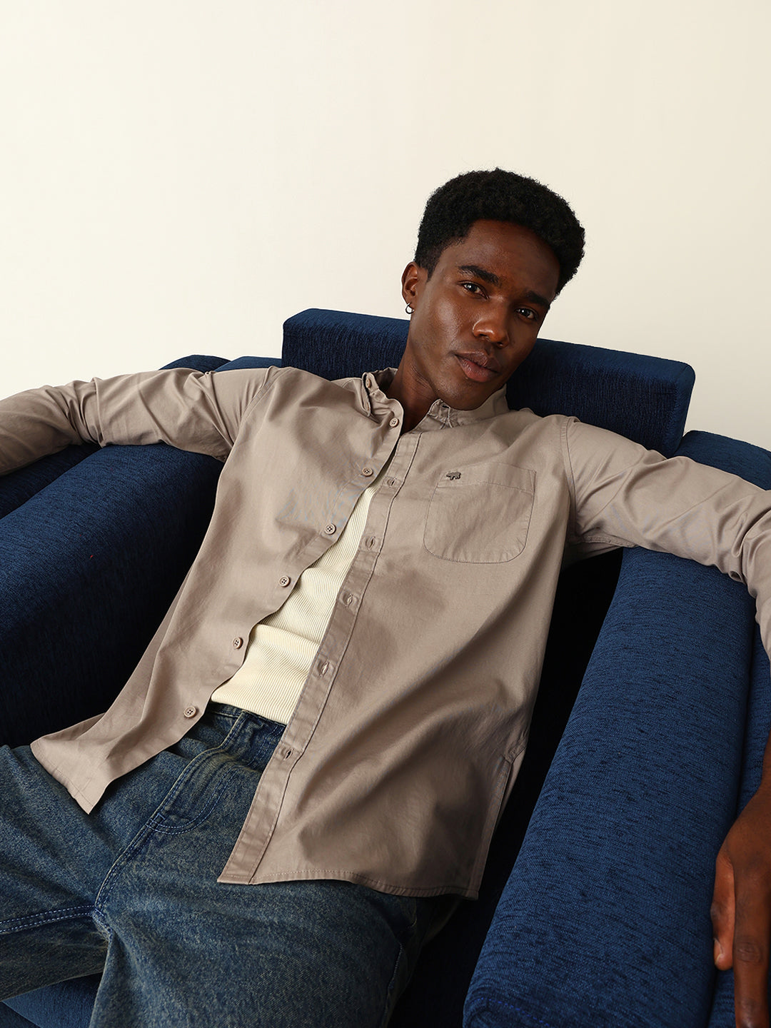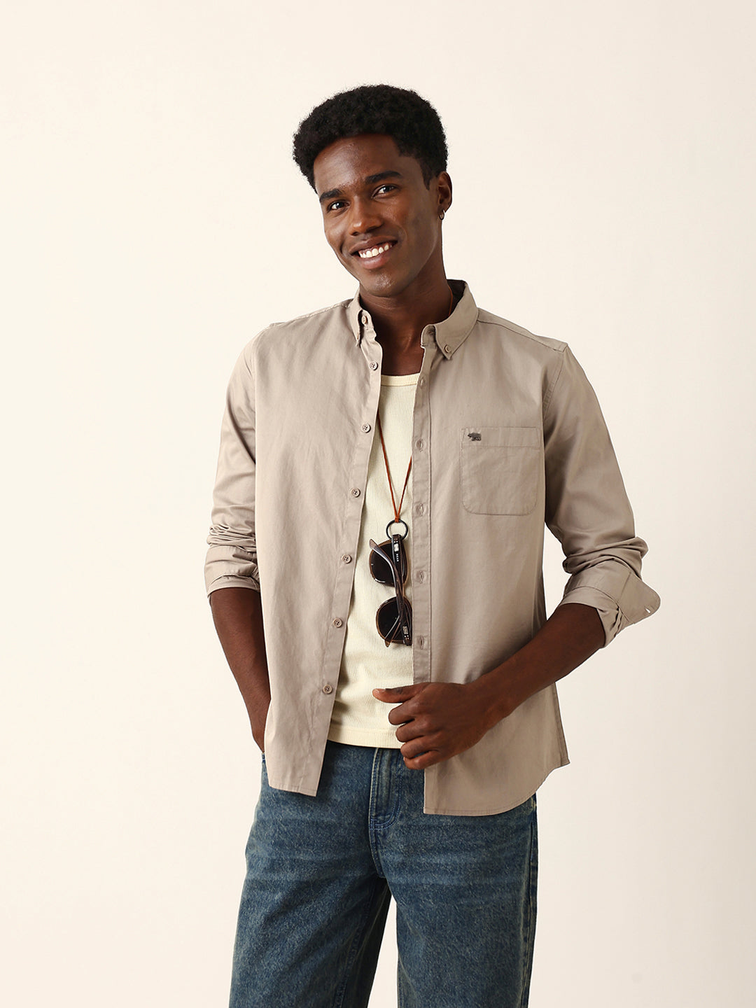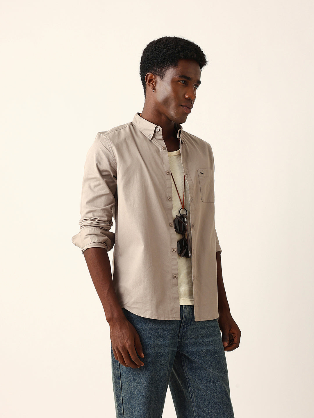 Light Brown Cotton Solid Slim Fit Casual Shirt