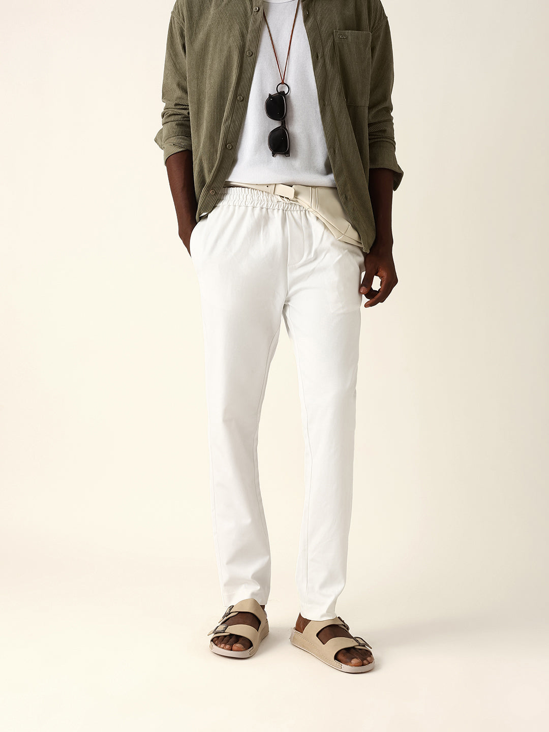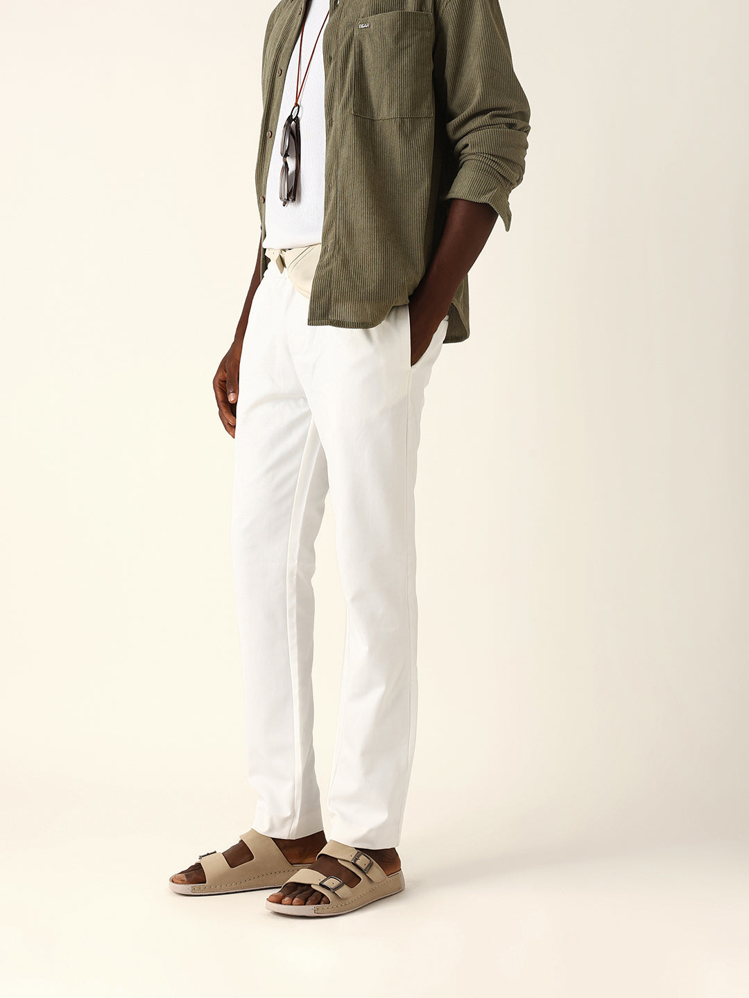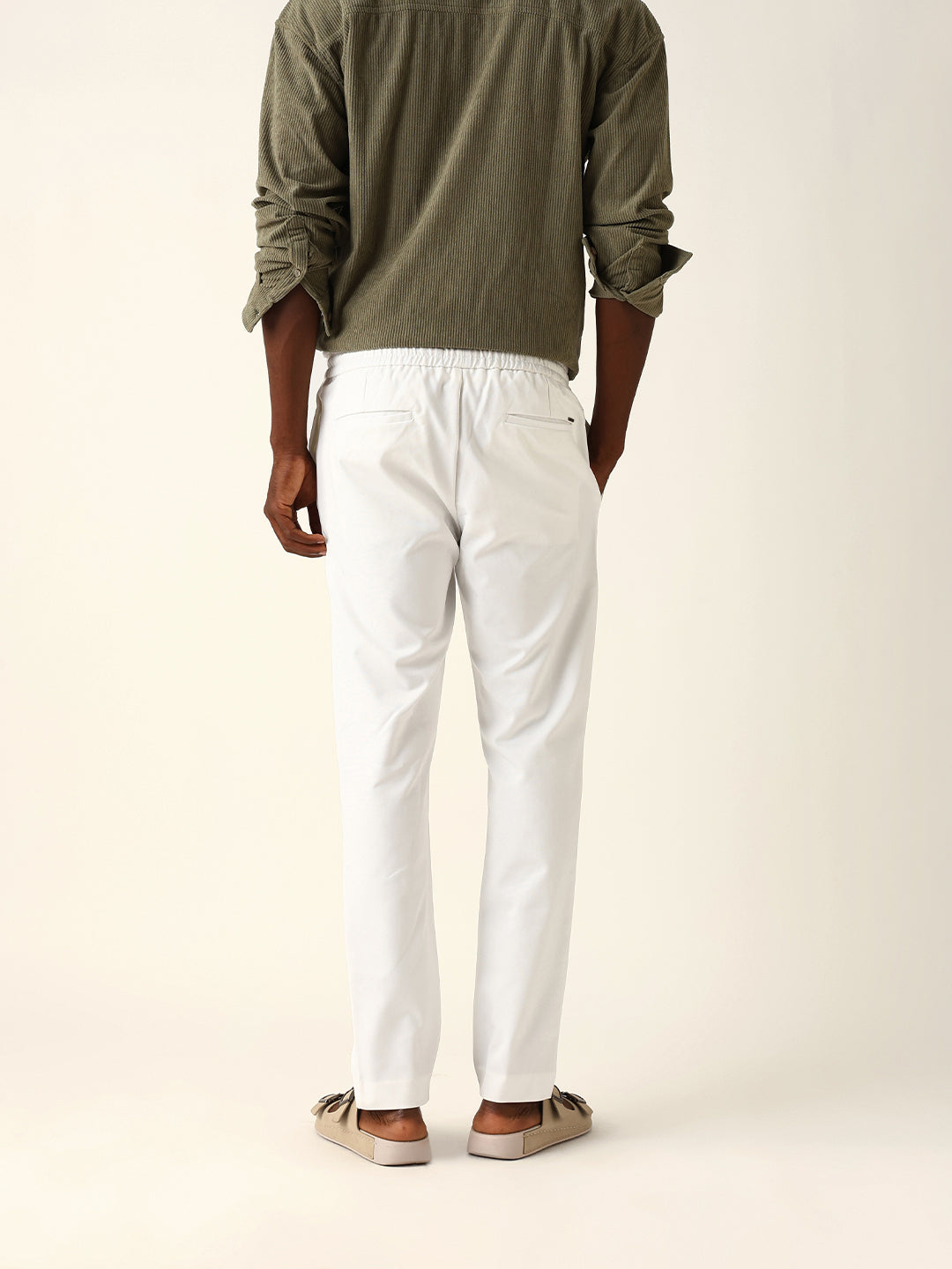 - Hemline: Tapered leg with clean cuffs