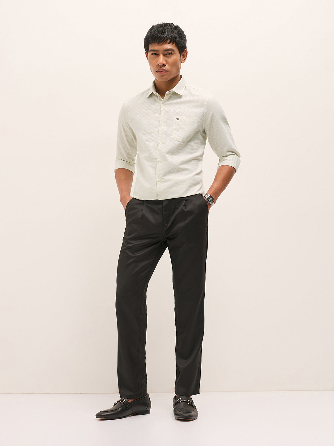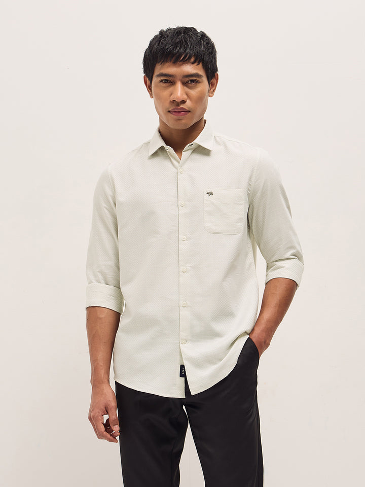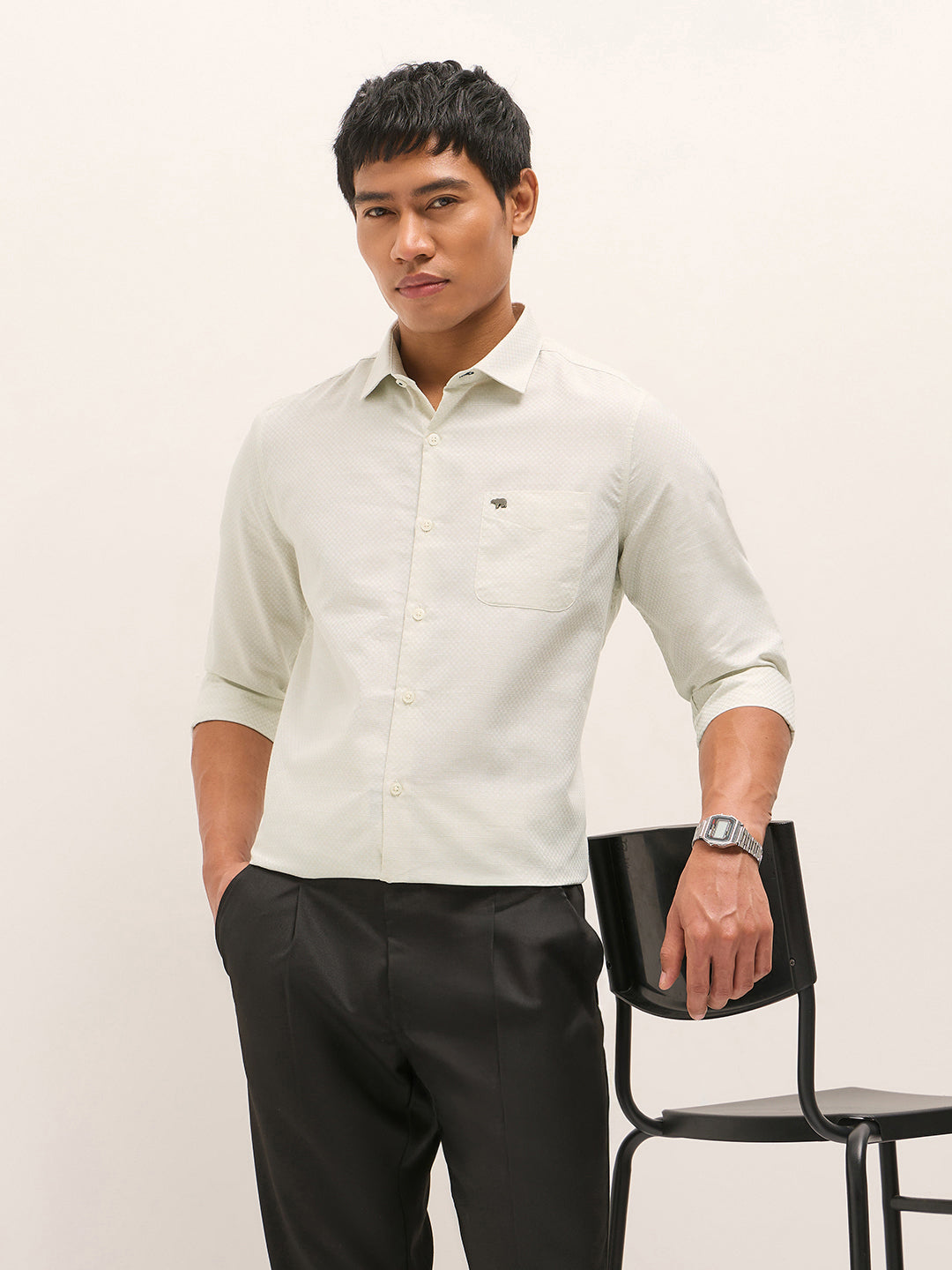 Shop Light Green Woven Cotton Blend Tailored Fit Formal Shirt Online
