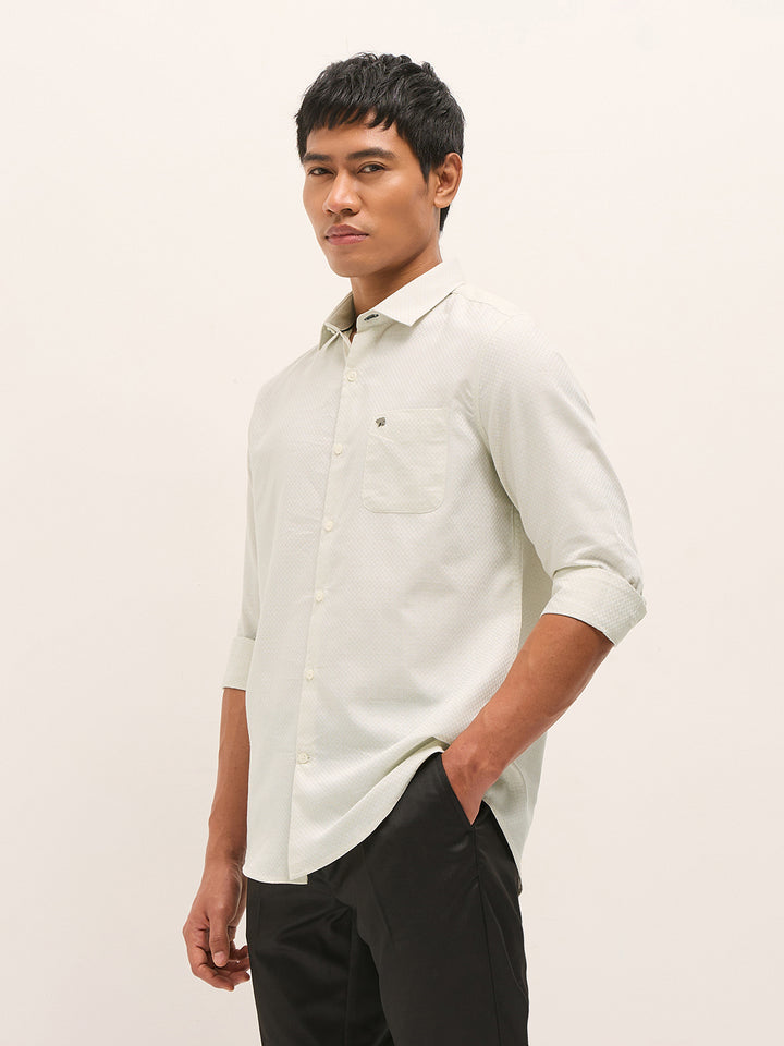 Light Green Woven Cotton Blend Tailored Fit Formal Shirt