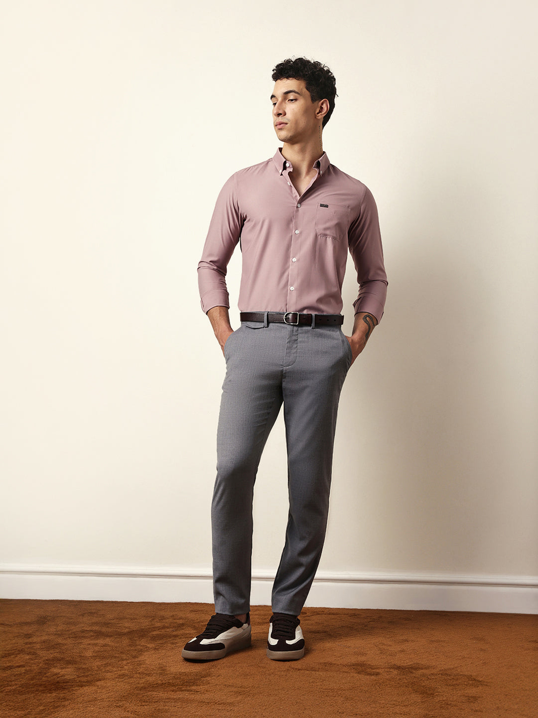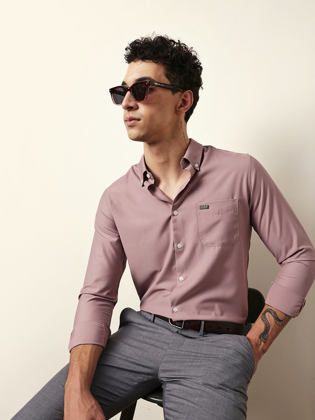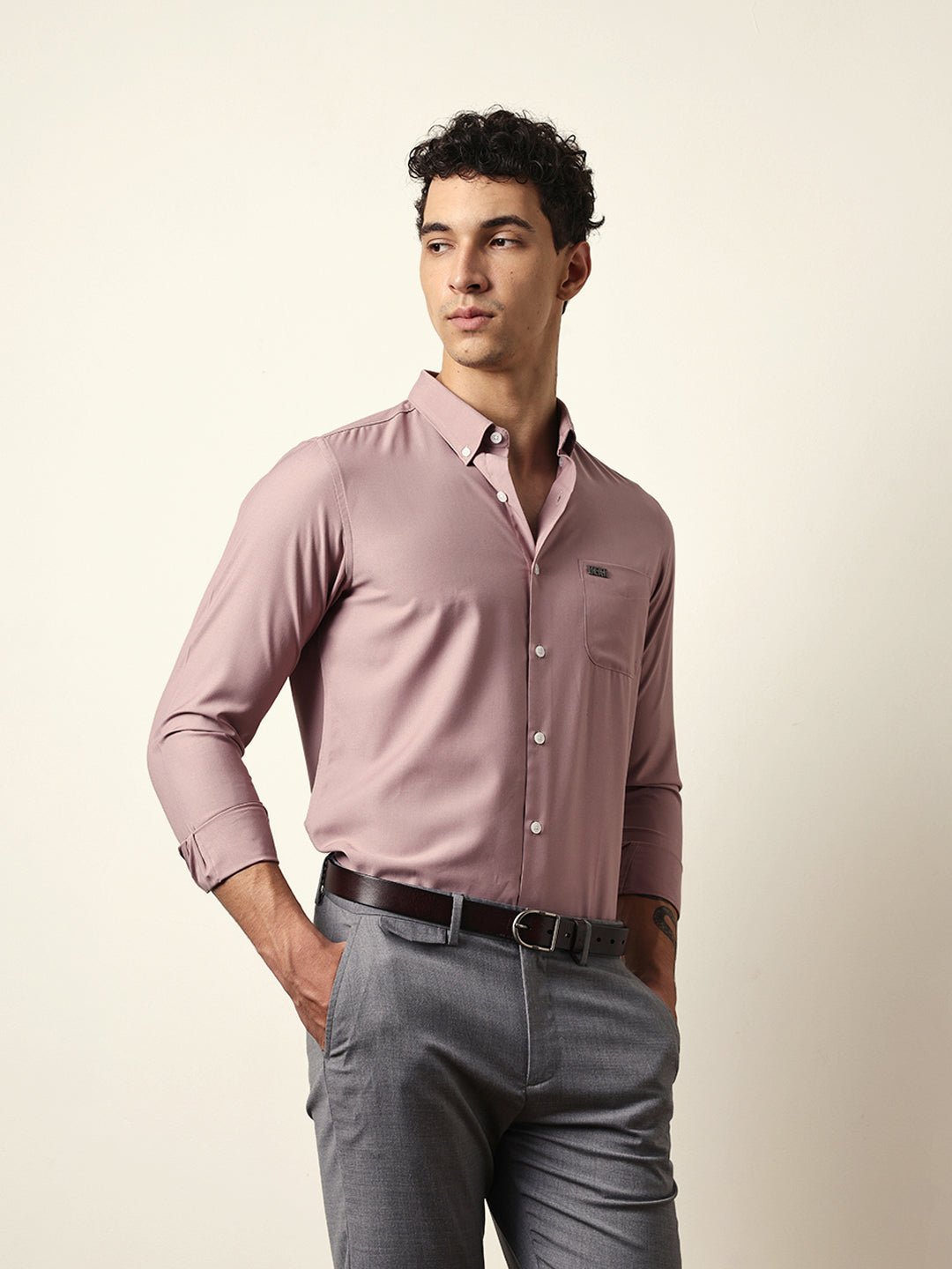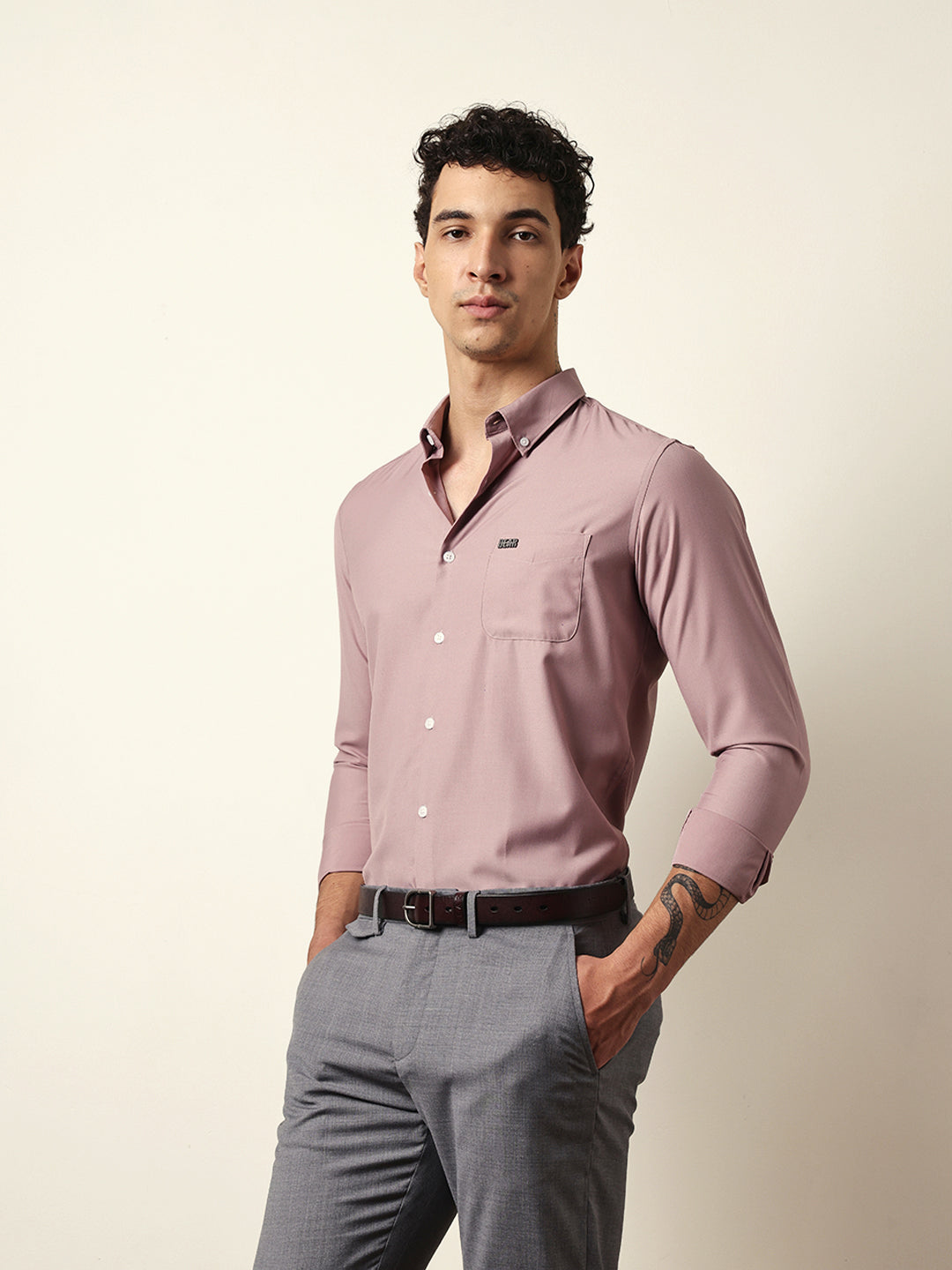 Shop Pink Solid Slim Fit Casual Shirt with a Classic Semi-Formal Look Online.