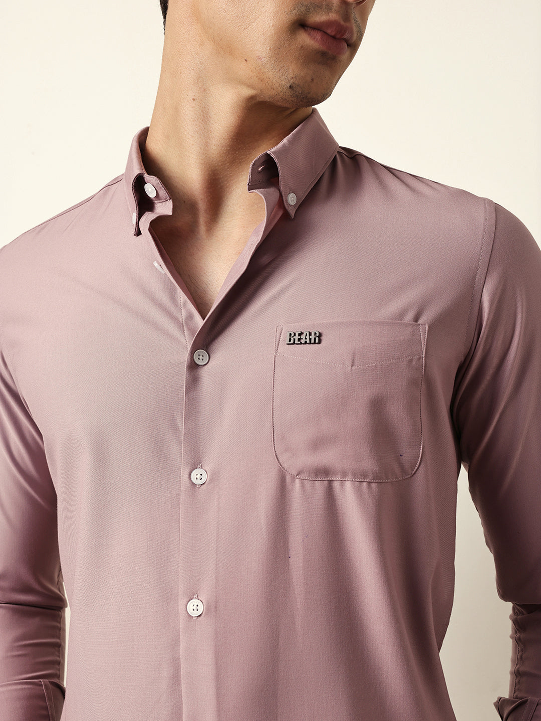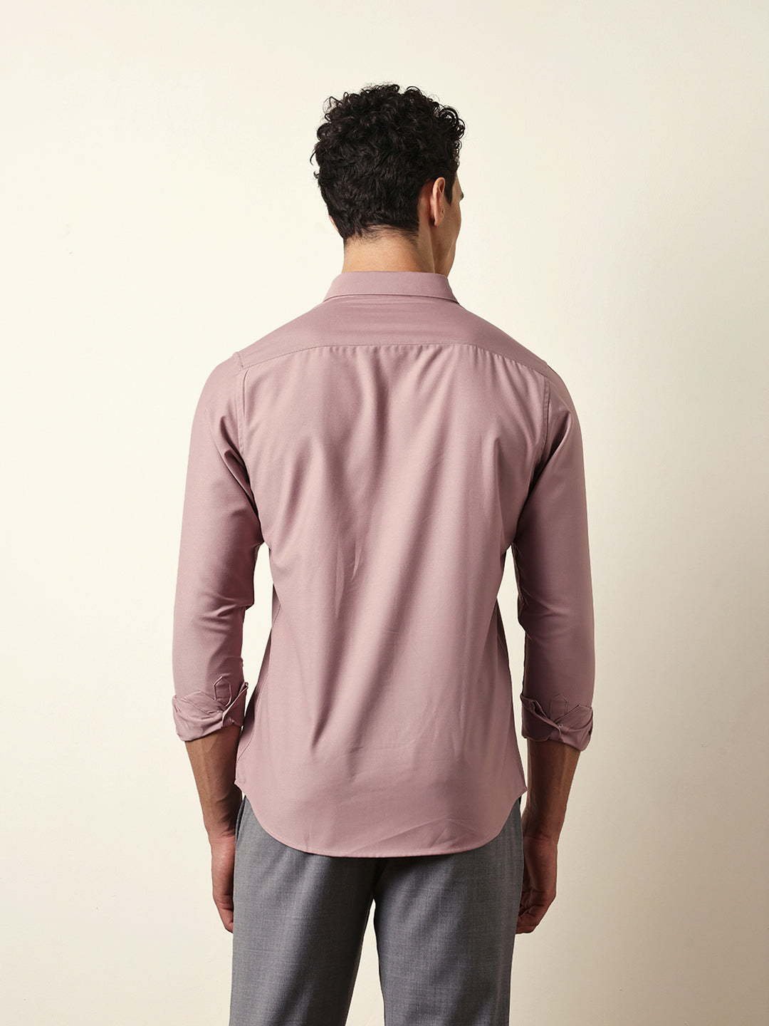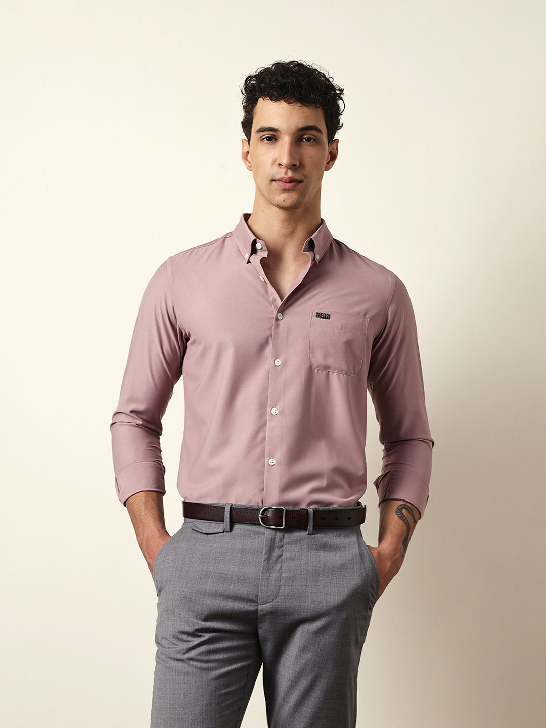 Pink Solid Slim Fit Casual Shirt with a Classic Semi-Formal Look