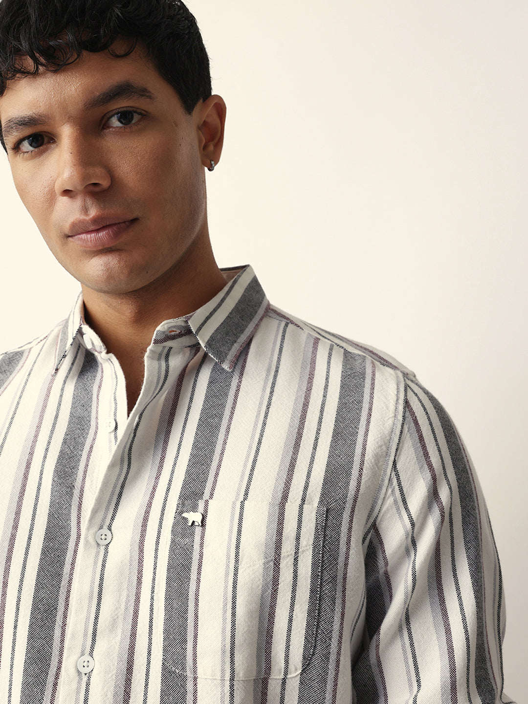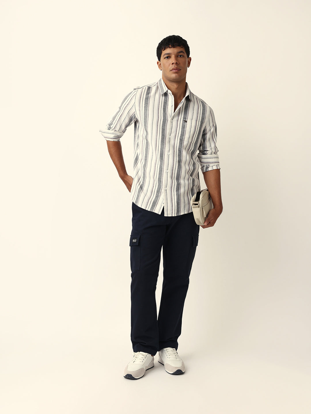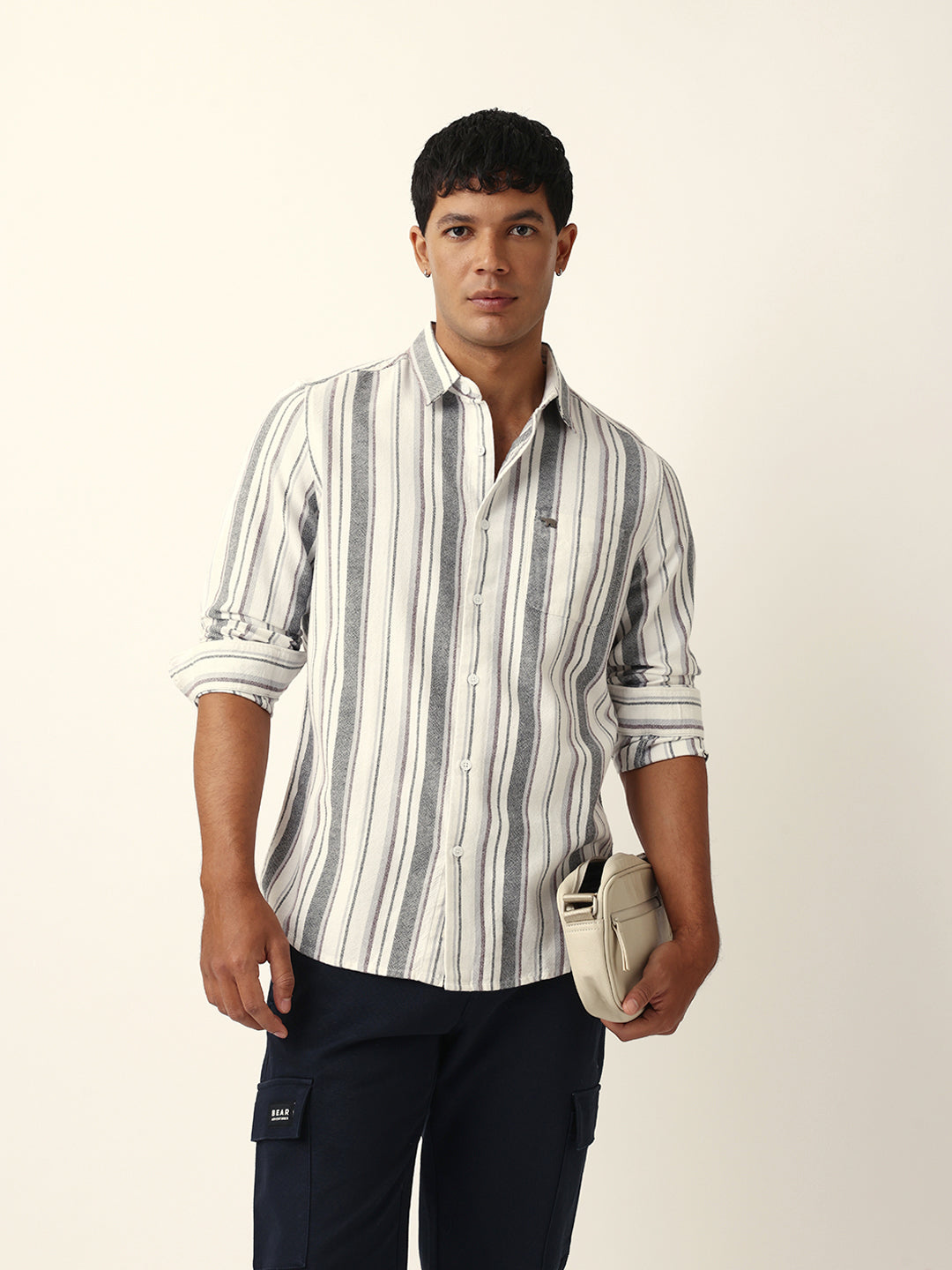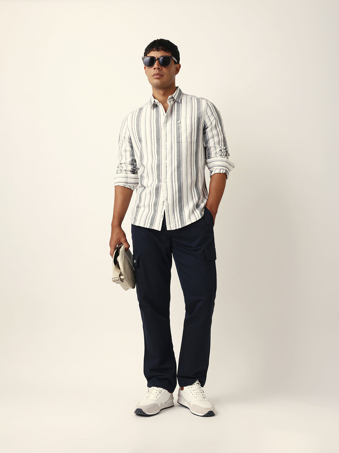 Shop White Vertical Woven Stripe Slim Fit Casual Shirt Online.