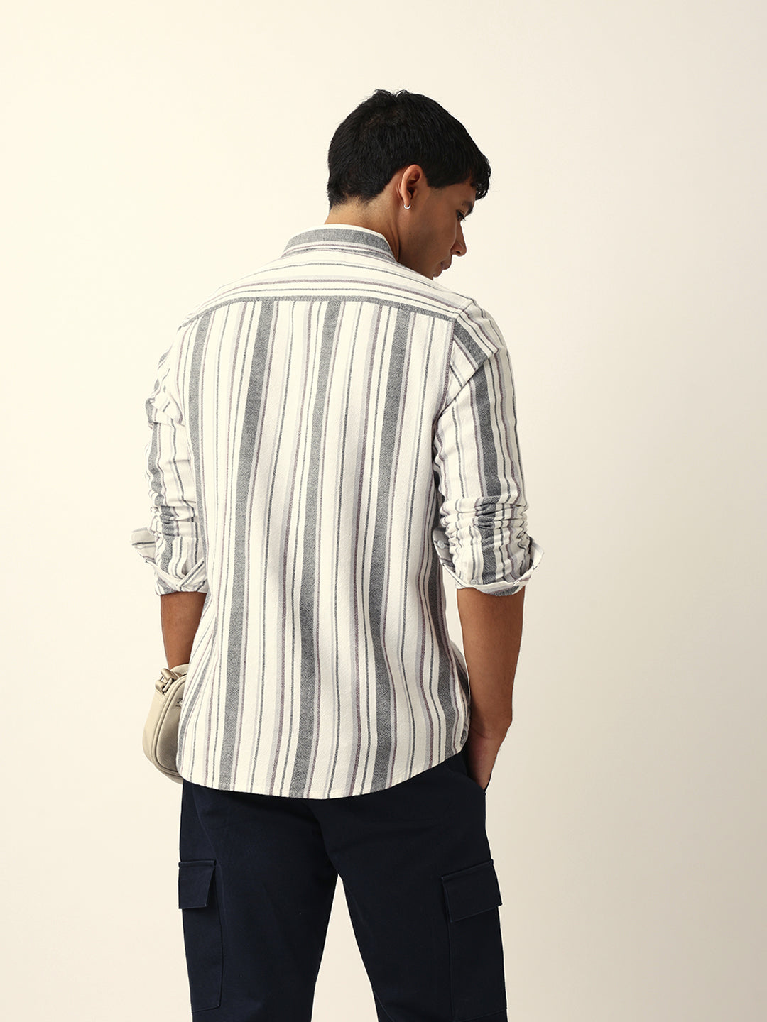 White Vertical Woven Stripe Slim Fit Casual Shirt