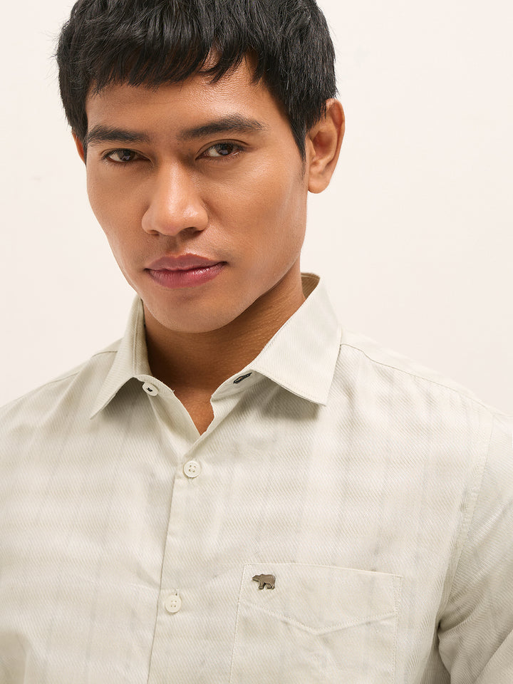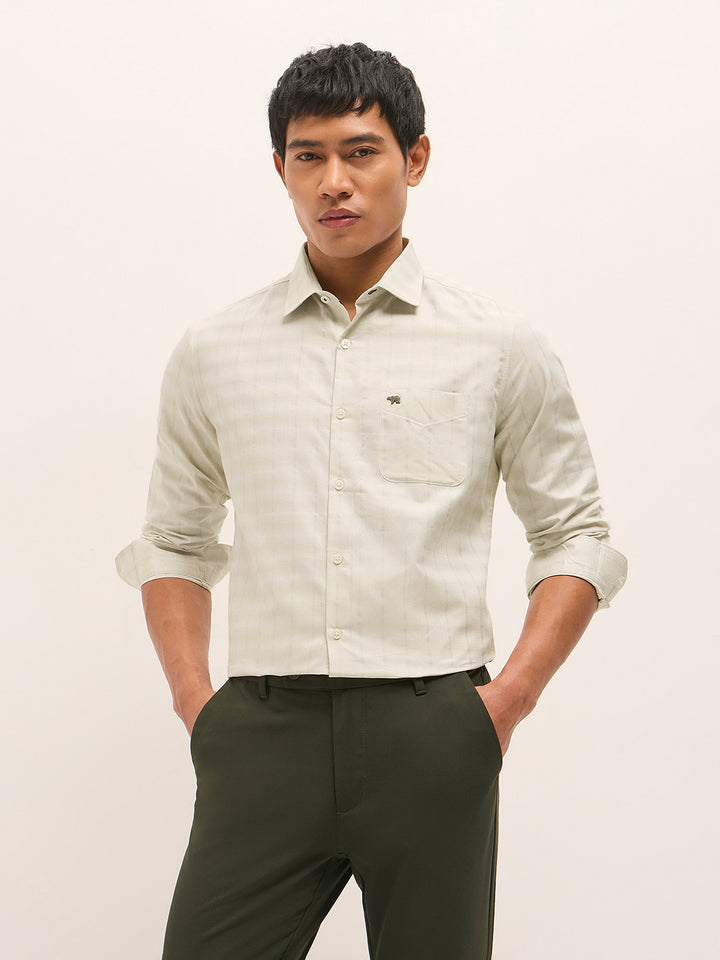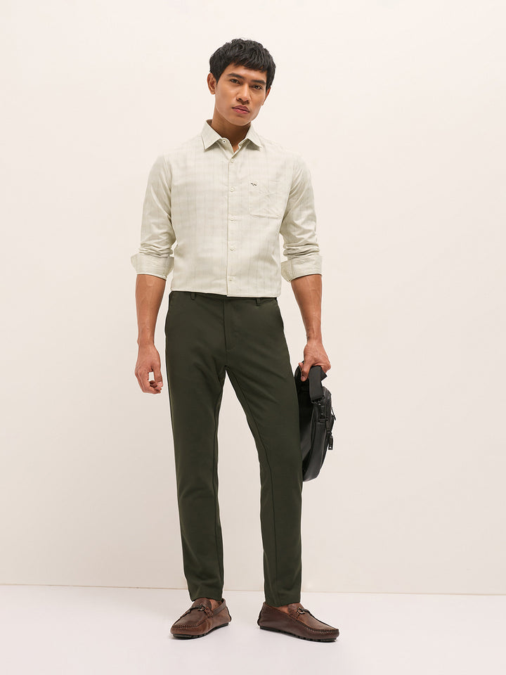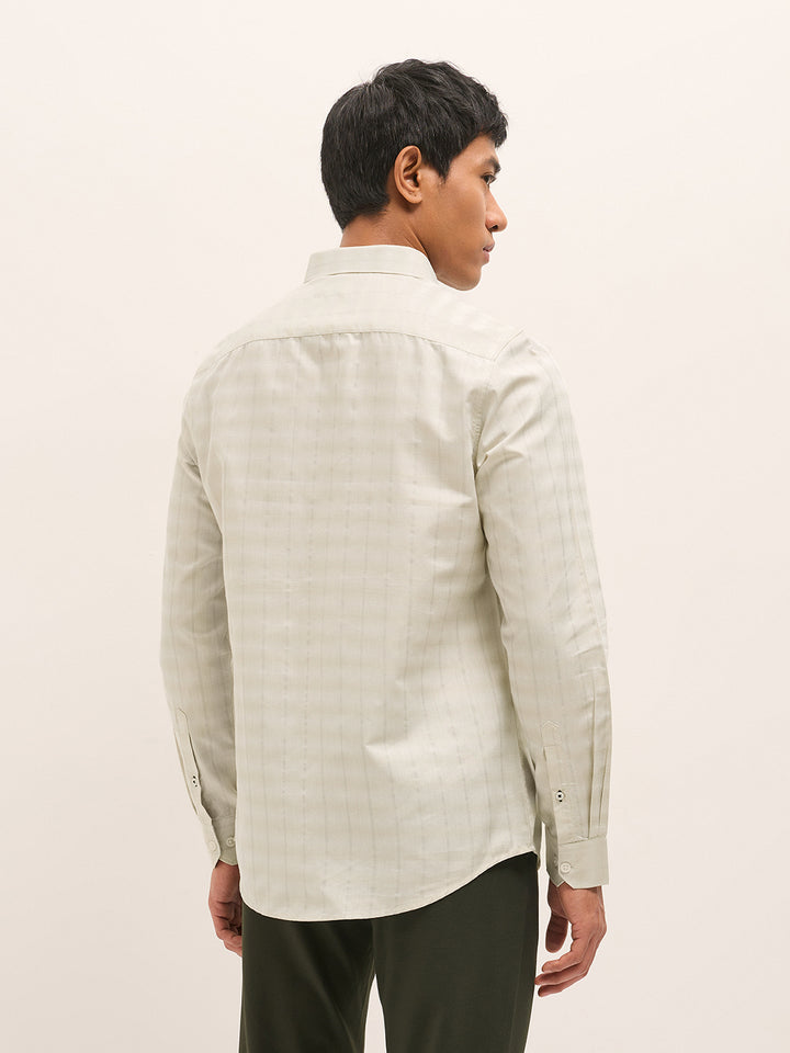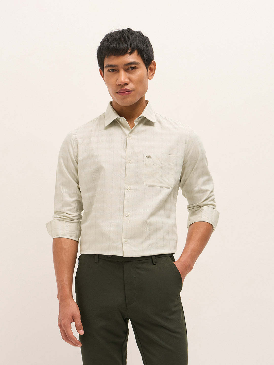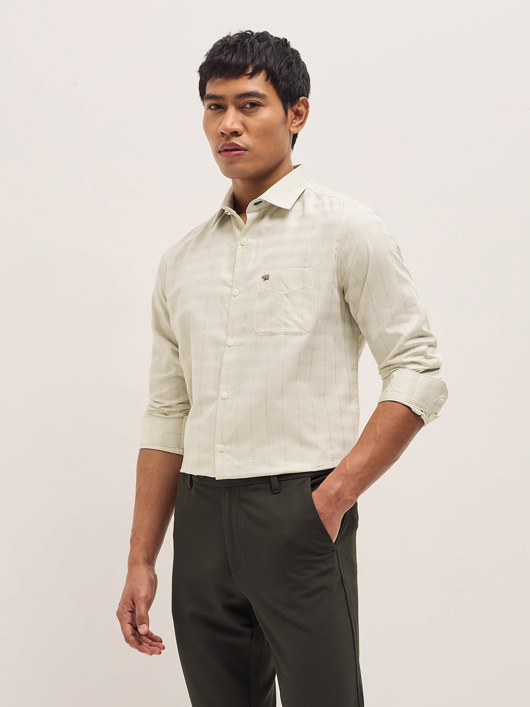 Light Green Woven Stripe Tailored Fit Formal Shirt
