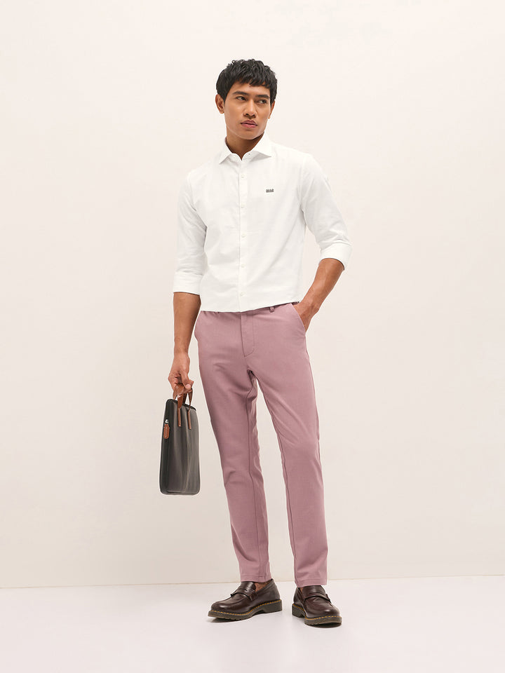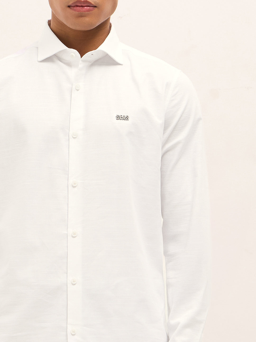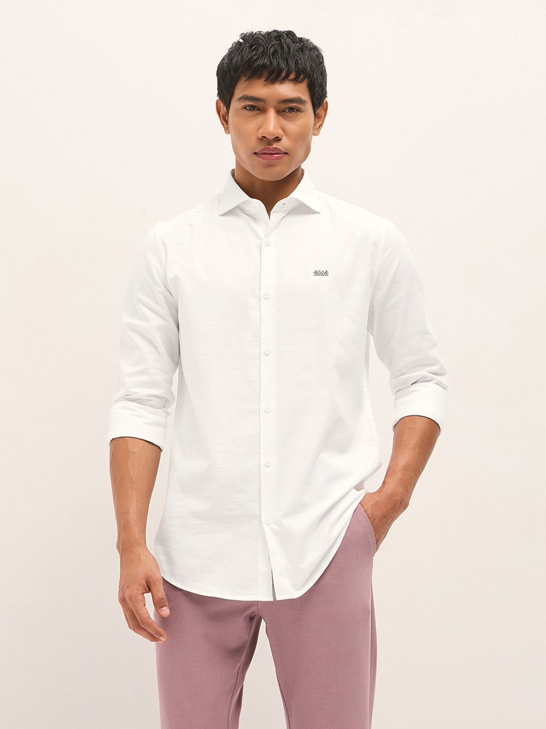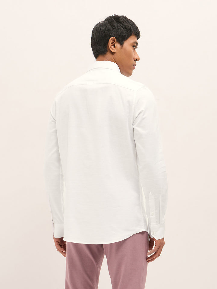 White Solid Tailored Fit Cotton Formal Shirt with Metallic Logo Branding