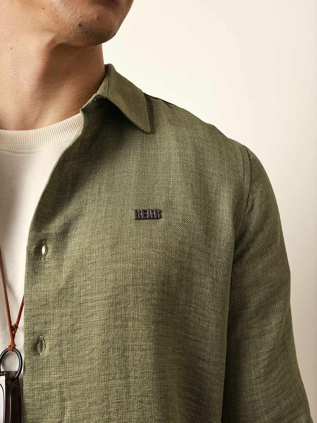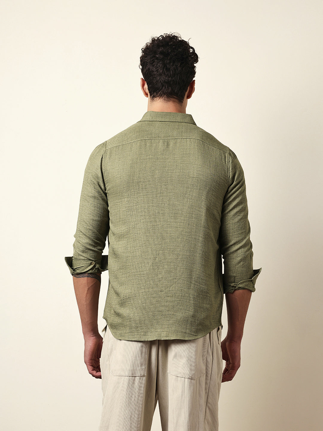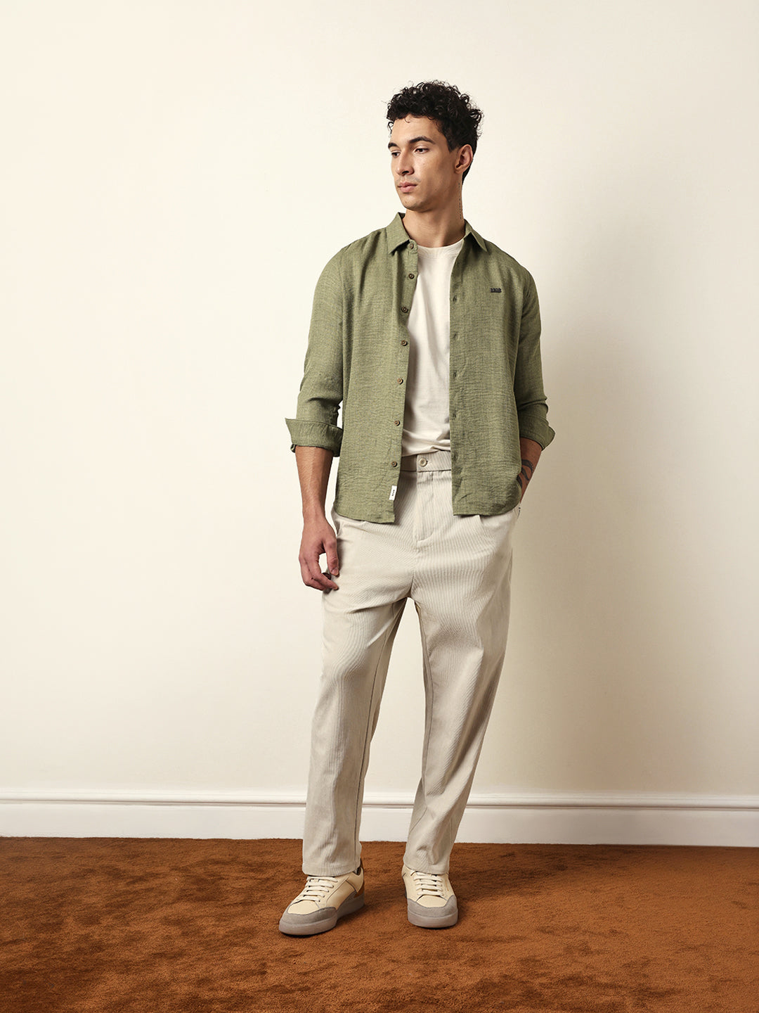 Shop Green Woven Textured Slim Fit Casual Shirt Online.