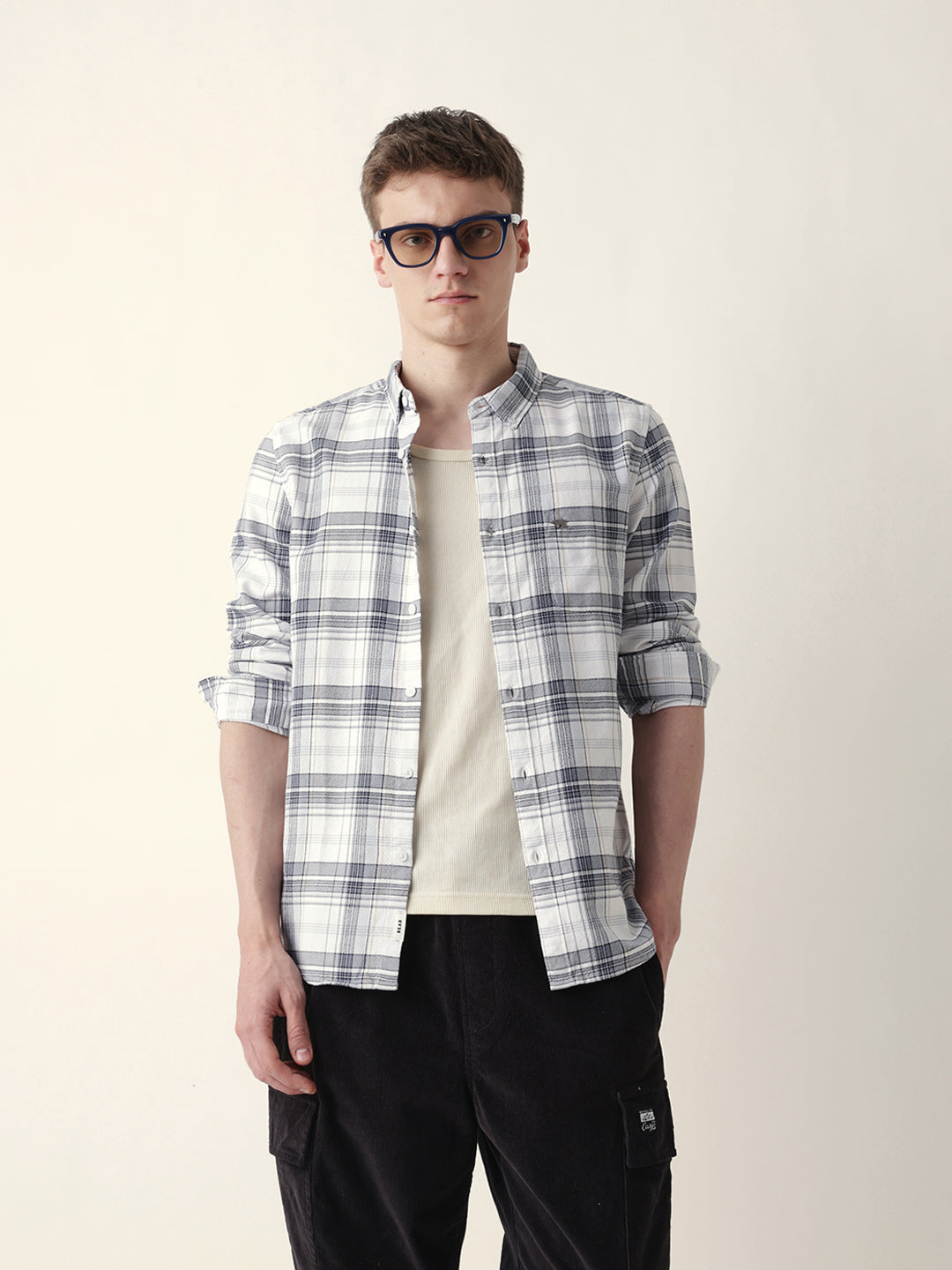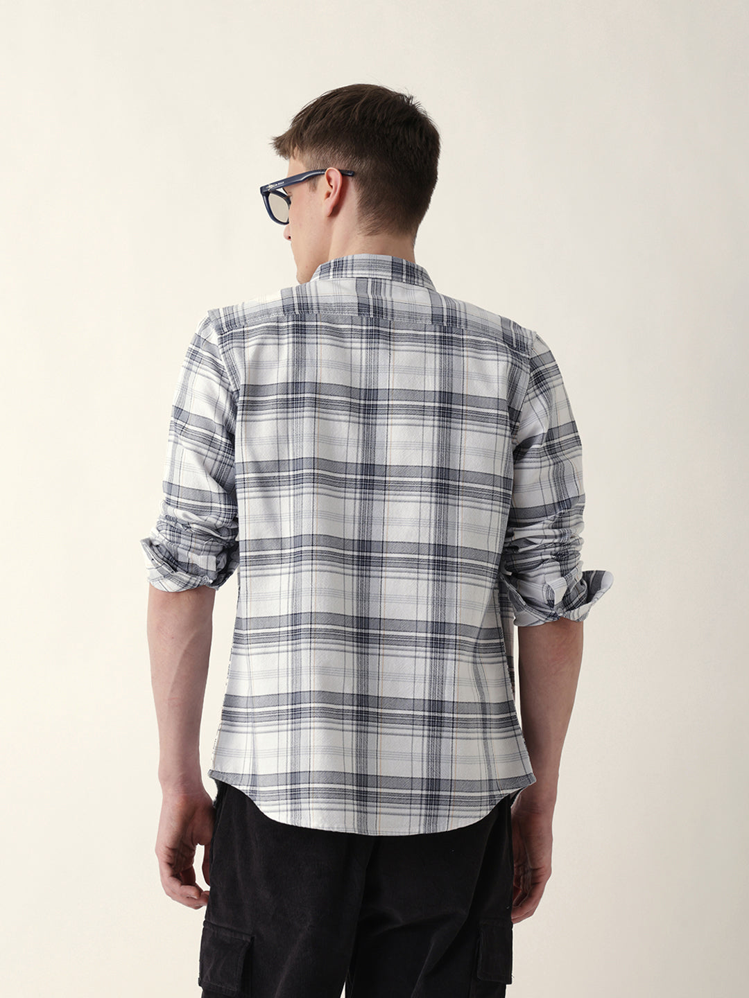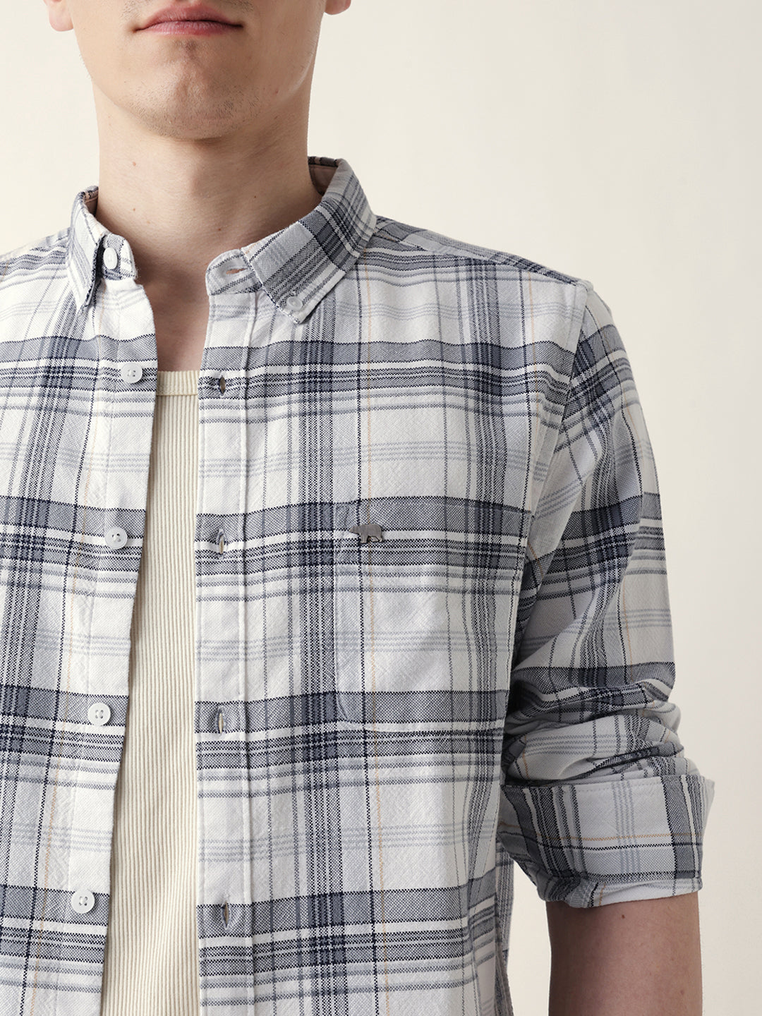 Shop White Woven Checked Slim Fit Casual Shirt Online.