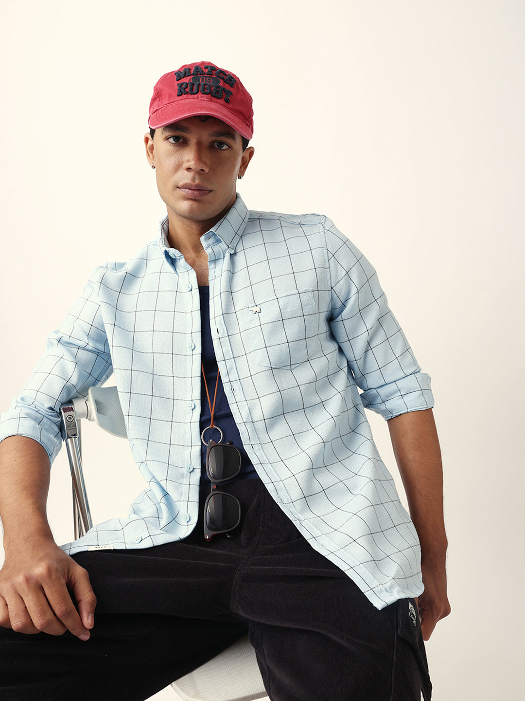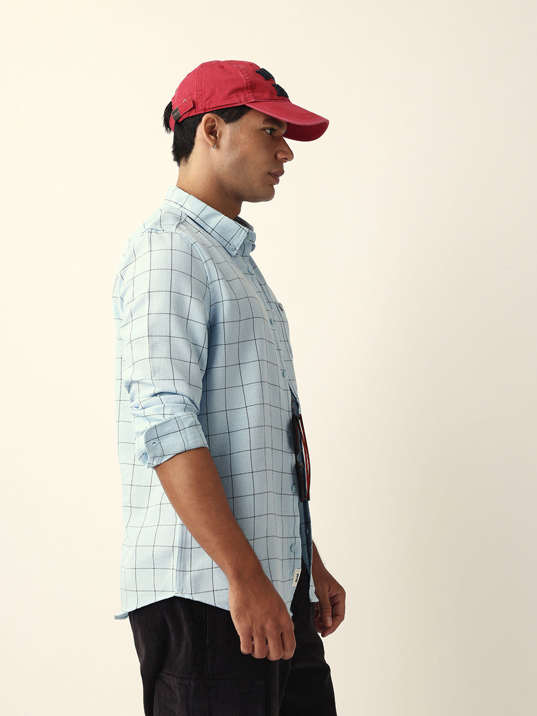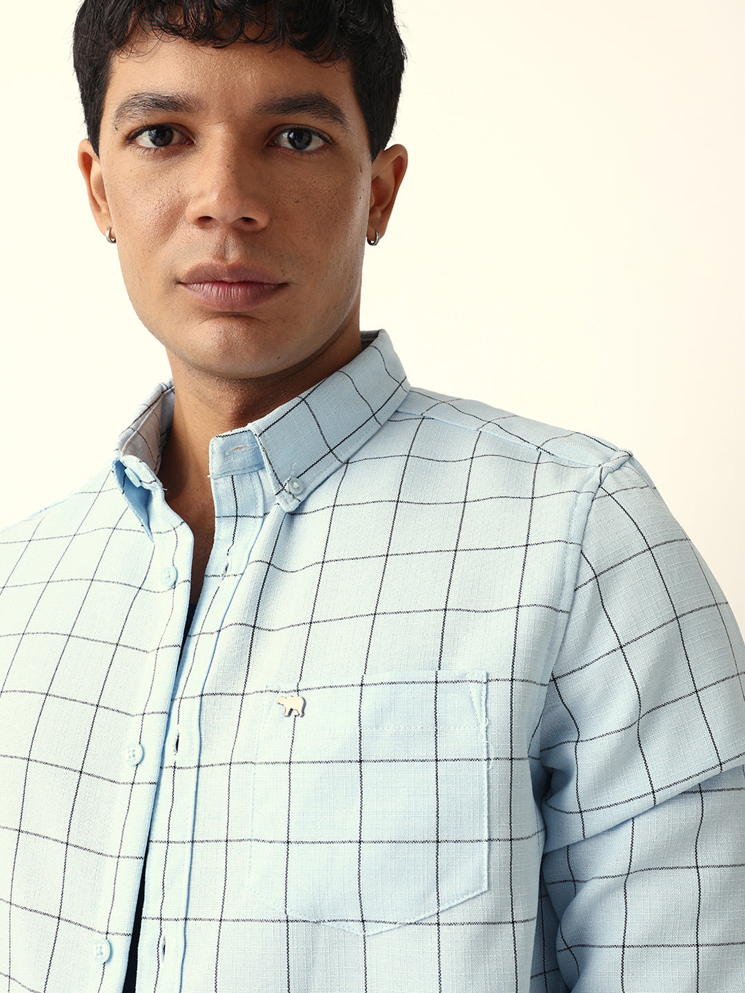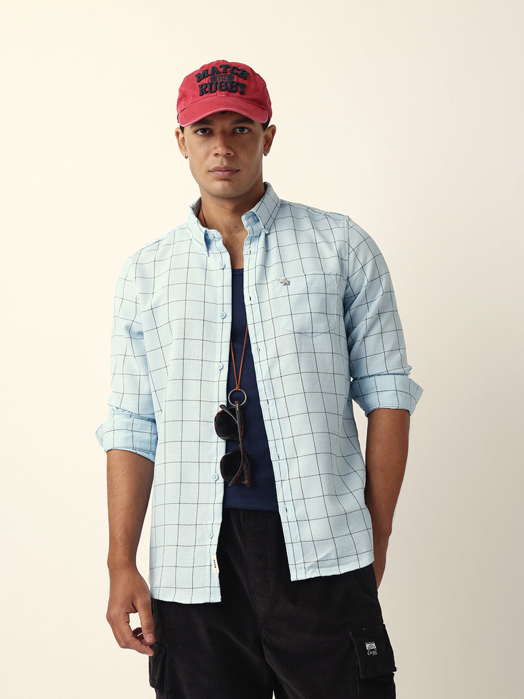 Shop Light Blue Block Checks Slim Fit Casual Shirt Online.