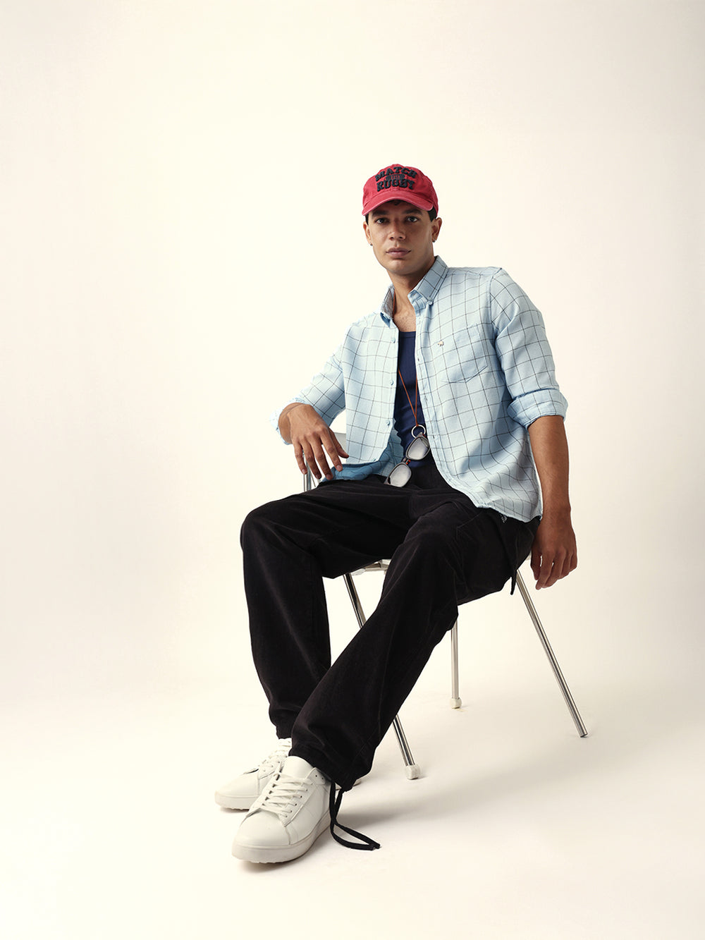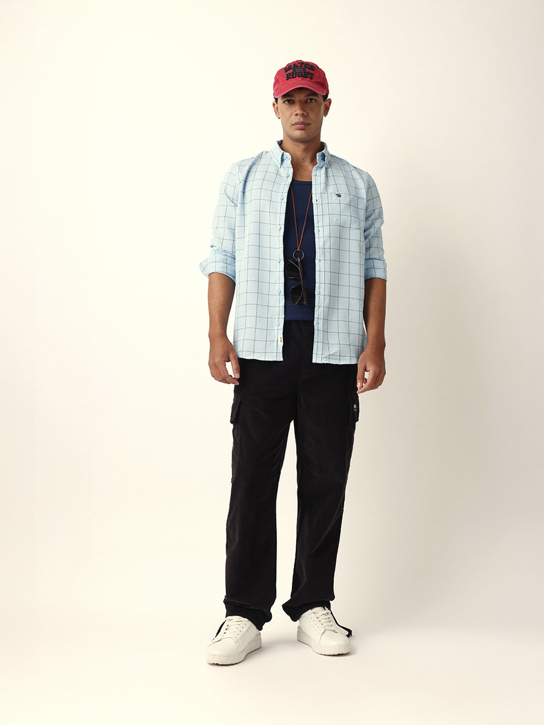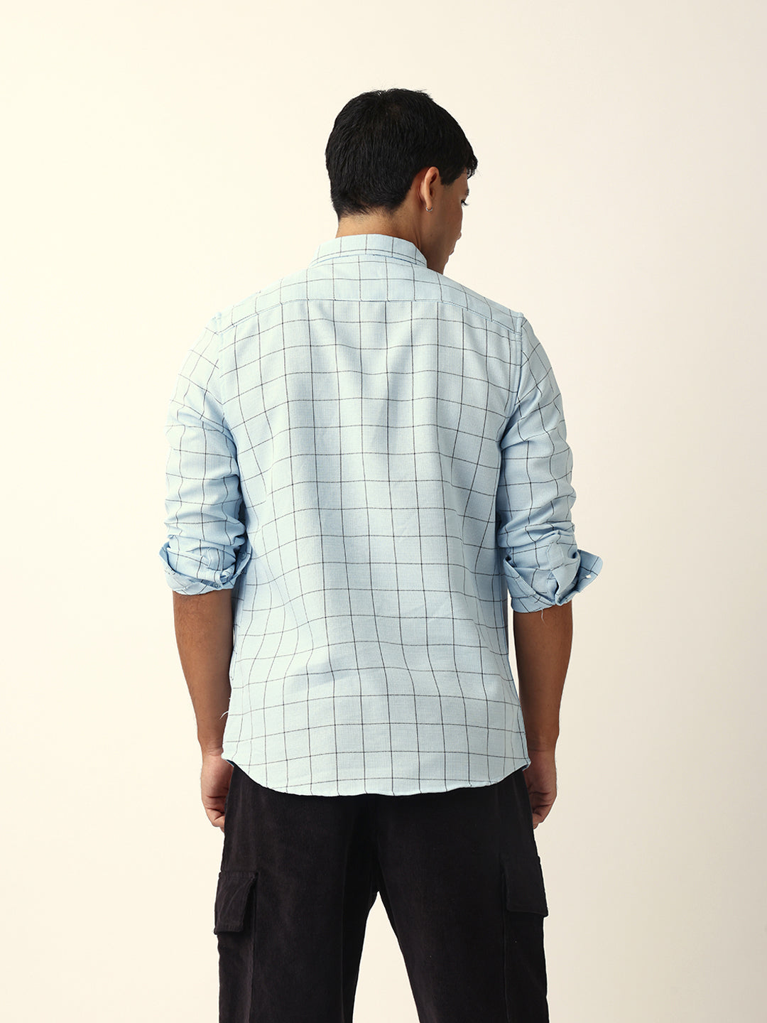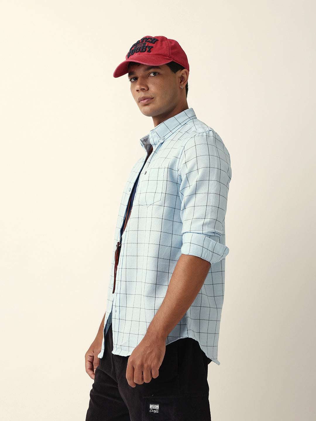 Shop Light Blue Block Checks Slim Fit Casual Shirt Online.
