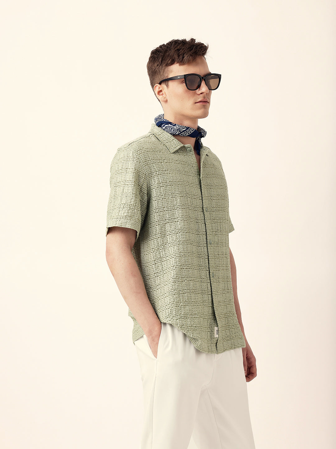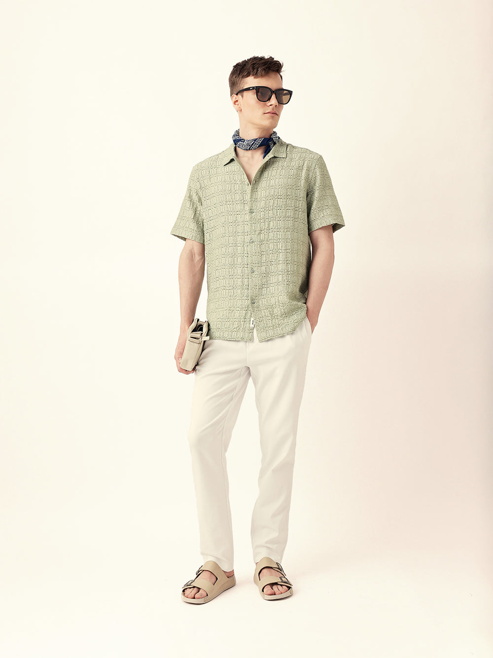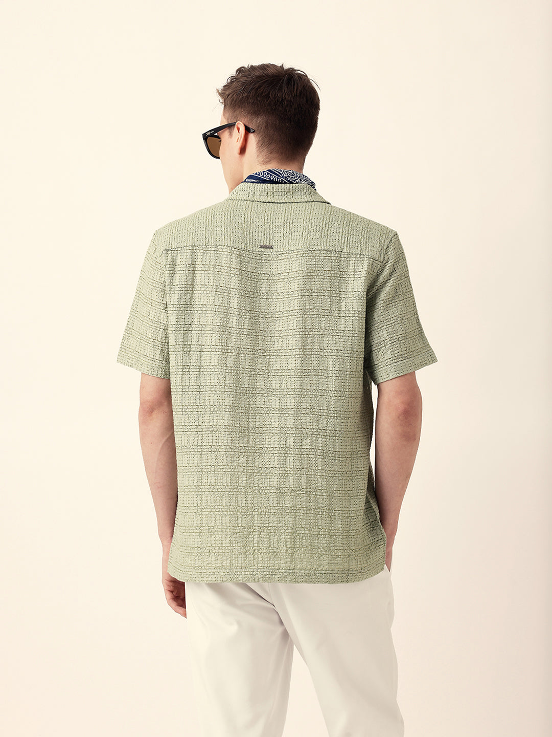 Light Green Textured Geometric Relaxed Fit Casual Half Sleeve Shirt