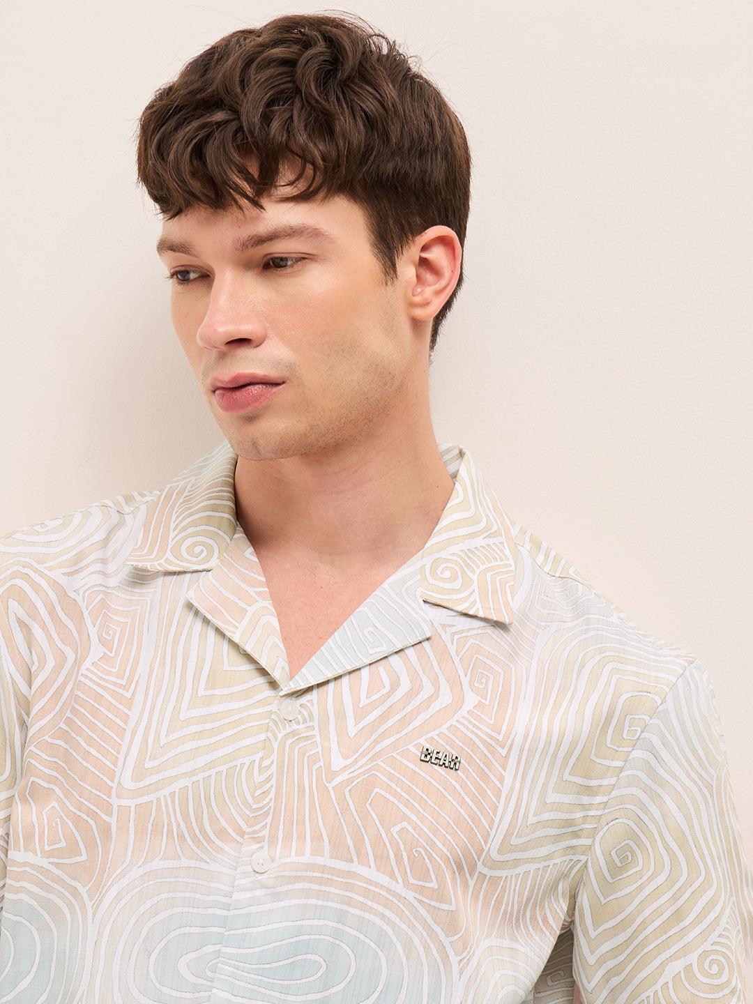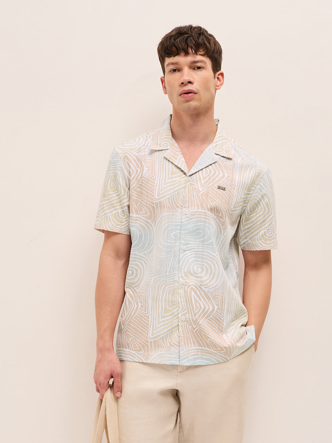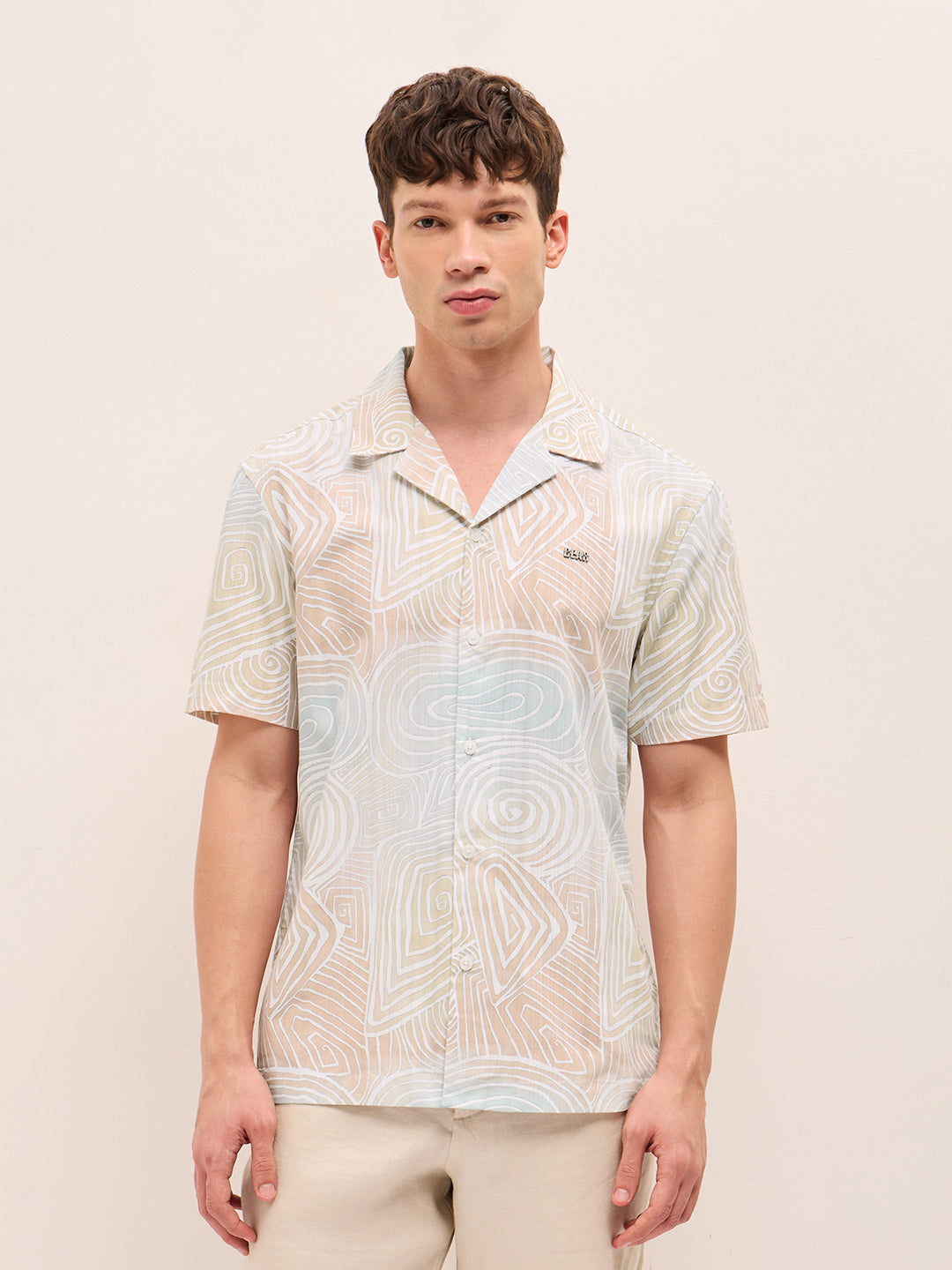 Shop Multicolor Geometric Abstract Print Relaxed Fit Cuban Collar Shirt Online.