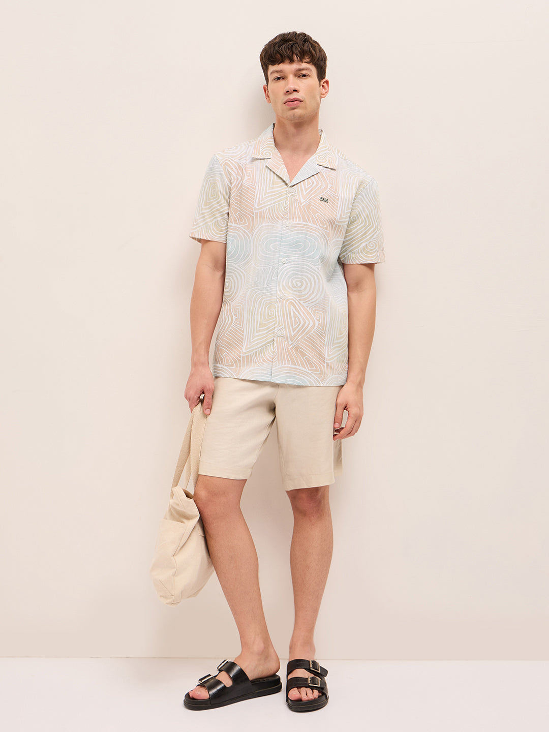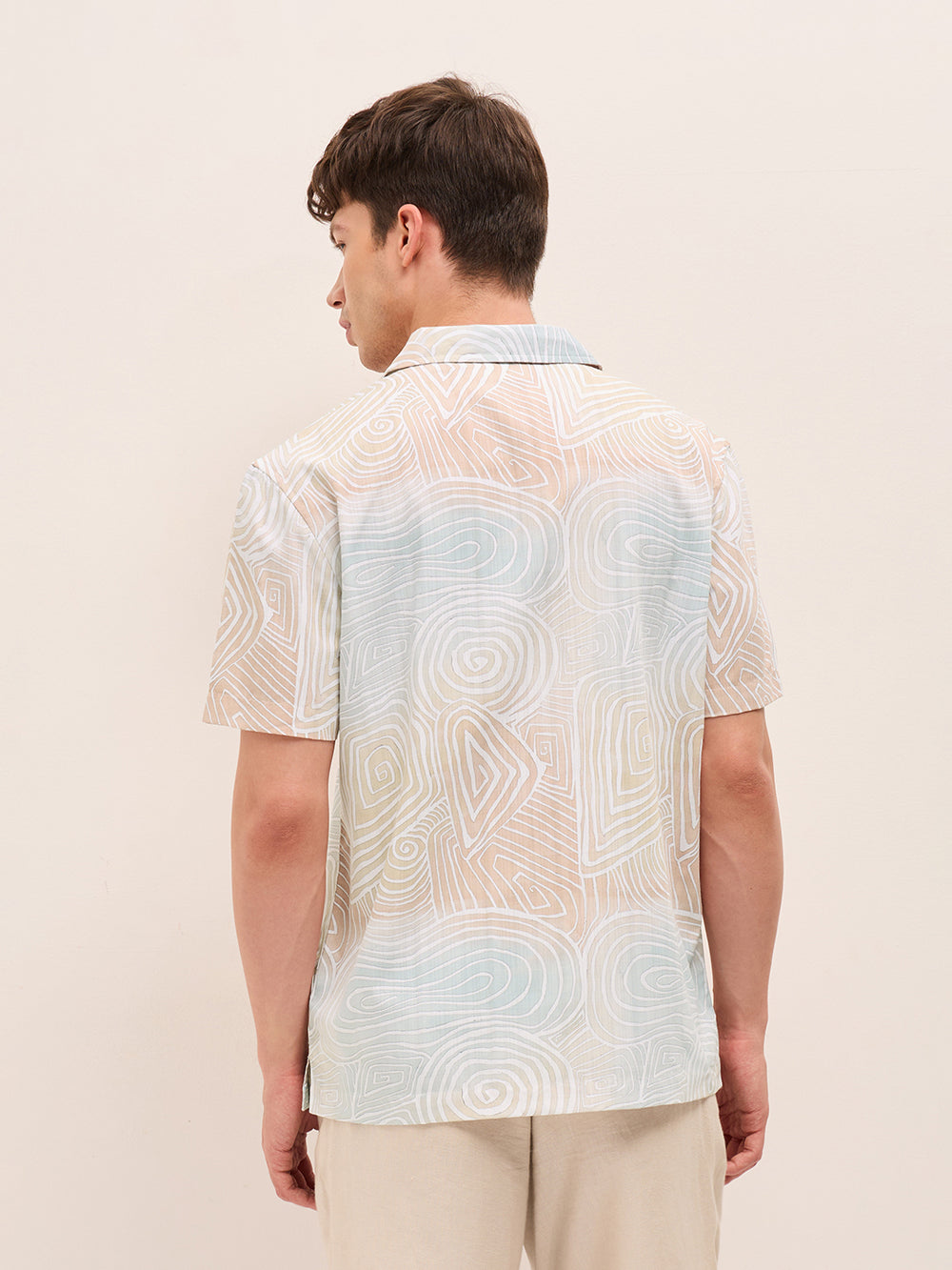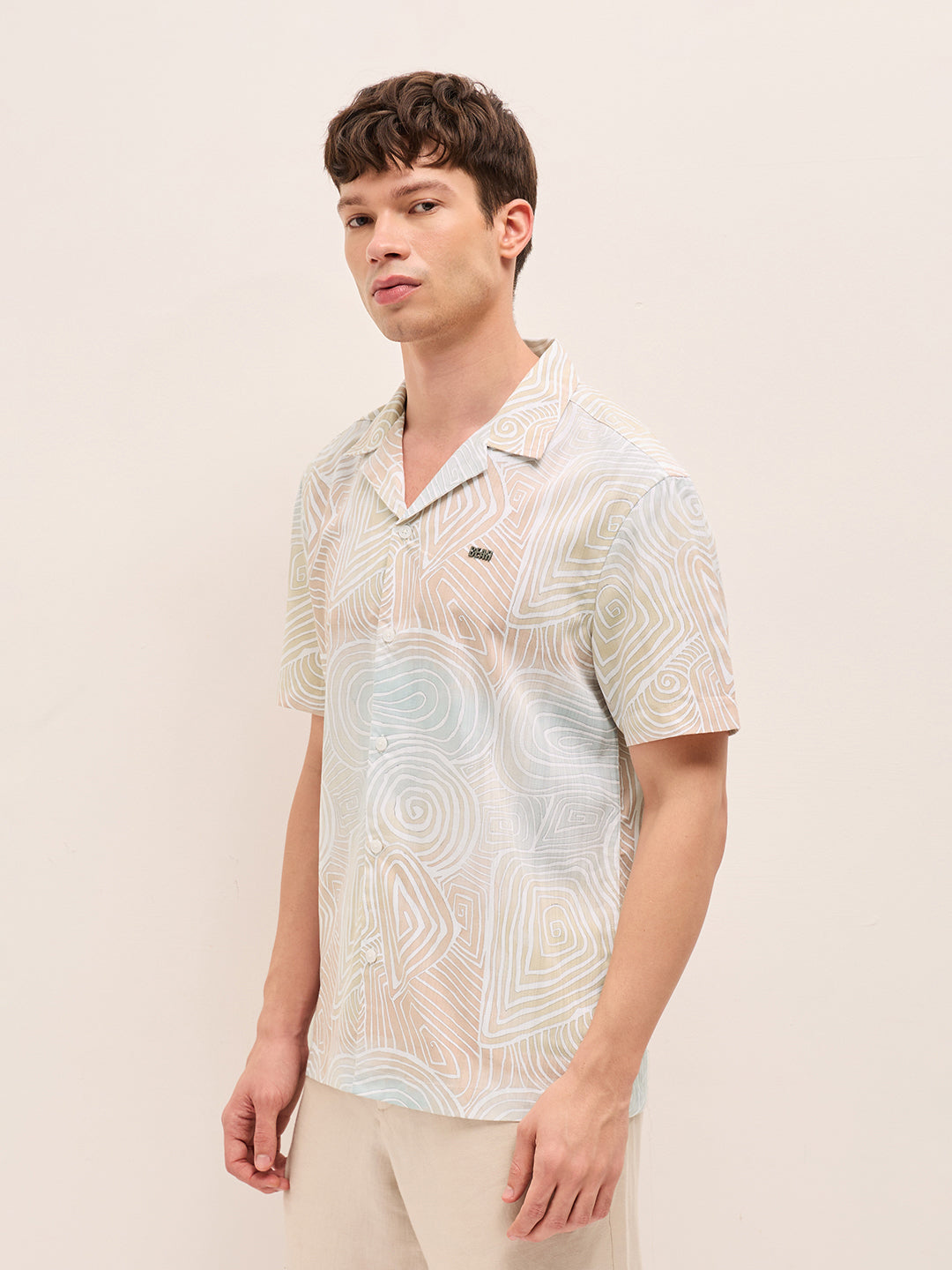 Shop Multicolor Geometric Abstract Print Relaxed Fit Cuban Collar Shirt Online.