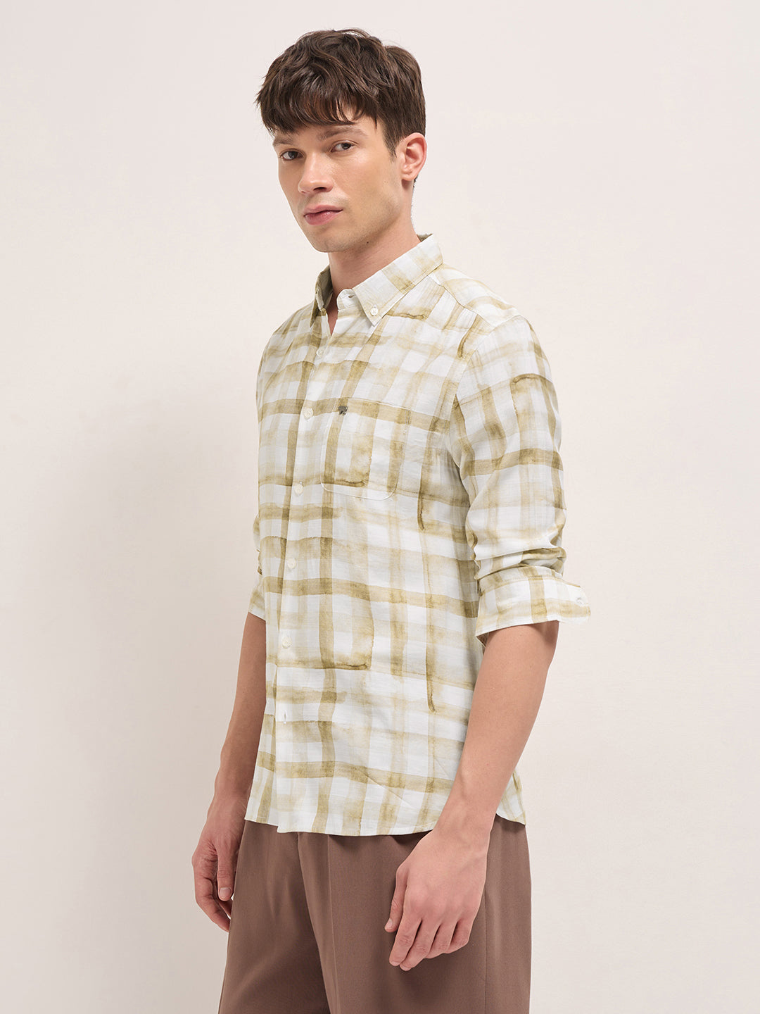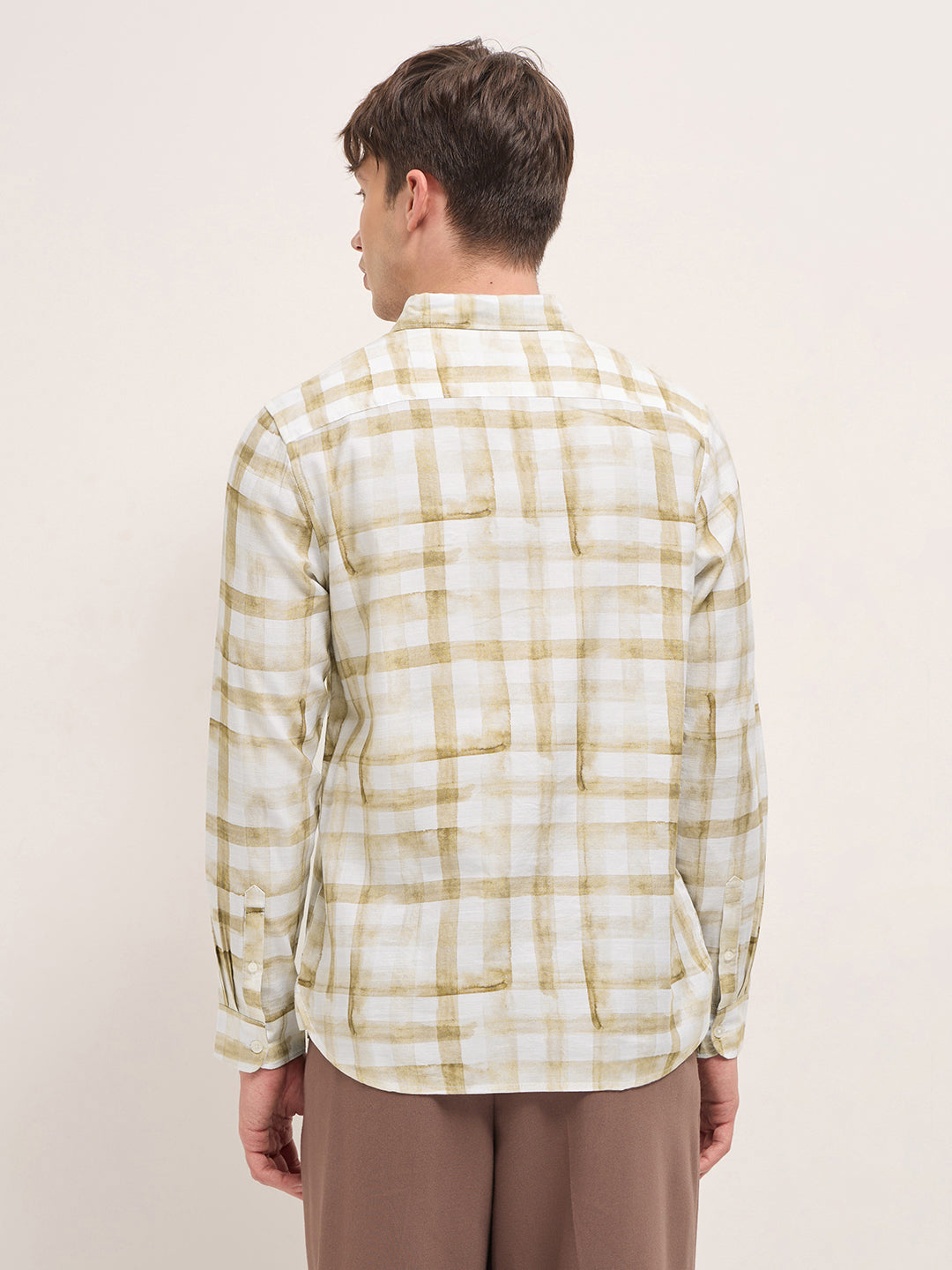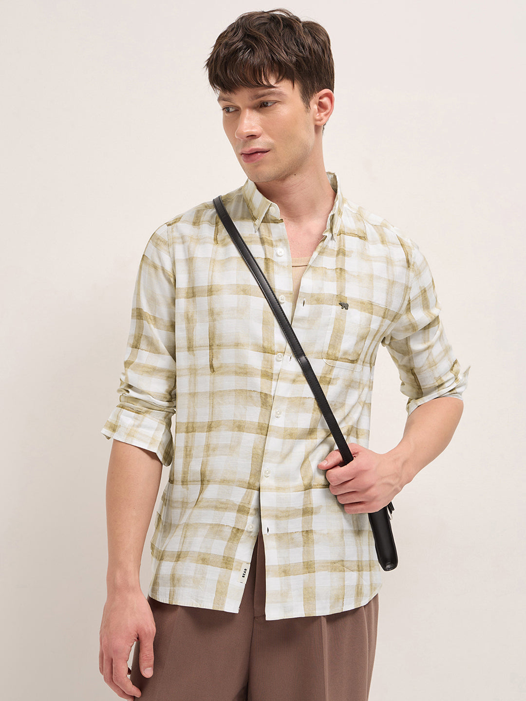 Mustard & White Slim Fit Casual Shirt with Printed Checks