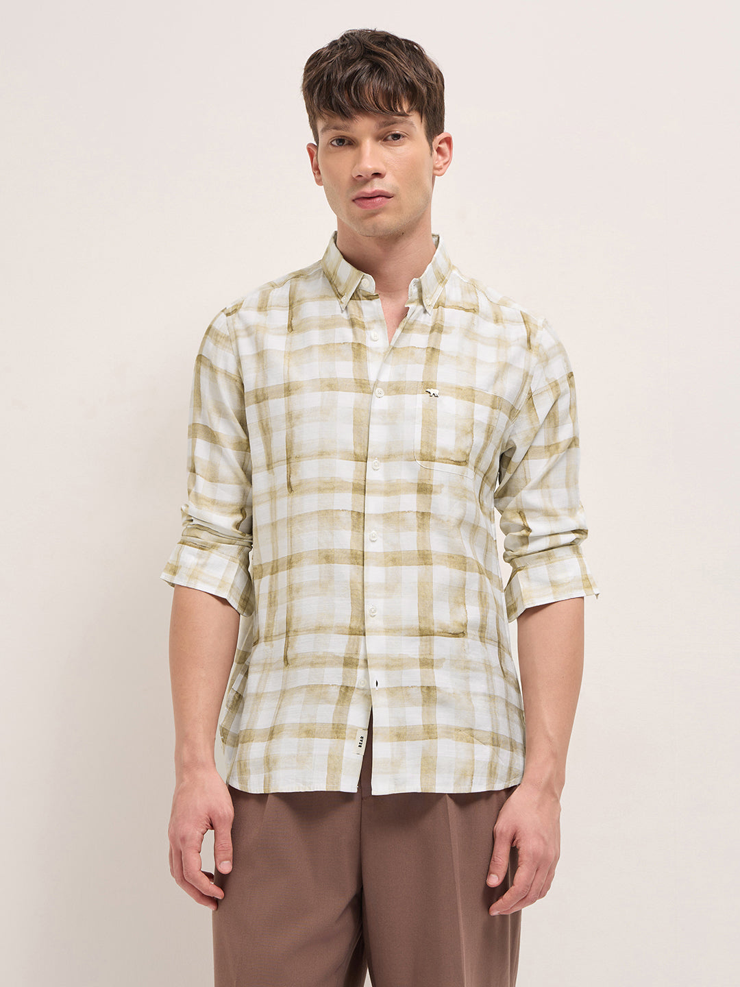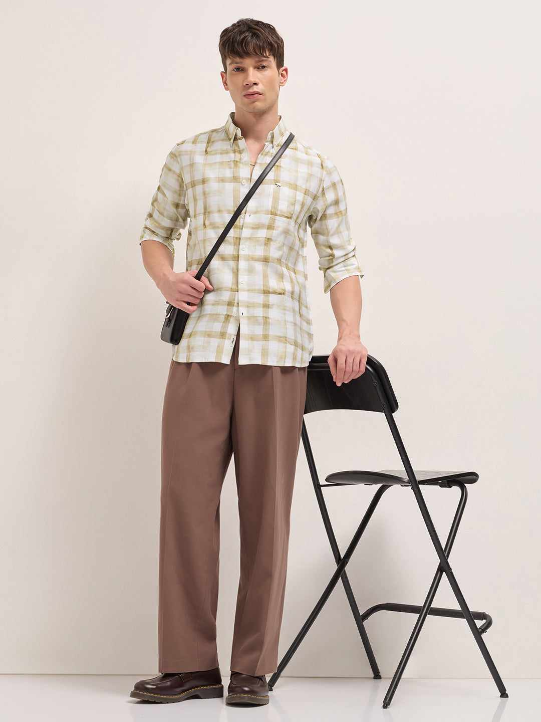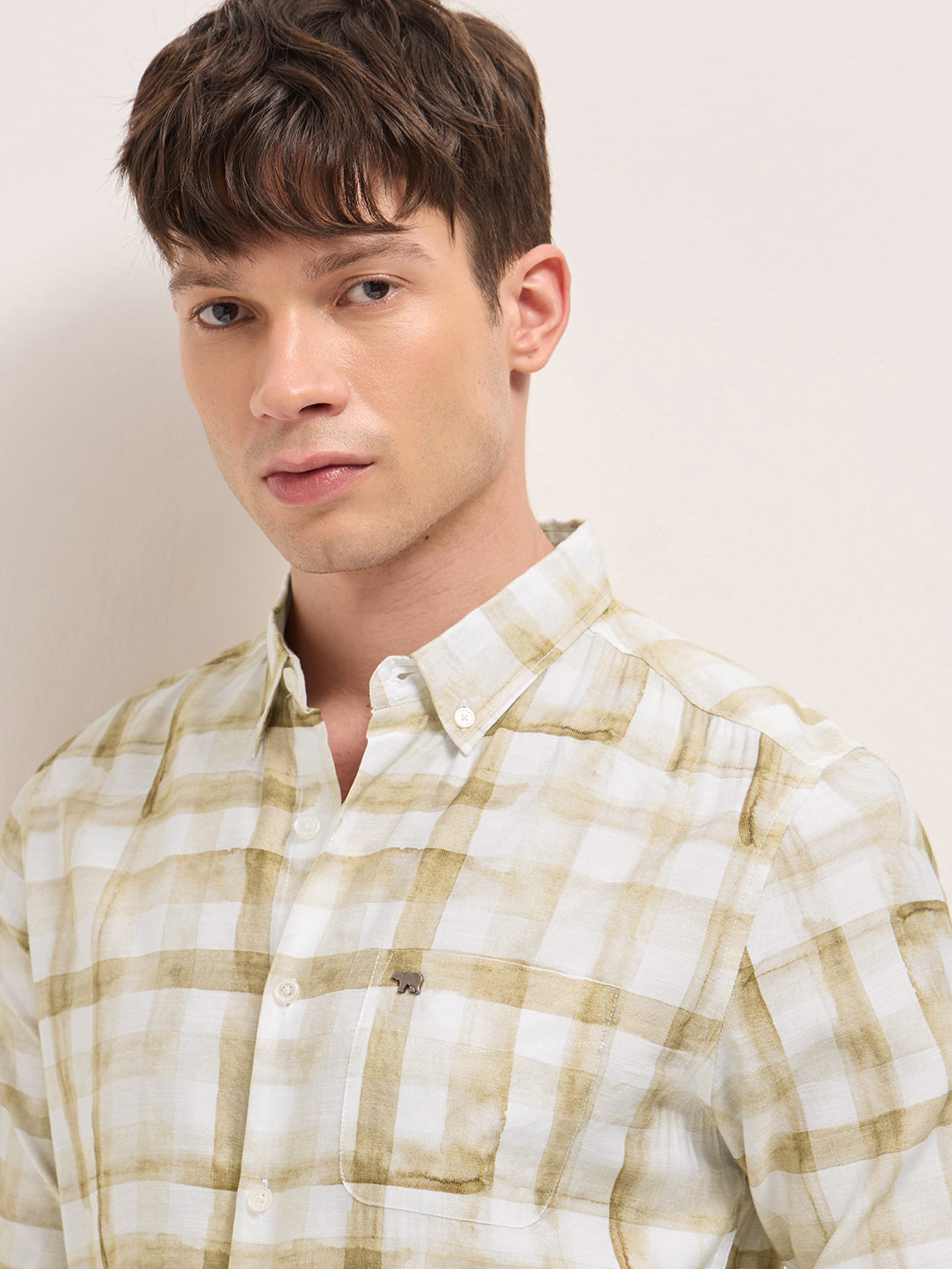 Mustard & White Slim Fit Casual Shirt with Printed Checks
