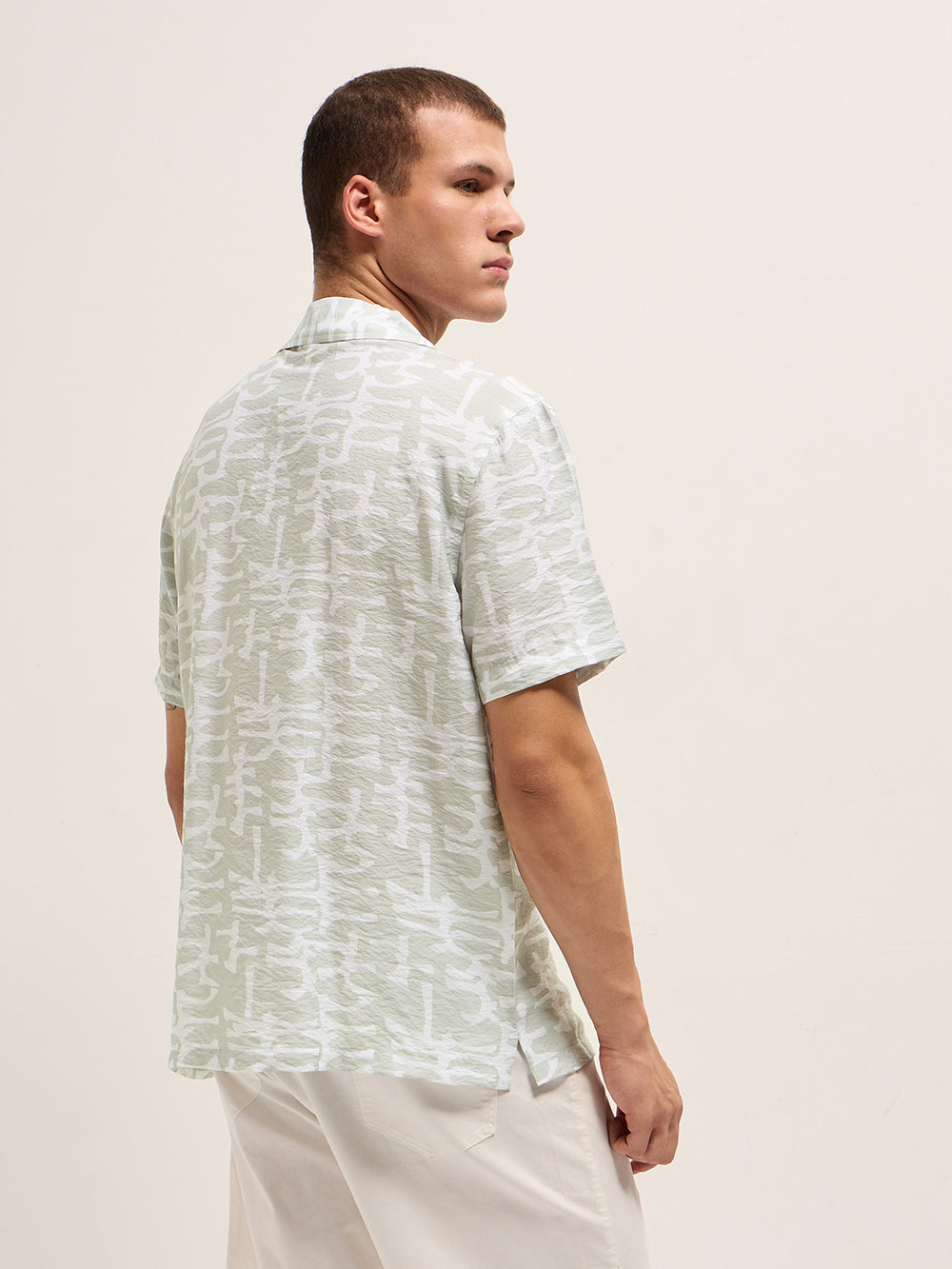 Light Green Abstract Brush Stroke Print Relaxed Fit Cuban Collar Shirt